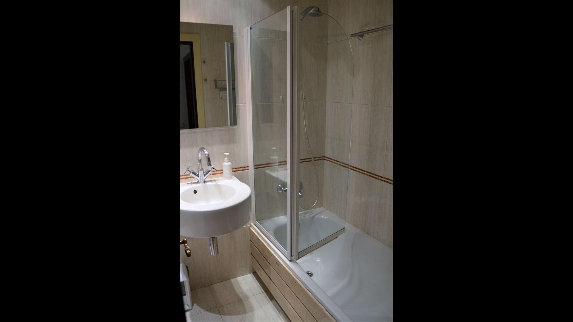 On the ground floor, there is a toilet without bath and a big common room with dining table for 6 persons, a sofa corner with TV and DVD or, if preferable, you can just enjoy the view very green courtyard. The kitchen is very well-equipped with fridge and freezer, stove, oven, microwave, coffeemaker, kettle and dishwasher. Divided by a sliding door, there is an extra room with a double sofa-bed, making it possible to stay up to 6 persons in the apartment. This floor has also aircondition, and the apartment has WIFI-internet.