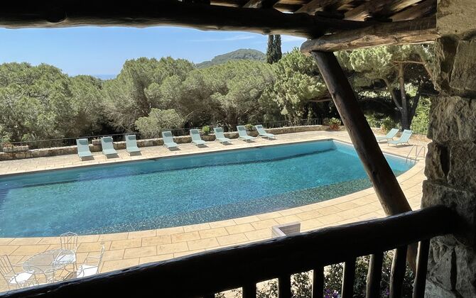 Next to the entrance of the ground floor, there is a staircase leading up to the room on the first floor. This is the perfect children's room, with space for six people (one double bed and four single beds). The room also has an ensuite bathroom. But the best part of the first floor, is the direct access to the covered terrace which is equipped with a large table tennis table and a views overlooking the stunning garden and the swimmingpool.