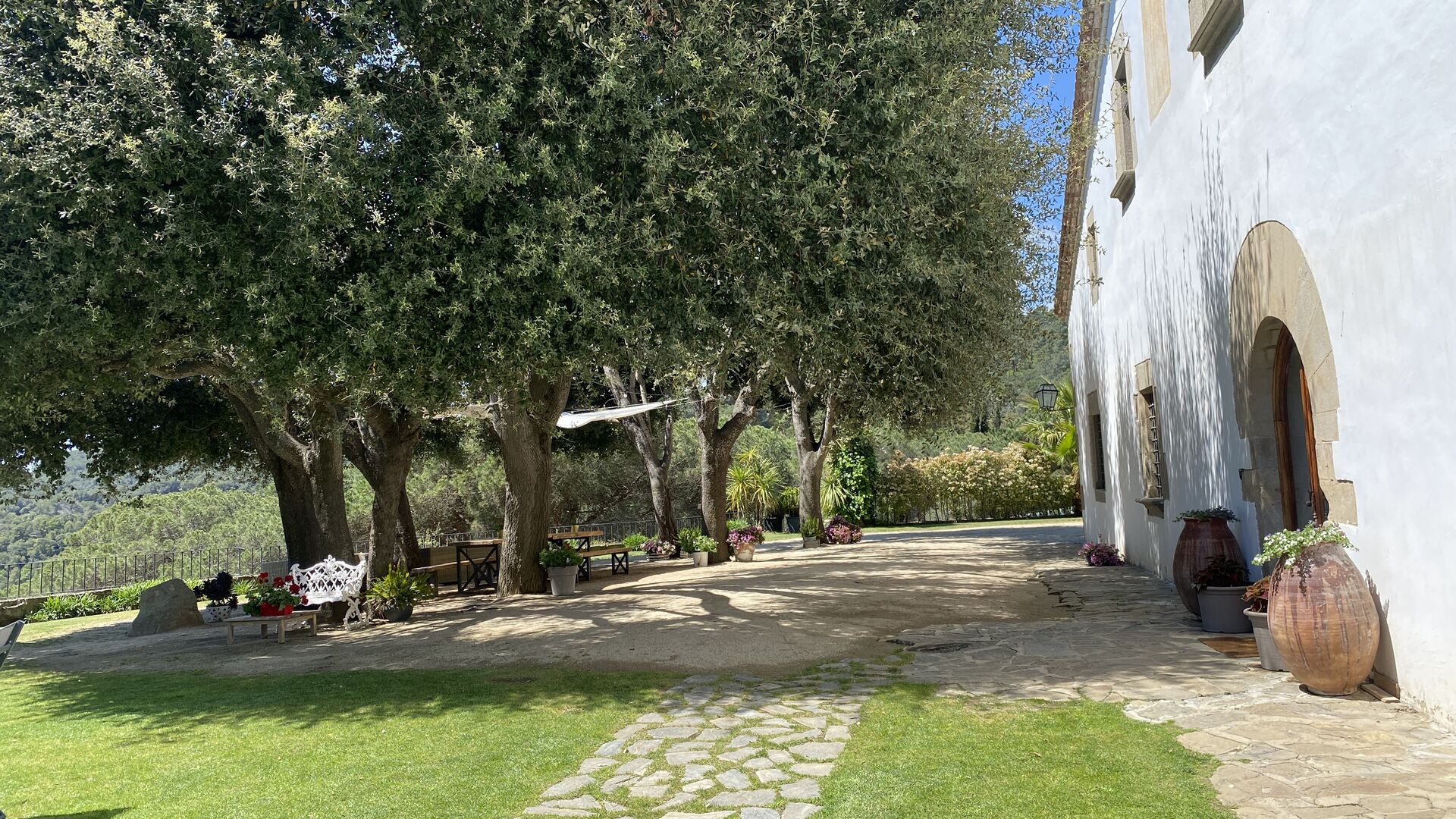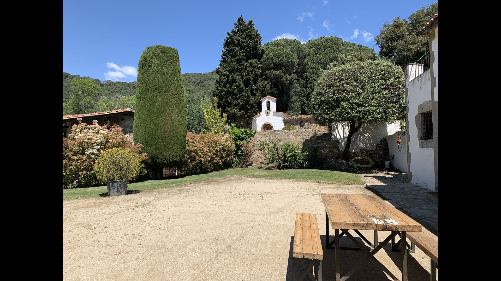 It is almost incomprehensible that one can live so scenic, quiet and with a great view to the mountains and with a view to the sea, and yet only be in long walking distance of a town with towns and restaurants and less than 5 km. to the beach, where there are also trains to Barcelona.