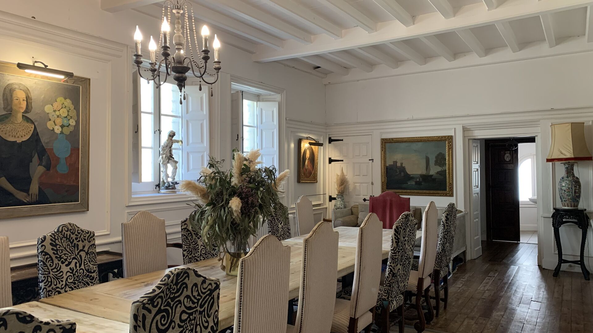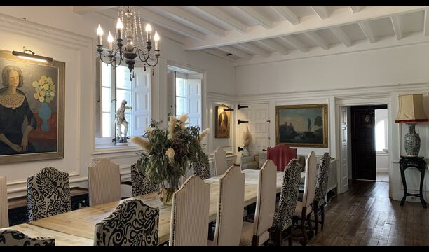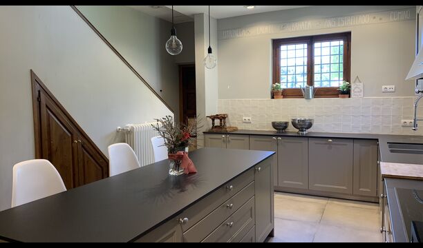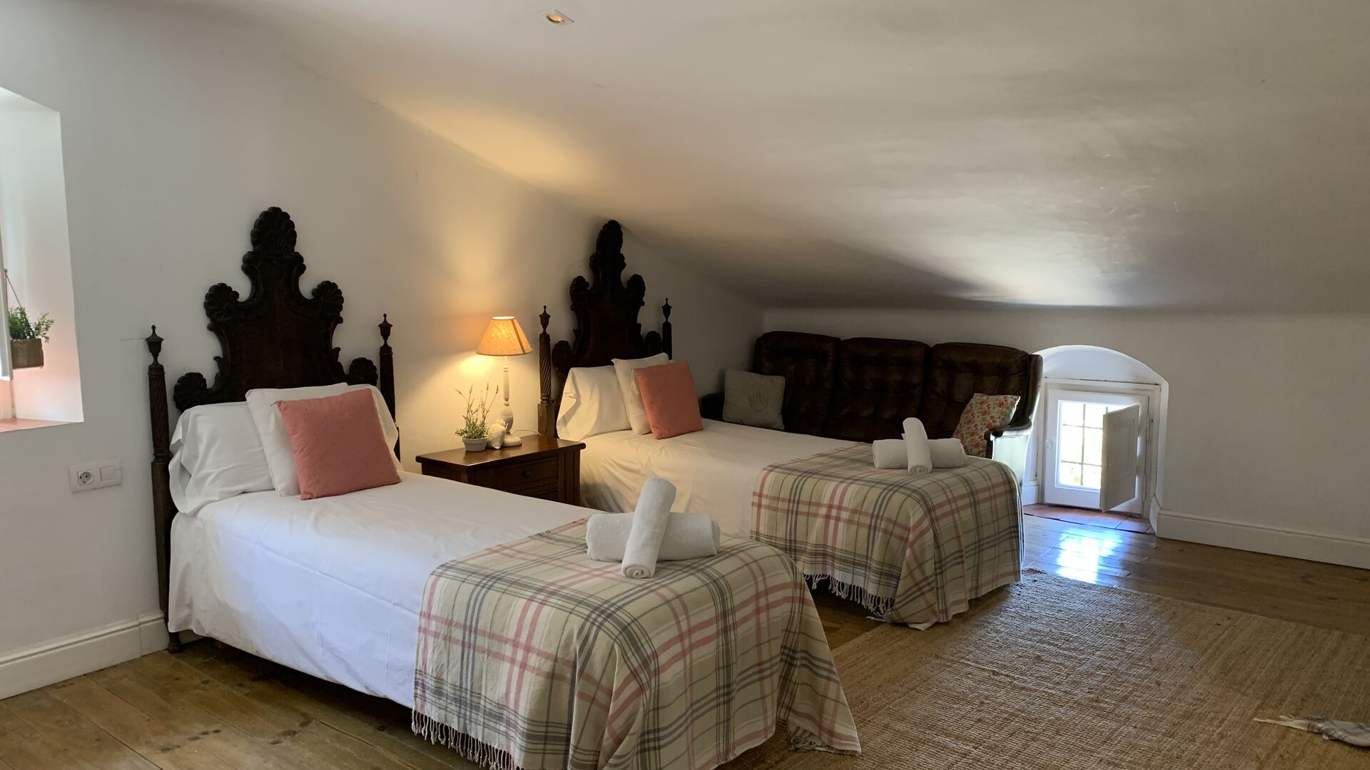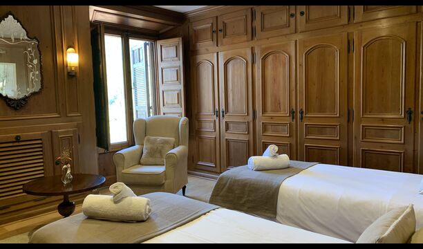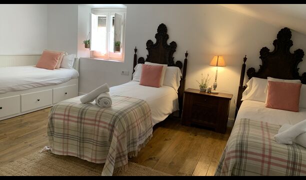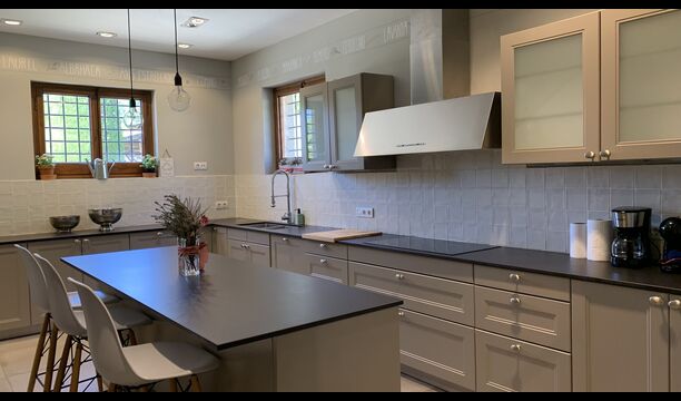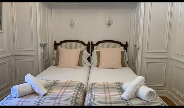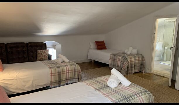 In principle, one can stay up to 22 guests in the house, but be aware that the house has a top floor with 1 double bed, 2 single beds and 1 bathroom with quite low ceilings due to the authenticity of the house; therefore, this floor is only recommended for people who are not very tall (or children).