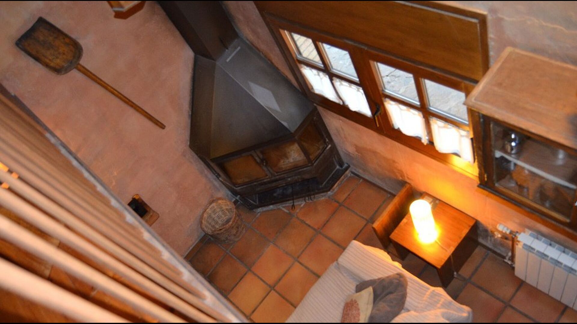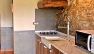 In this apartment, Piso Nio, there is room for two people. There is one double bed, which is a perfect base for a couple. There is also a modern bathroom. The flat has a size of 60 m2. Overall it is arranged very authentic and traditional in a Catalan style. It is also clear that there are a great respect for original materials and structures. This will provide, along with the fantastic location of the house, a good and romantic atmosphere. Furthermore there is a nice kitchen where the owners have done a lot to keep it traditional Catalan. In this there are a fridge, a stove, a dishwasher and a washing machine. In the same room there is a soft couch, where you can watch TV and there is a fireplace. Upstairs there is a spacious bedroom with a nice double bed. Outside there is a terrace next to the apartment next door. Here you can read a book or just relax in the shade if it gets too hot. However the best thing about the apartment is almost the breathtaking views that can be enjoyed. There is a very special calmness and peace that is unique to houses in the mountains.