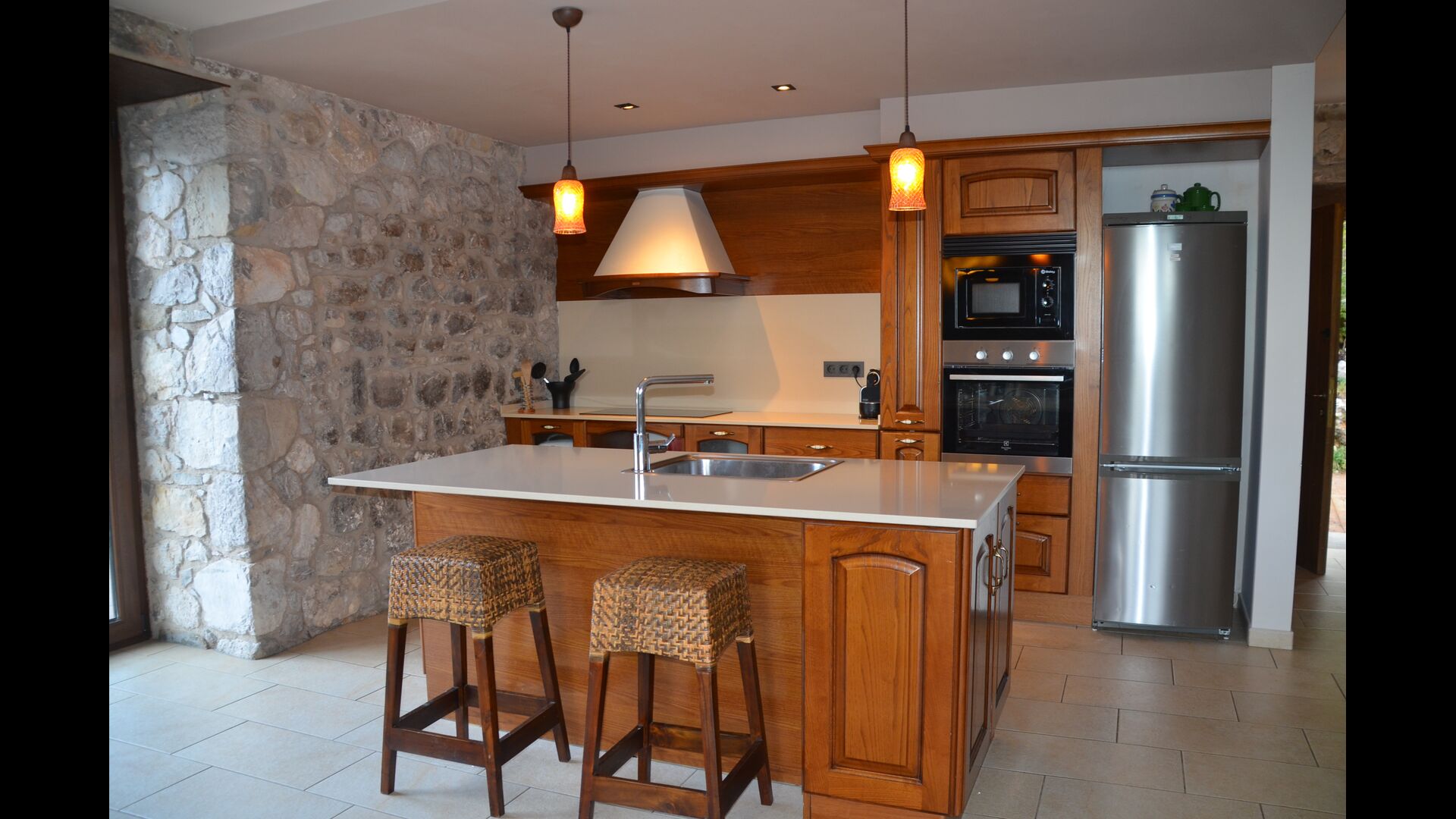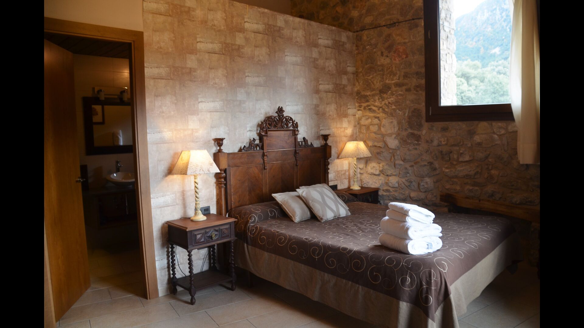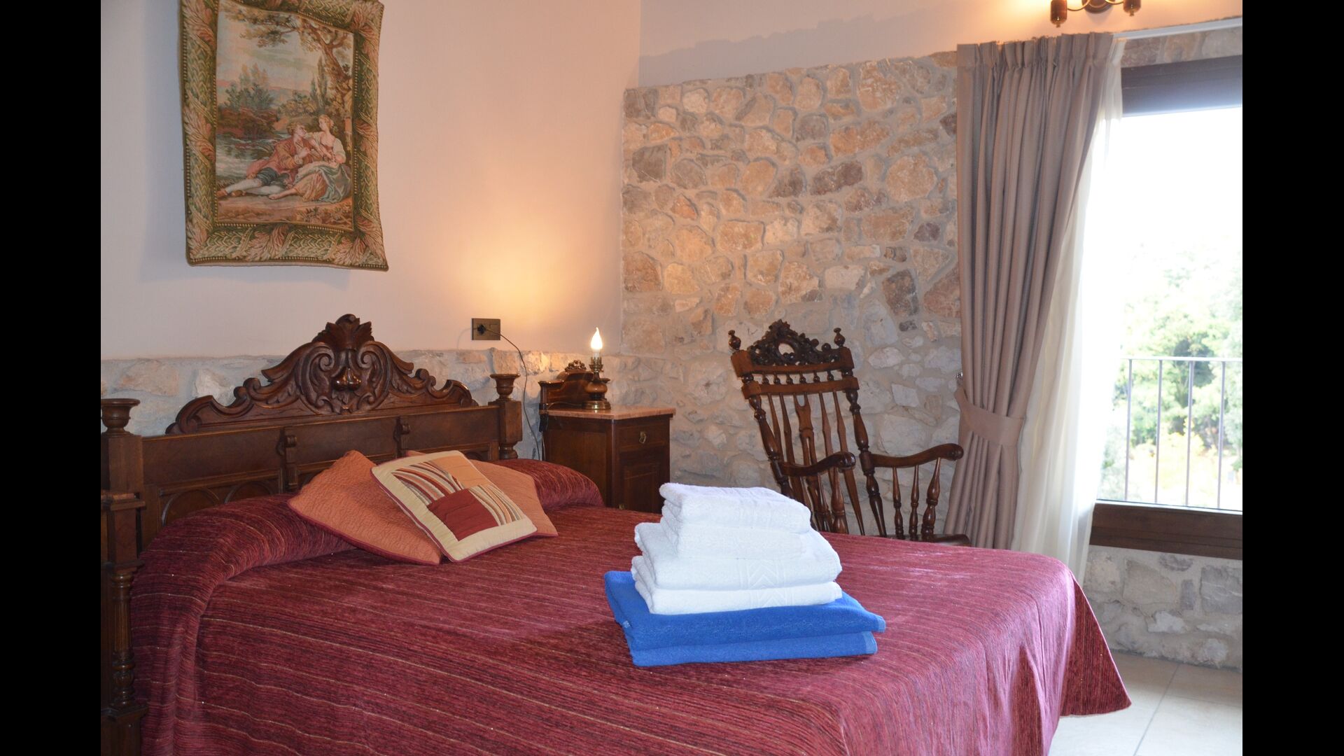 The holiday home is of a very high standard with traditional Catalan stone walls that give a very beautiful and authentic look. As mentioned above, the house has five "units" that have been merged, which means that you can retreat to your own private home every time and relax. There are a total of 13 bedrooms, of which 11 are double rooms and 2 are single rooms. There is a total of 11 bathrooms.