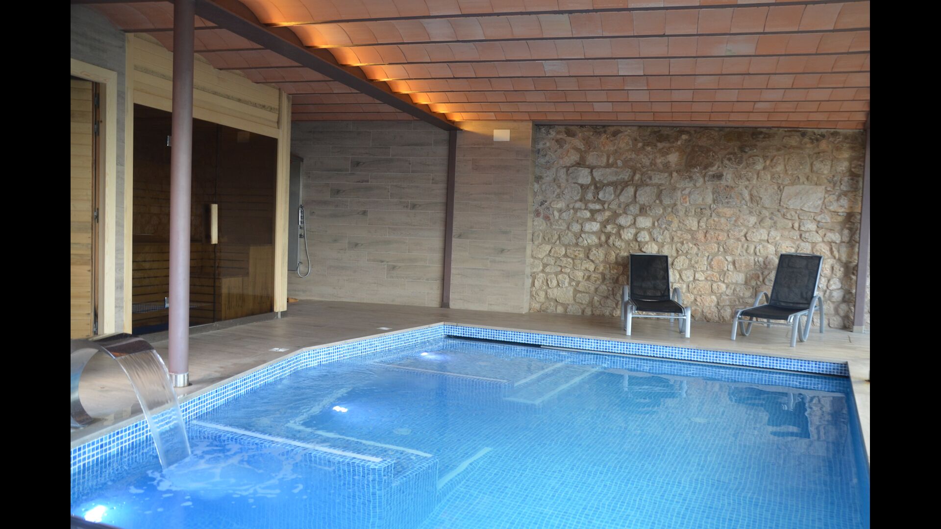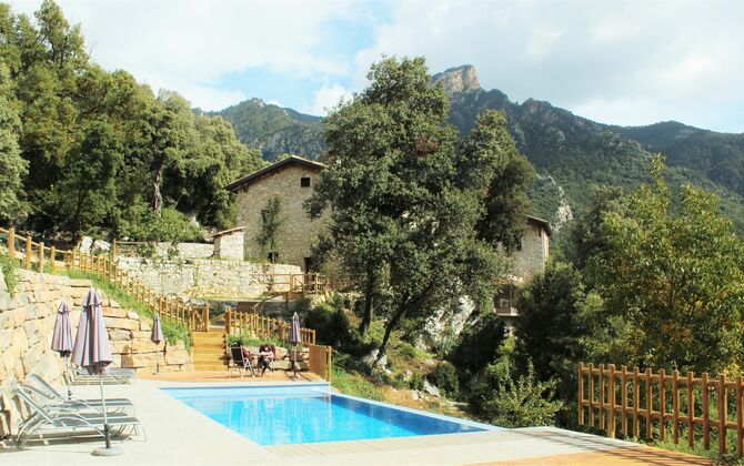 If you are looking for a luxurious holiday home, located very close to a small, authentic Catalan town, but still surrounded by stunning scenery, Vila Mas Vistador is the perfect place for you. The holiday home is composed of five beautiful units that can accomodate up to 24 (+12) persons. The highlight of the house are the great facilities and outdoor areas, including both an indoor and outdoor pool, a sauna, a playground, paddle tennis court and two amazing chill out areas with benches and tables.