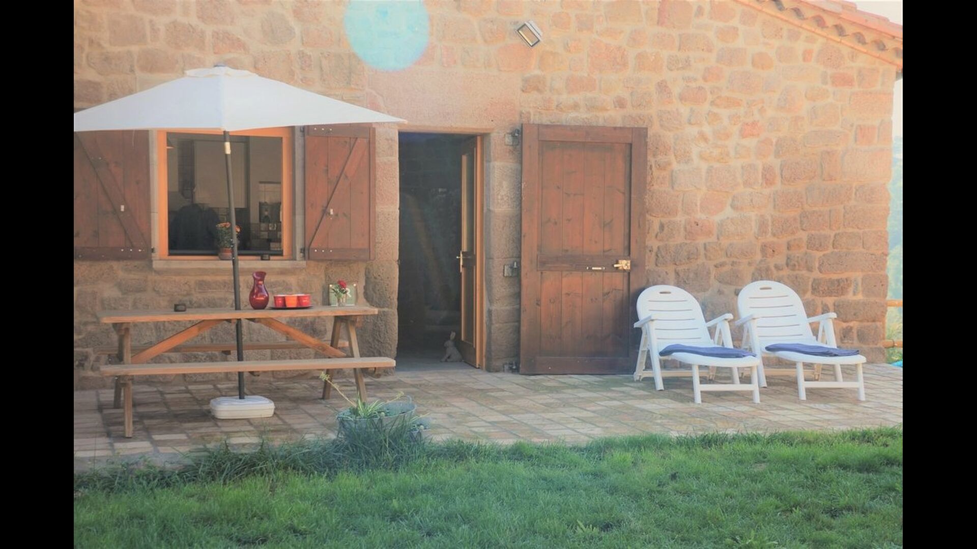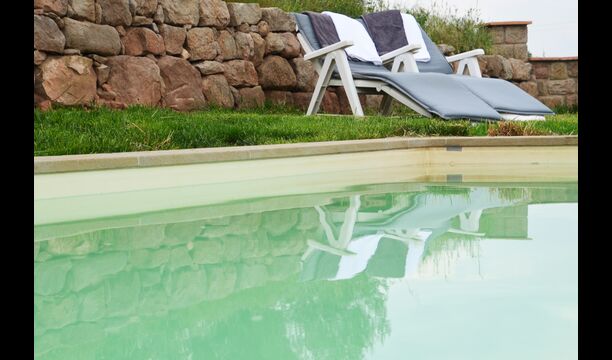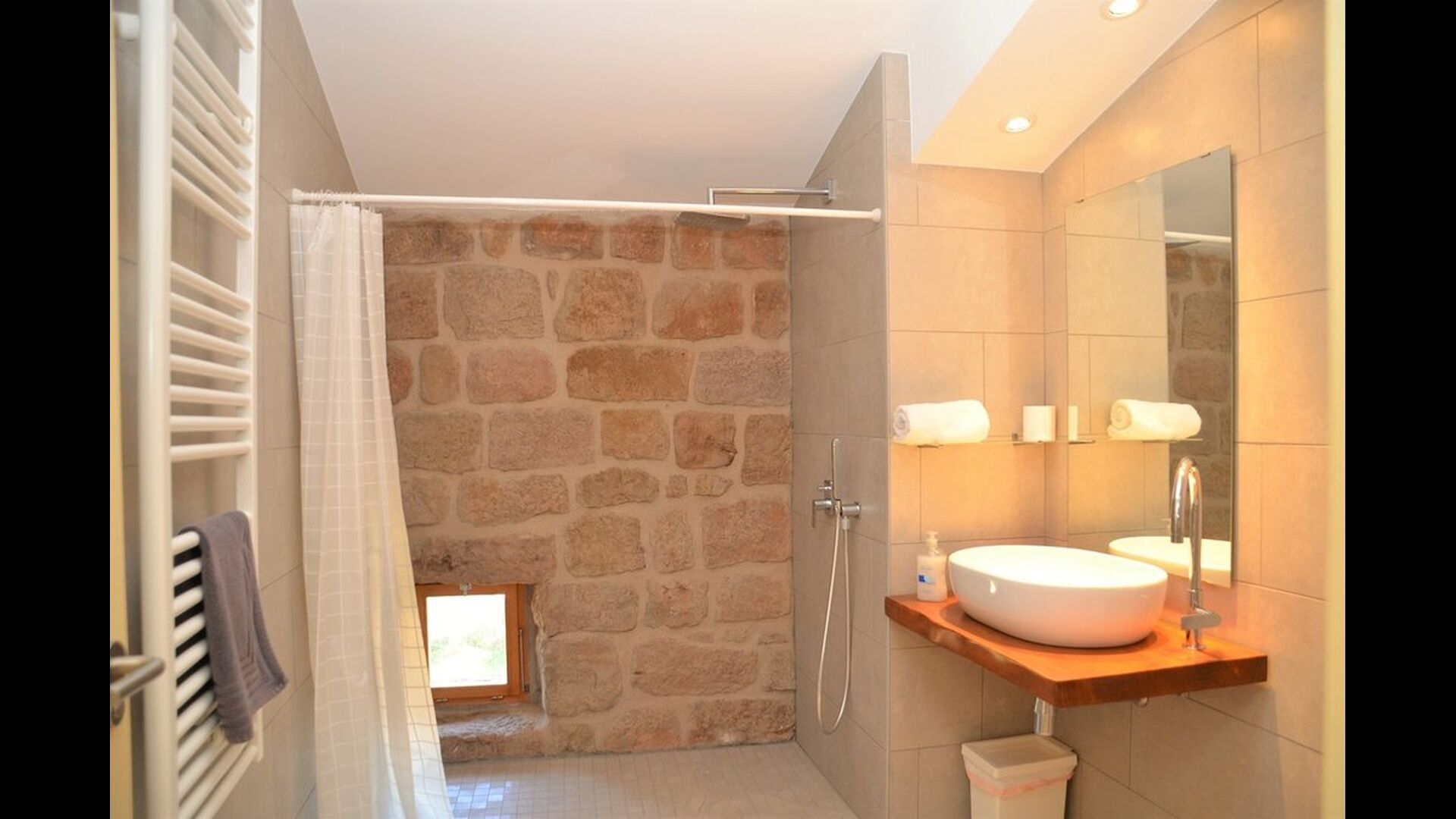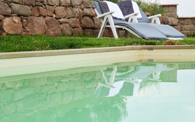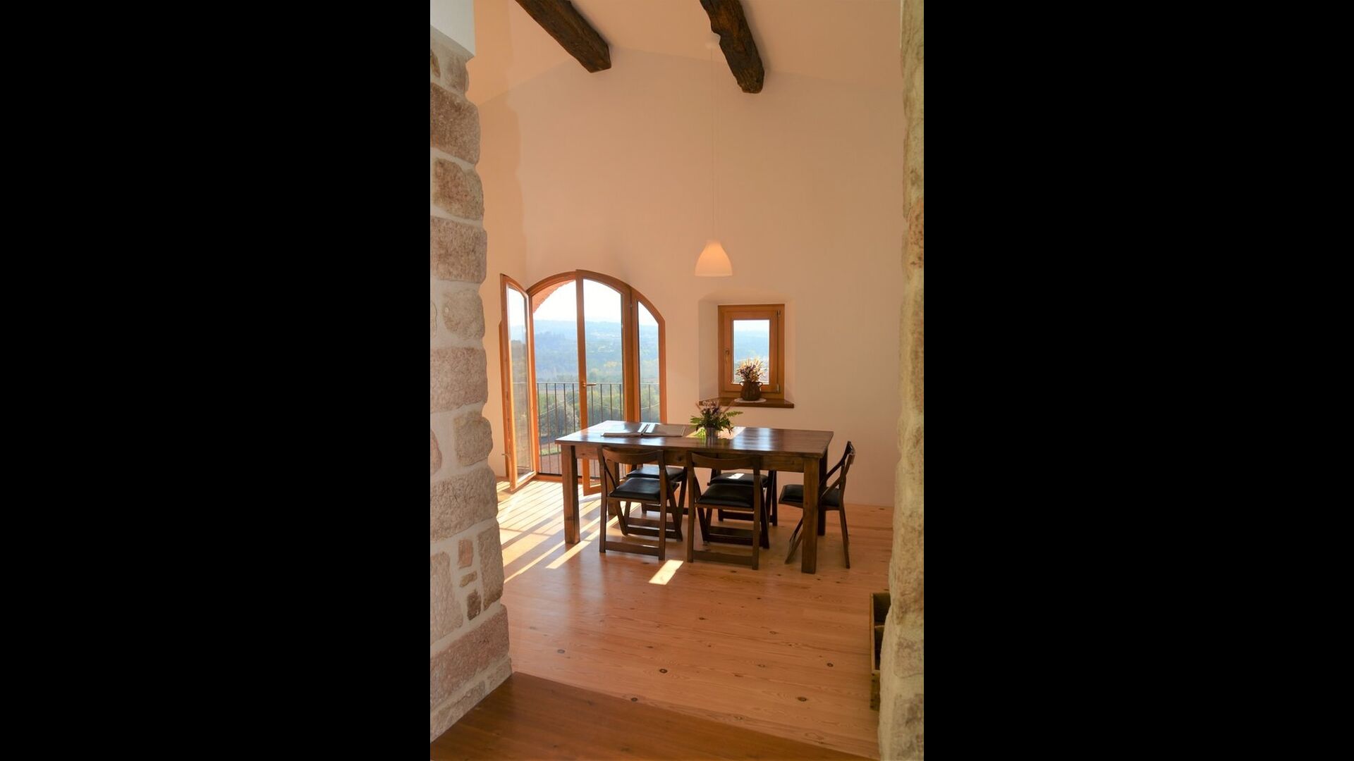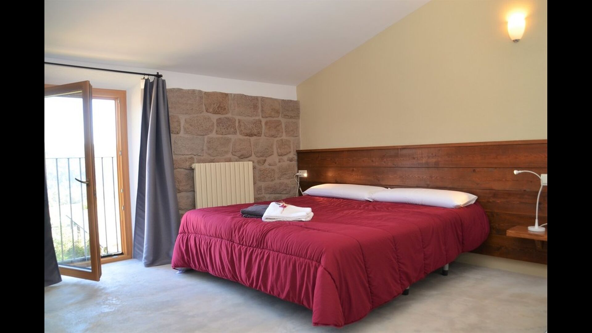 There is a large covered terrace on the right side of the house, just next to the pool. Here you will find the absolute musts when traveling to Catalonia: shade, BBQ, large outdoor table, a hammock and sun chairs. Right next to the terrace is the pool area which has a beautiful view looking over the valley. There are also sunchairs lined up on the side of the pool, where parents will be able to read a book and enjoy the sun, whilst watching over the children playing in the pool.