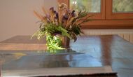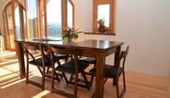 You will step into the large kitchen when entering the house from the terrace. The kitchen is such a great room as it is very open, spacious and modern. With large panorama windows looking over the valley, providing not only a great view but also the perfect lighting. And with the direct entry to the outdoor facilities, it almost feels like an outdoor kitchen! The kitchen is very well equipped with everything you may need including fridge, freezer, oven, stove, coffee machine, washing machine etc. There is even a large flat screen TV on the wall, so you are able to watch TV whilst cooking dinner if desired. The house also has WIFI. At the end of the house, you will also find the lovely lounge room, which like the rest of the house also has the very large windows.