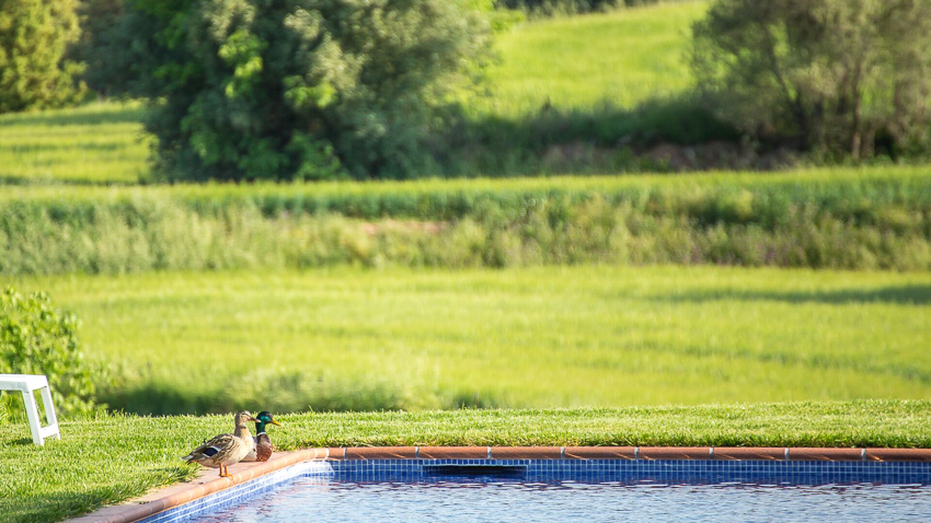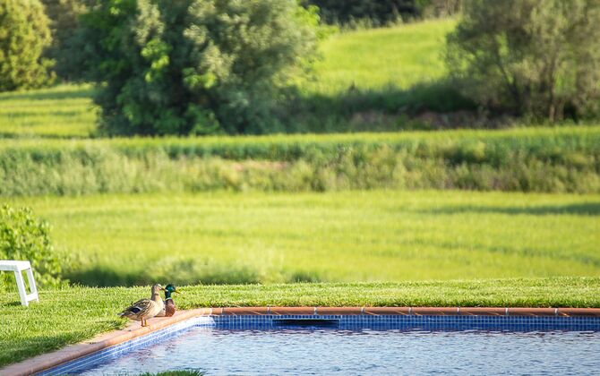 The holiday home has a closed courtyard with a covered terrace, where you can relax with some meat on the barbecue or enjoy a game of table tennis, if you are not relaxing in the pool-area with the big swimming pool of 8 x 4 meters. The swimming pool is fenced for the protection of small children, and there are swings and a slide. Next to the swimming pool, in the shade under an oak, there is a table for poolside dining.