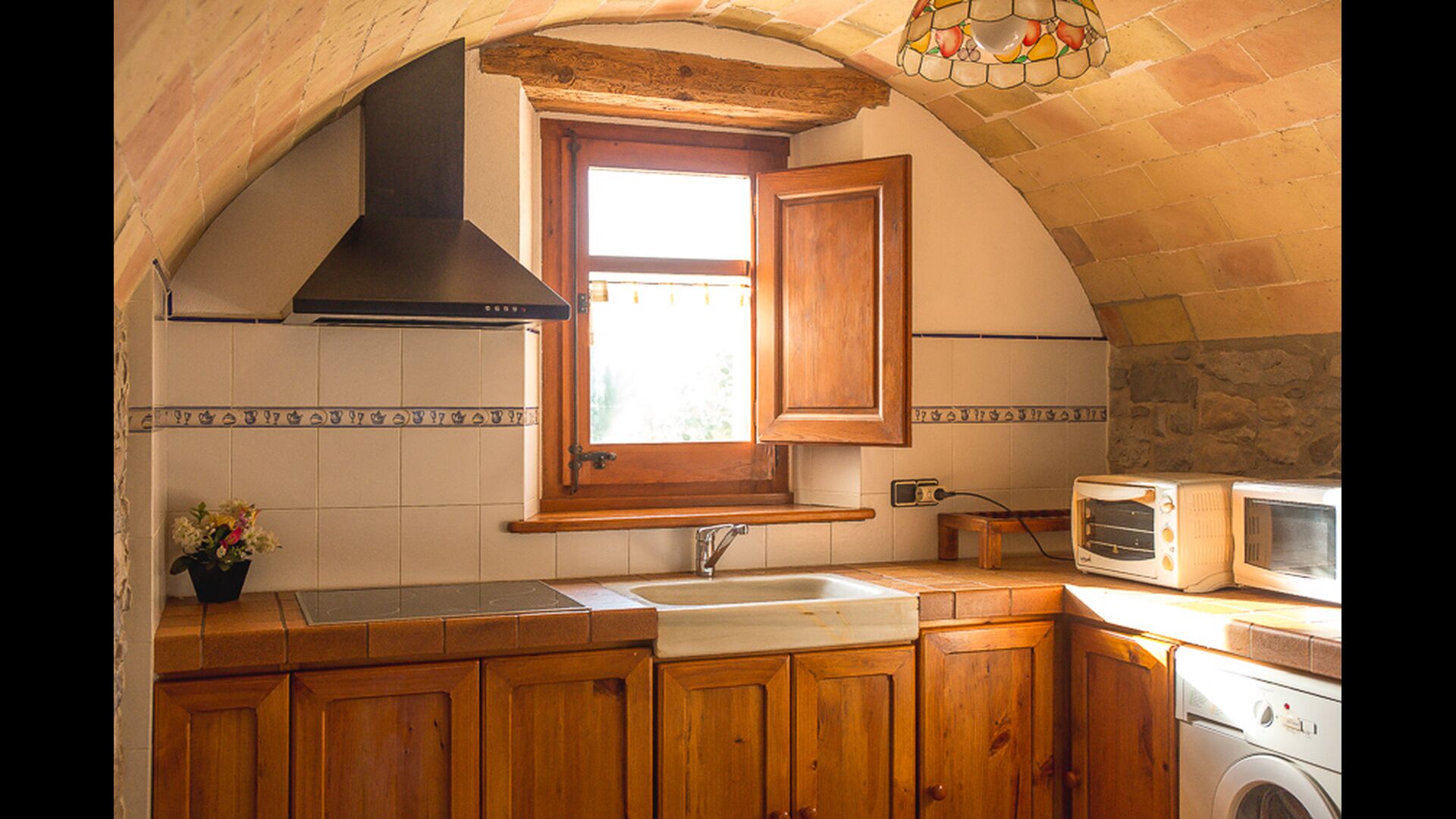 Can de la Sierra is a typical Catalan limestone house for 13+2 persons, where you feel the history, while enjoying all the facilities of the house. The house is situated on a hill with a view to the nearby village to one side and to the other side the beautiful scenery with fields and forest and with the Pyrenees rising in the background.