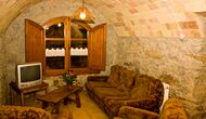 From the house, there is marked walking route down to the village, which is less than 2 km. away by foot. In the village, you will find among others shops, a bakery, a small supermarket and some restaurants, including one of very high standard.