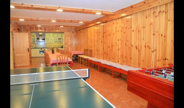 Upstairs you will find all 9 bedrooms. Two of the bedrooms are triple rooms and the rest are double rooms. All bedrooms except for two of them have ensuite bathrooms. The bedrooms are very simple and cosy with decorative walls and bed linens. The triple rooms consist of a single bed and a bunk bed, and are the perfect bedrooms for children. The double rooms have two single beds, but can be turned into normal double beds. There is a small town located just 300 meters away from the house. Here you can eat at the local restaurant or visit the authentic, local church. There is also the possibility of taking a day trip to the regions large city Berga, which has plenty of shops and markets. Berga is located roughly a short 20 minute drive from the holiday home.