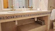 When you enter the nice entry, you are met by a large spacious family room. Here there is a cozy corner with comfortable sofas, and behind this, there is a large and wide dining table, where you can enjoy your meals. Next to the family room the authentic kitchen is where you have all the necessary utensils - including a dishwasher, a washing machine, a microwave and many other things. The kitchen is great, and the owner has put a lot of effort into it. From the aforementioned living room there is a staircase to the first floor where the bedrooms of the house are: There are a total of 7 rooms, of which 1 is a single room and 6 double rooms. Several of the beds can be moved apart, so can adapt the rooms. All rooms are of high quality and are very spacious. Two of the bedrooms have a huge shared balcony with chairs, where the sunset can be enjoyed in the evening. From one of the bedrooms you can actually see the sunset directly from the bed. There are 4 bathrooms in total, of which one is en suite. They are all modern and beautifully decorated.