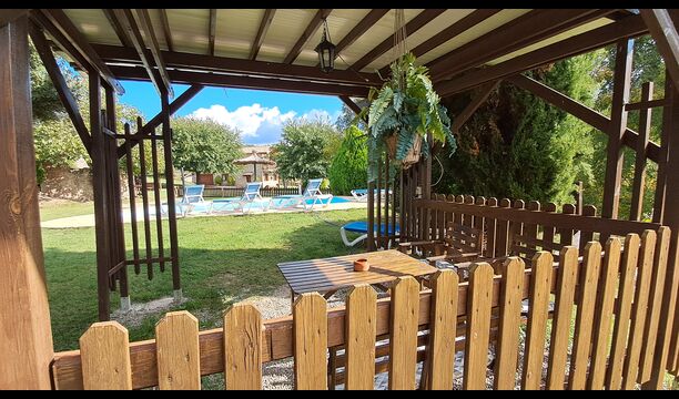 There are no noisy neighbors - only the quiet countryside. The hilly landscape, cultivated fields and small streams creates a special atmosphere, and despite the hot and dry climate, the garden at the house is green and neat. There is a very beautiful view from virtually anywhere in the house and garden.