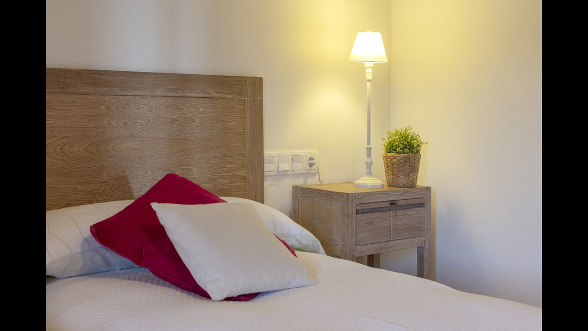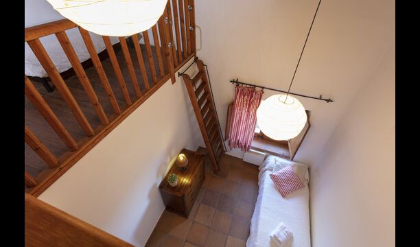 On the ground floor, with easy access to the outdoor terrace, you will find the well-equipped kitchen, a dining room as well as 2 double bedrooms with double beds and a bathroom.