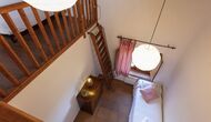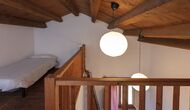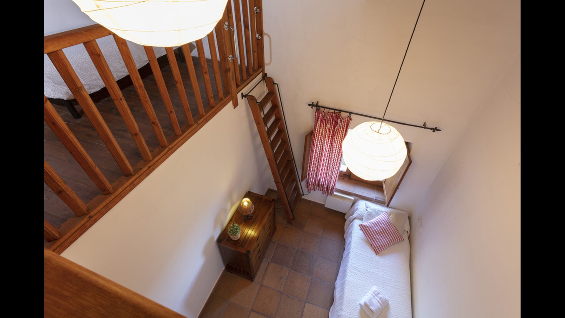 Going up to the first floor, you'll have the spacious living room with multiple sitting arrangements. Here, you'll also find the remaining 3 bedrooms and the other bathroom. Two of the bedrooms are double rooms with two single beds. The third bedroom is a duplex bedroom with one single beds below, and then a loft with three single beds which you enter from inside the bedroom. This room is ideal for kids.