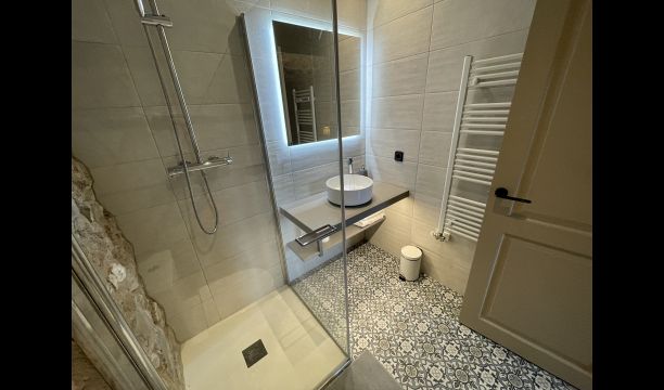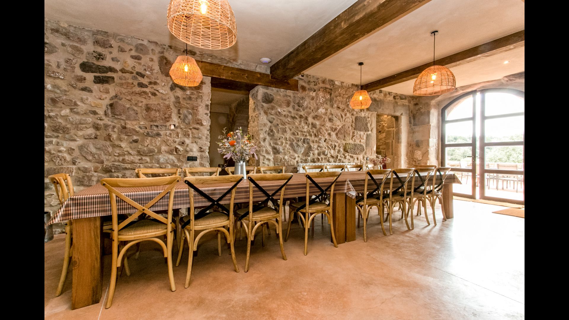 From the outdoor terrace, with a barbecue, a space to eat and loungers to relax, we enter directly into the Mas's large dining room. This acts as the heart of the house, connecting the two small living rooms on the ground floor with the large kitchen. The kitchen is fully equipped with 2 gas hobs, 2 dishwashers, 2 refrigerators with freezer, oven, microwave and coffee maker, as well as a small breakfast table.