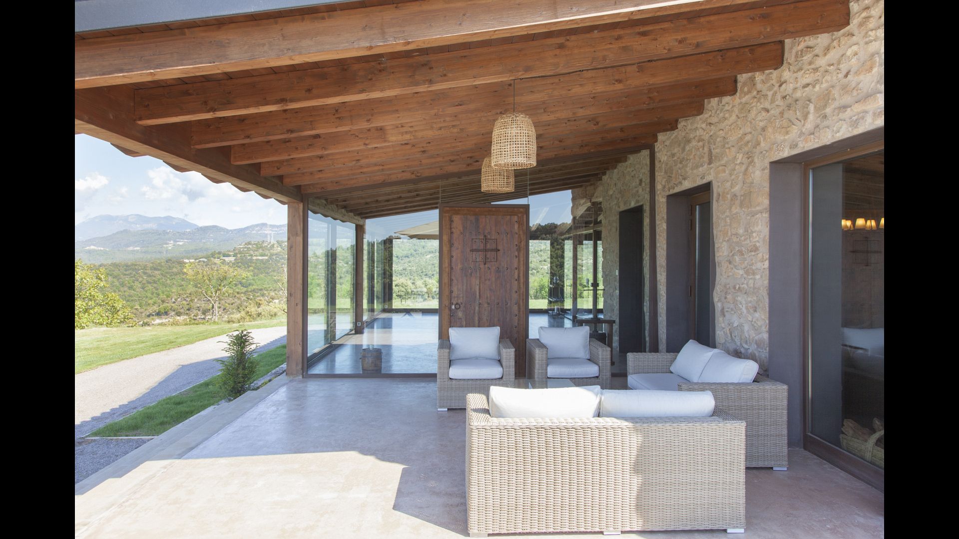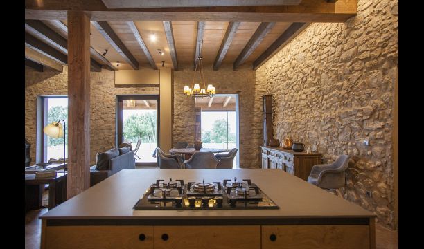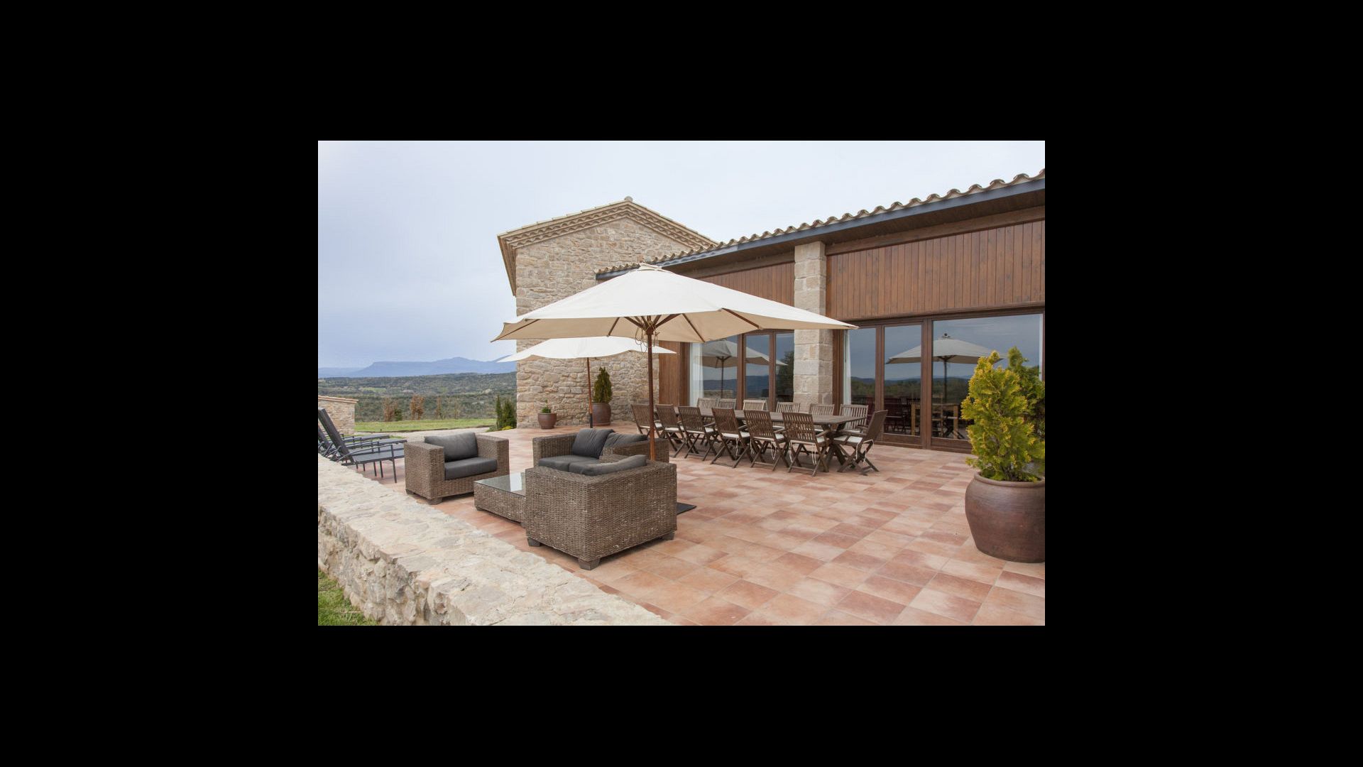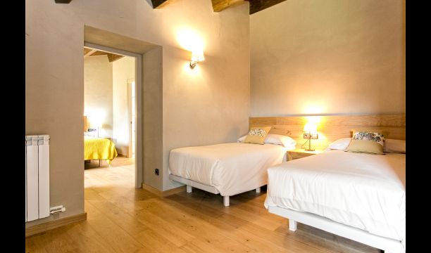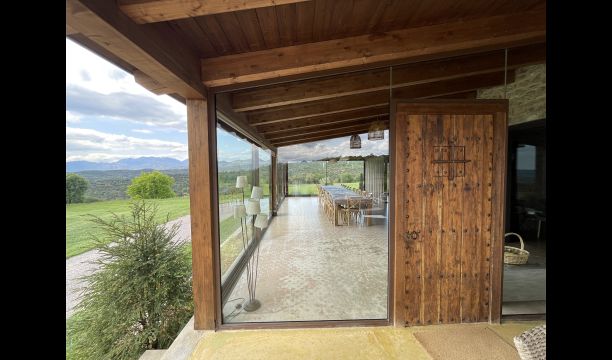 In Central Catalonia, on a hilltop, the three newly restored holiday homes, Las Casas de Mateo, has just been opened for guests, a combination of the three neighbor houses Can de Mateo, Masoveria de Mateo & La Mas de Mateo. The house has room for 46 + 7 guests in the three houses and the grand attraction is the unique location. In Las Masias de Mateo you have the opportunity to enjoy a 360 degree view of the Catalonian countryside, framed by the Pre-Pyrenees rising in the background. We represent many holiday homes in this region, all with stunning views, but Las Masias de Mateo beats almost everything in this regard.