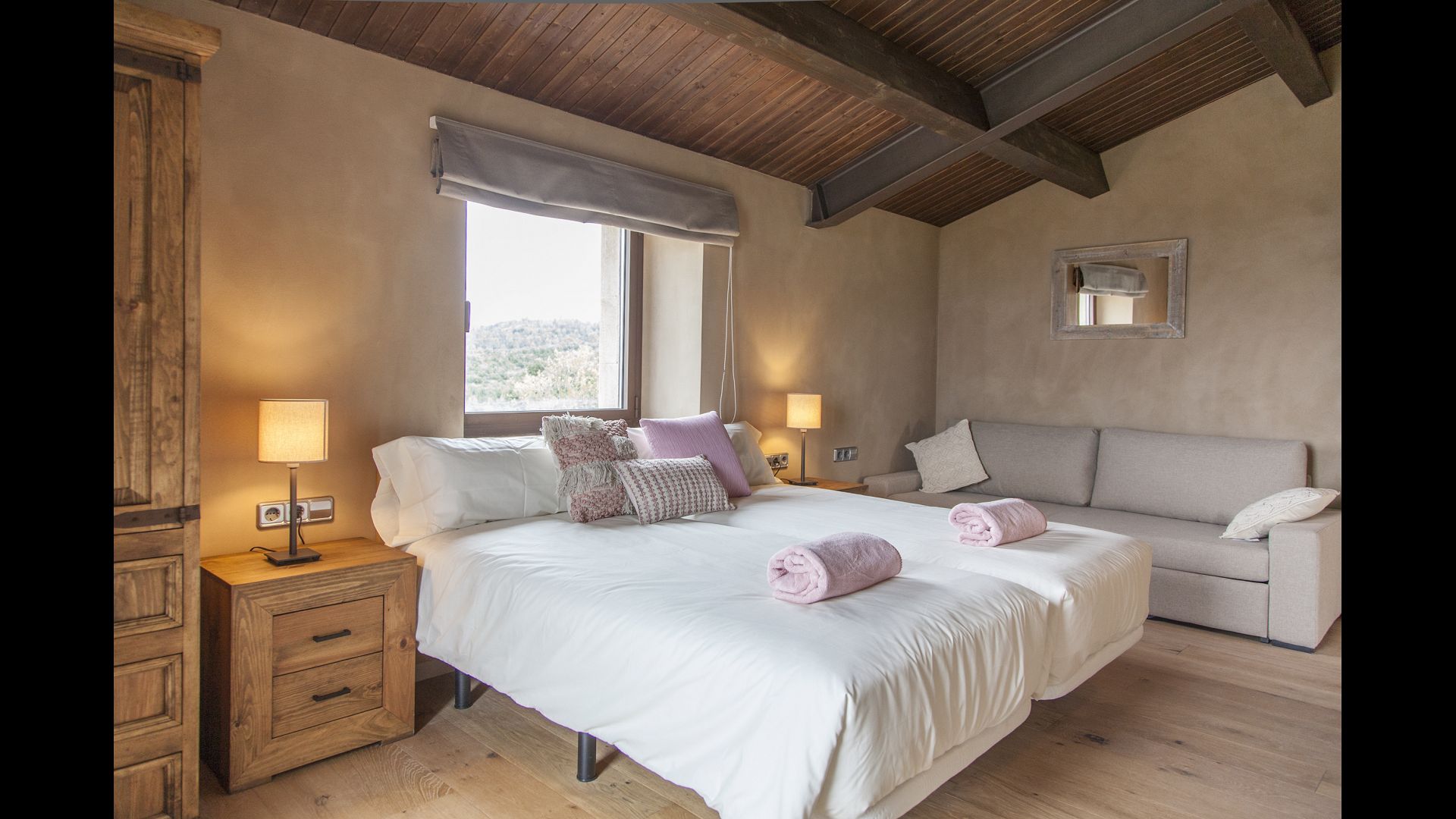 A spectacular house, full of details from the original construction, framed in wooden furniture and warm fabrics.