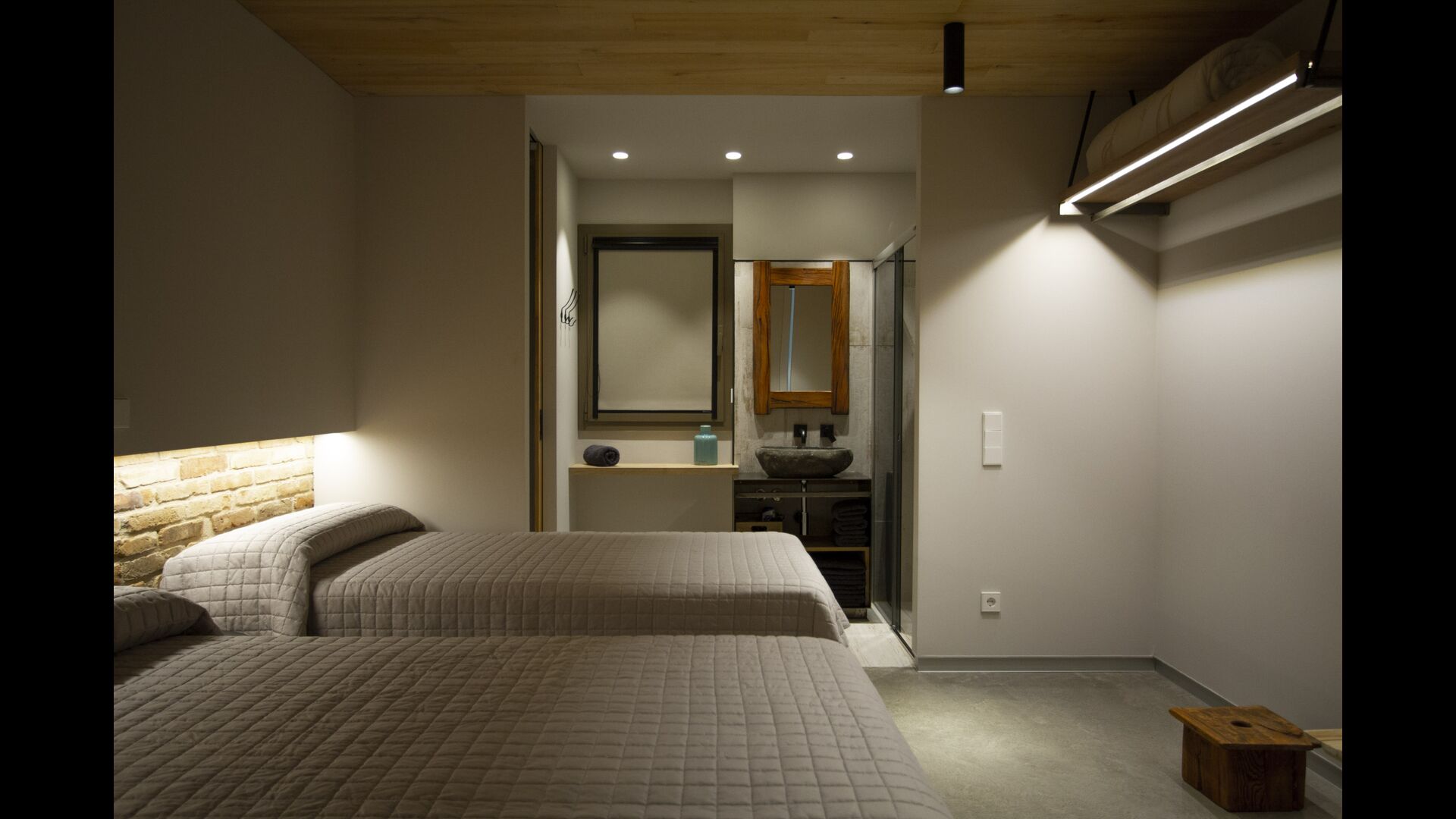 On the ground floor you will find a quadruple room with four single beds of 1.05 x 2m., And an interior bathroom.