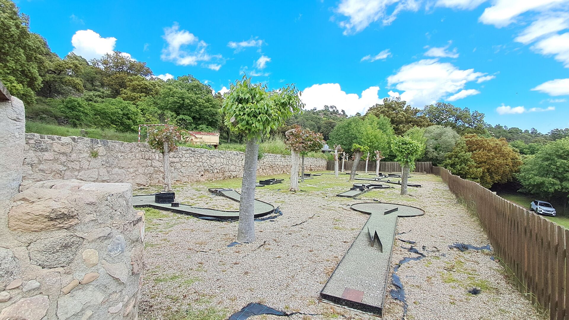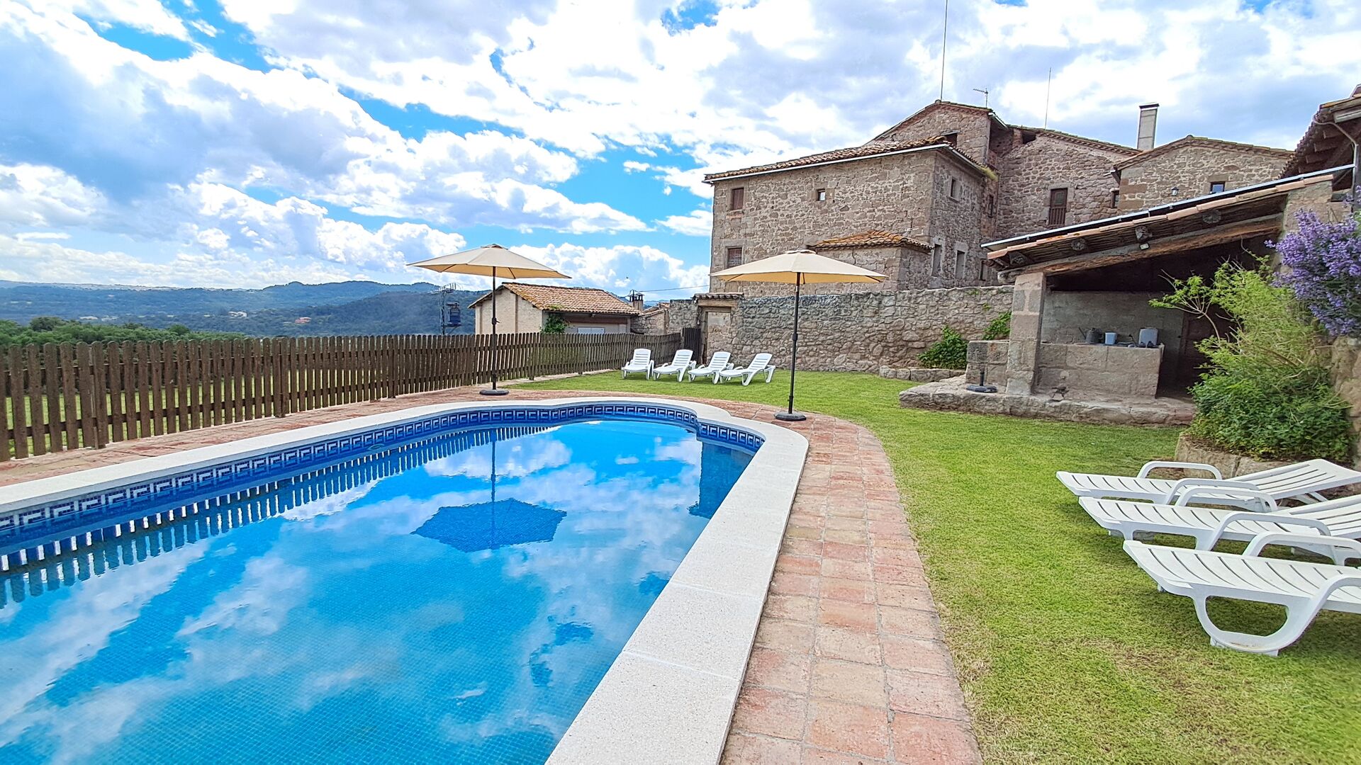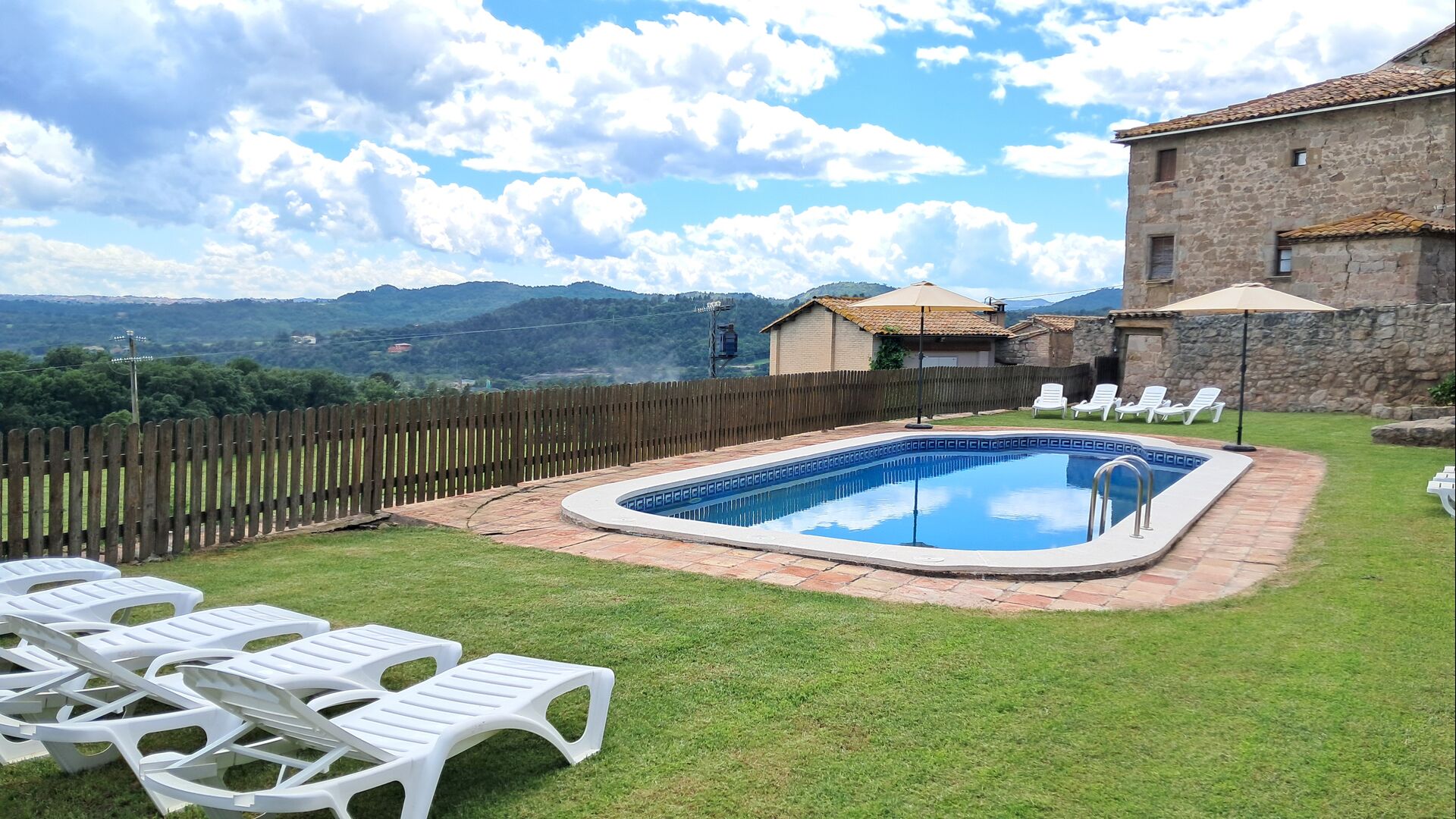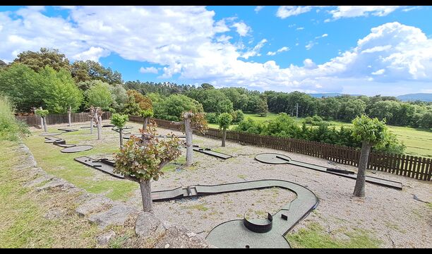 On the other side of the main building, there is a very nice pool area with terrace and barbecue, swimming pool and mini golf with 8 holes. Additionally, there is a game room with table tennis and toys for small kids and two mountain bikes, which can be used free of charge during your stay. It is also possible to explore the surrounding by foot, following one of the indicated routes.