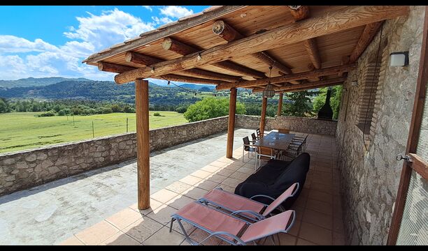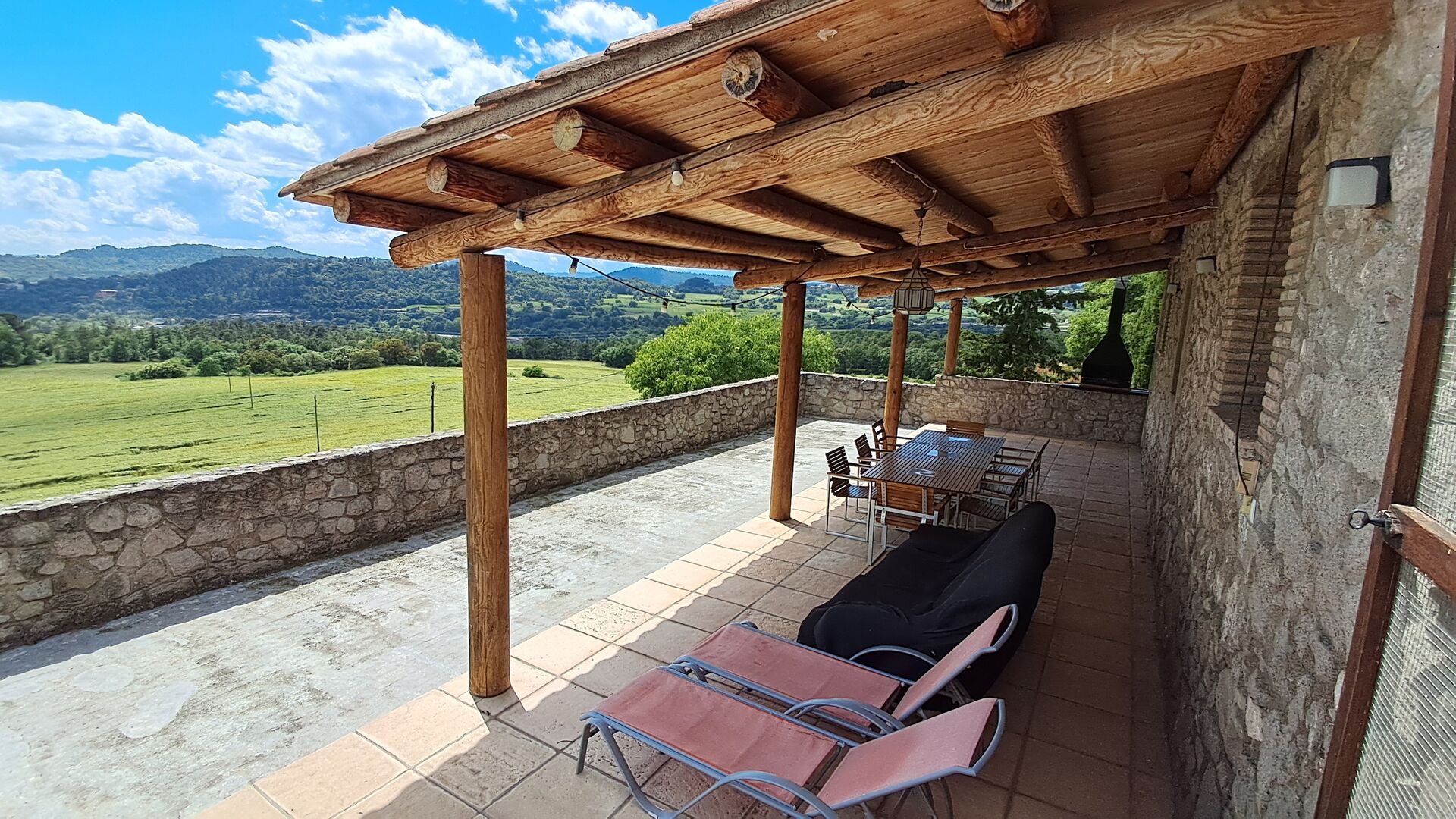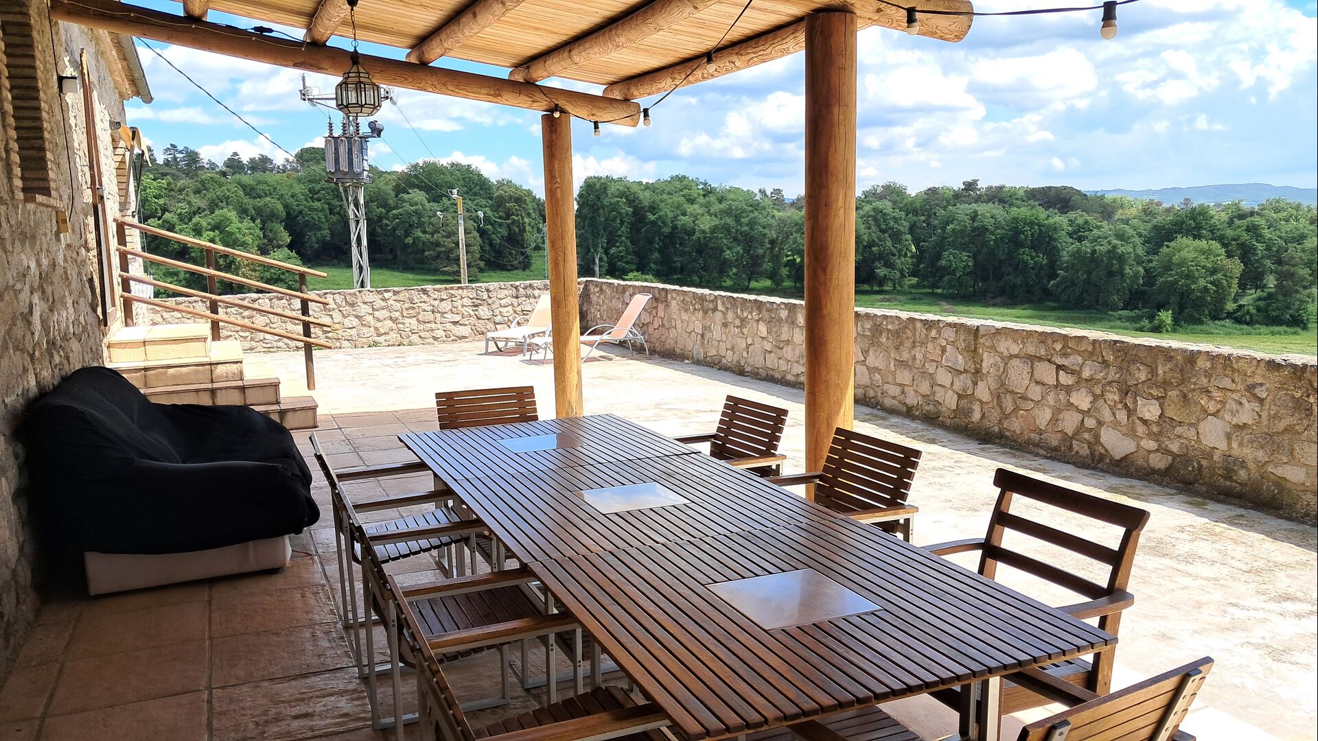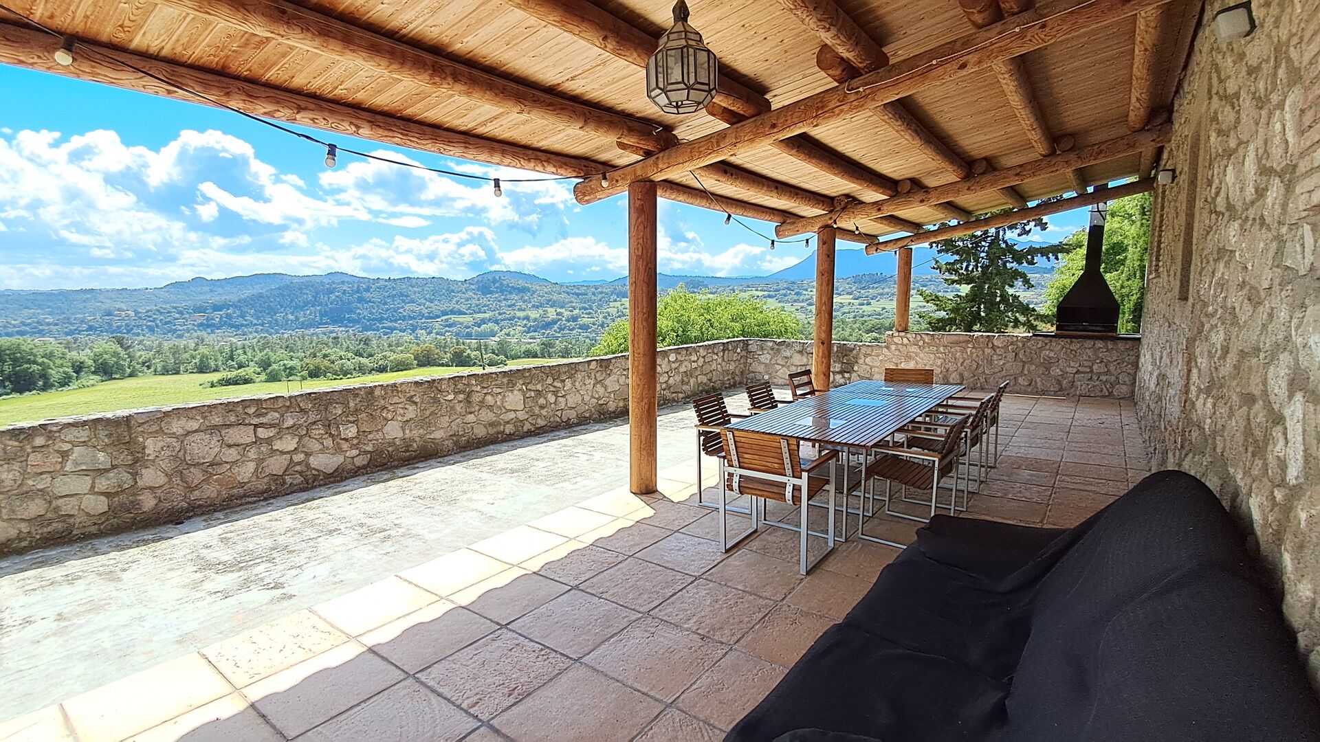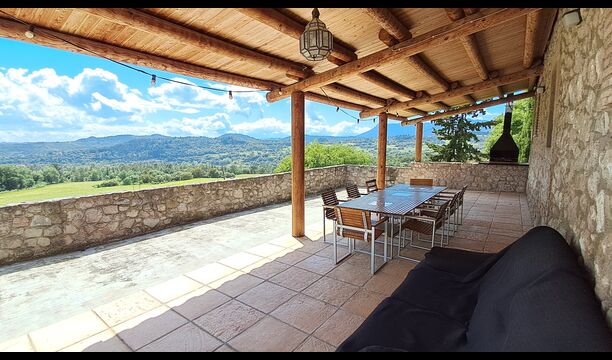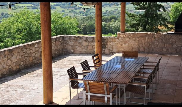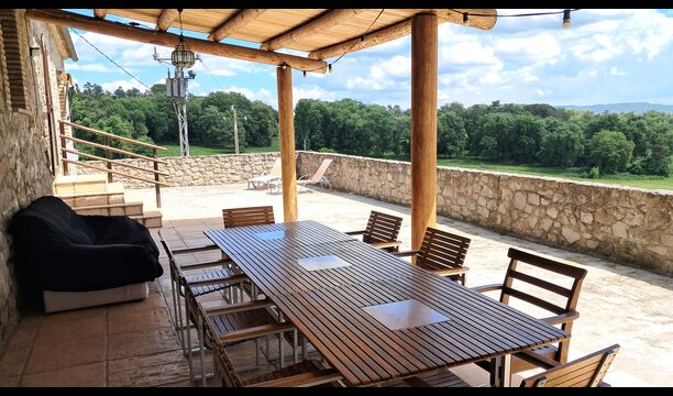 From the common room, you have access to the 100m2 covered terrace with an excellent view. There is a barbecue on the terrace, making it the perfect location for your meals as well as relaxation.