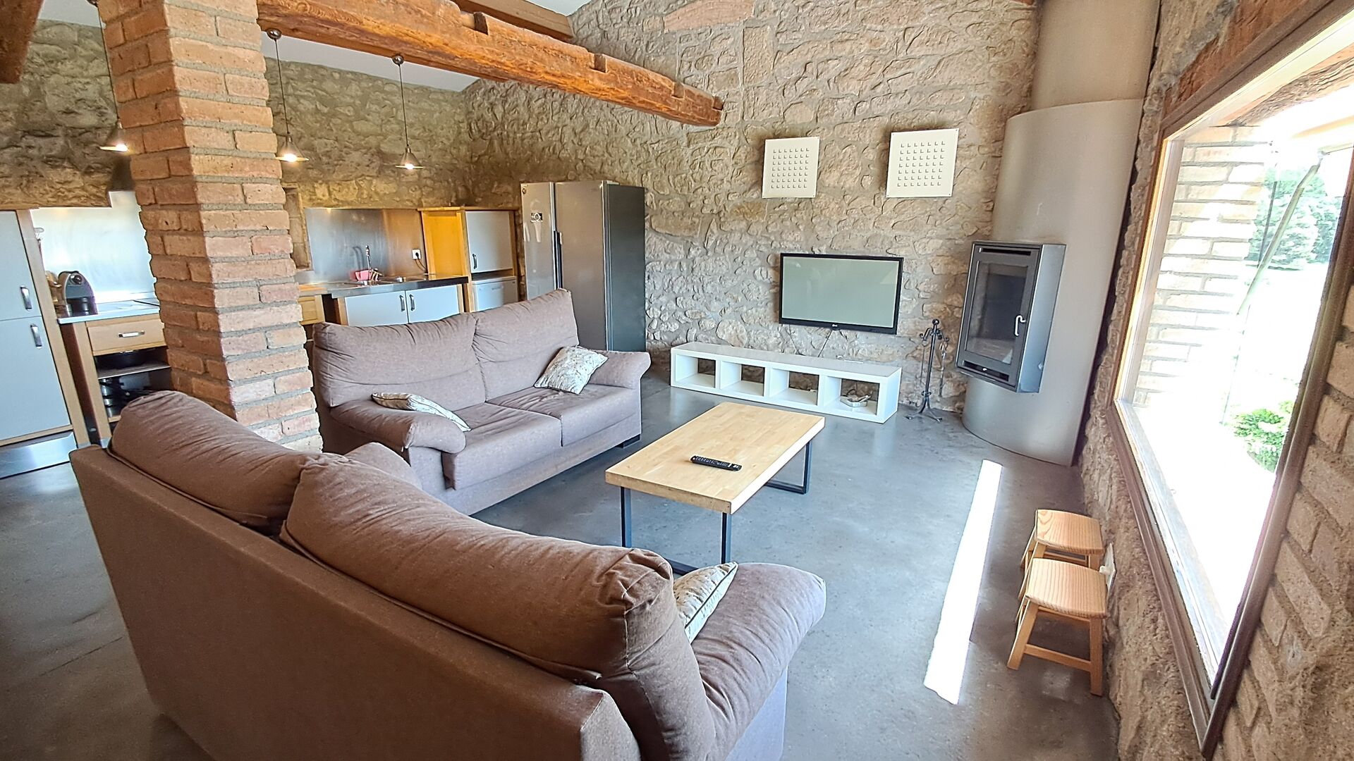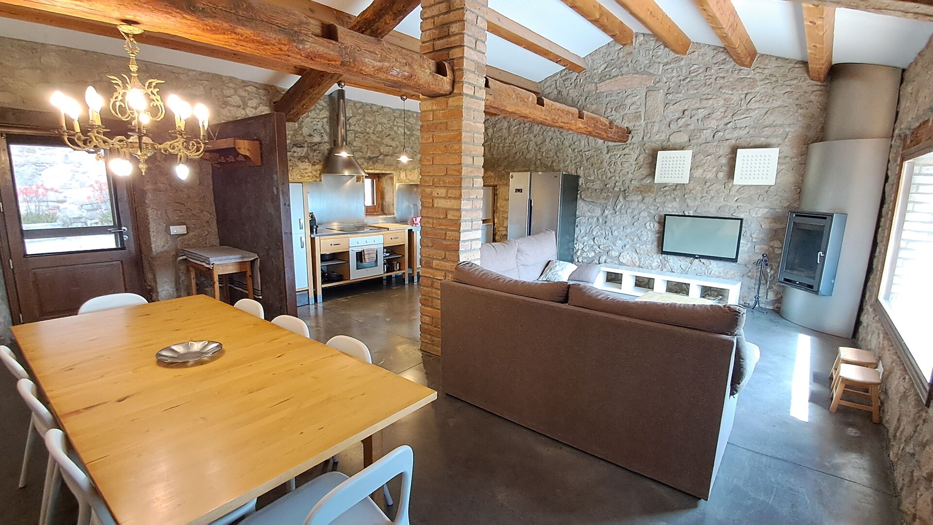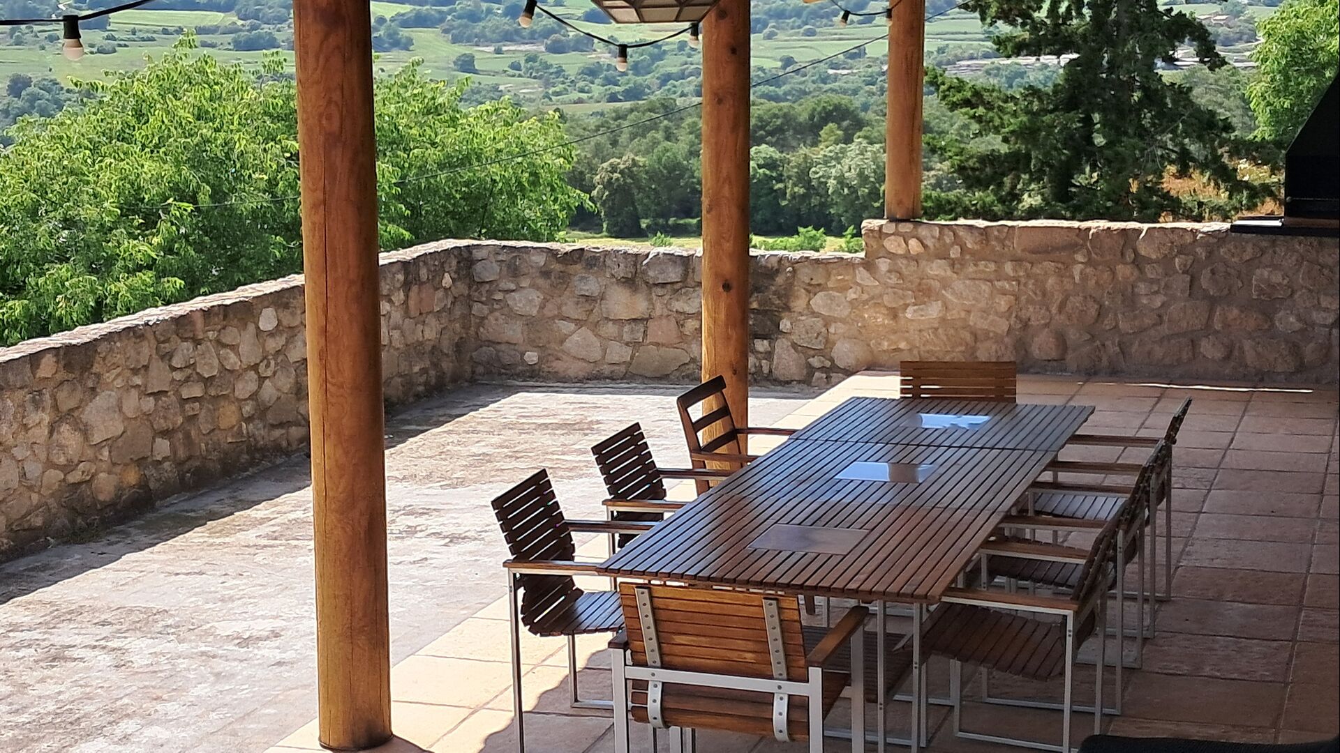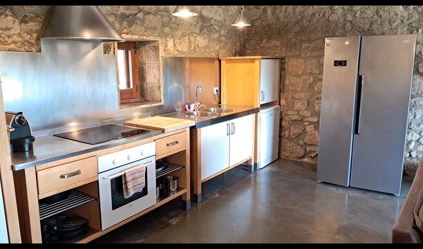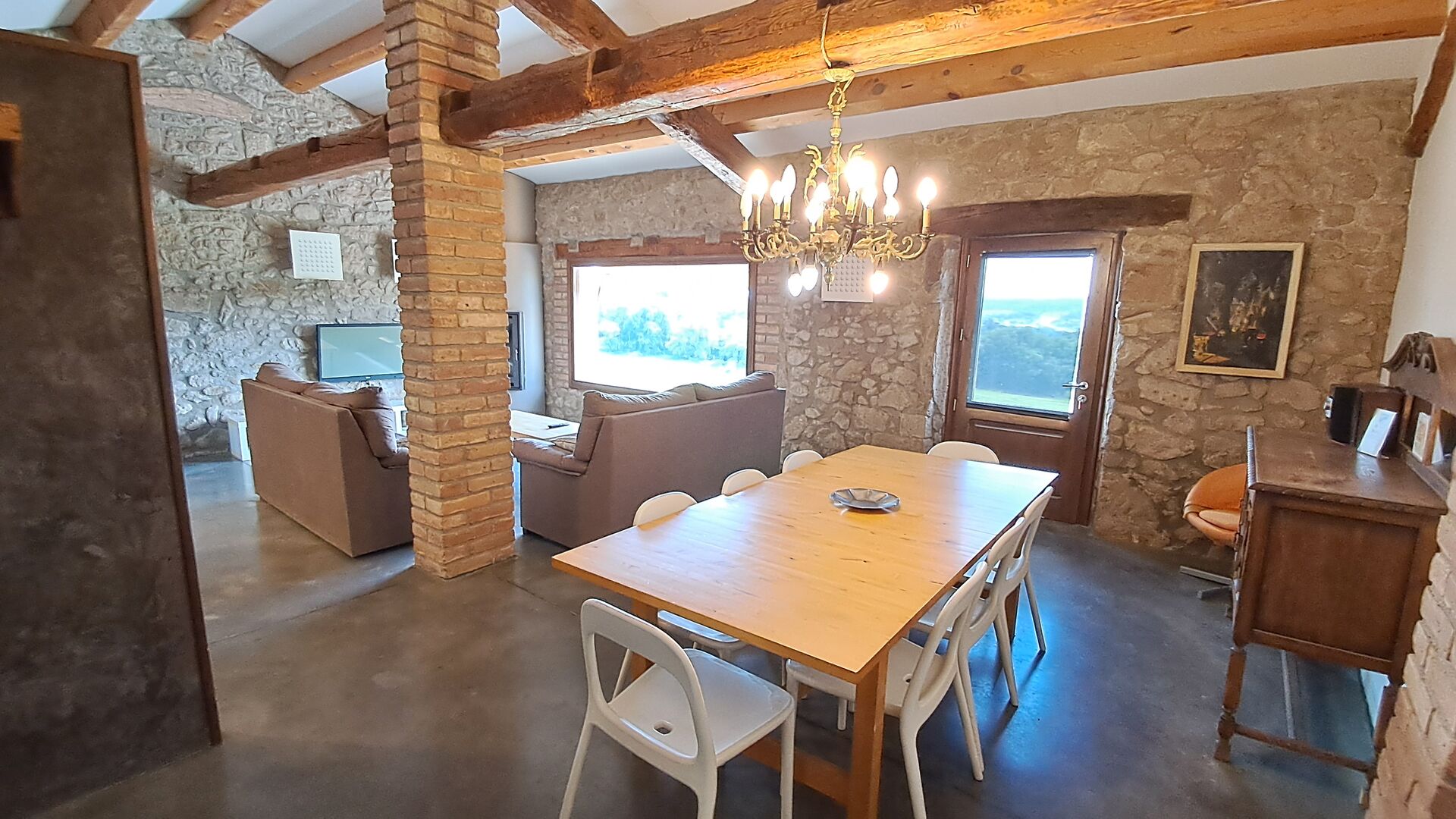 From the common room, you have access to the 100m2 covered terrace with an excellent view. There is a barbecue on the terrace, making it the perfect location for your meals as well as relaxation.
