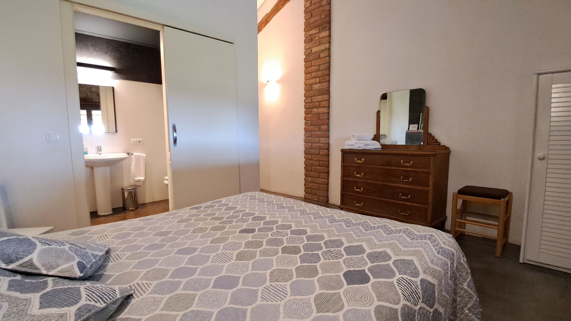 By the driveway winding between the fields you arrive to Massia Ferreras, which is a lovely country house where the owner has constructed two apartments in one of the buildings. The house is situated on a small hill, providing a fine view over the landscape with green fields with the owners' more than 500 grazing sheep.
