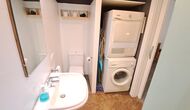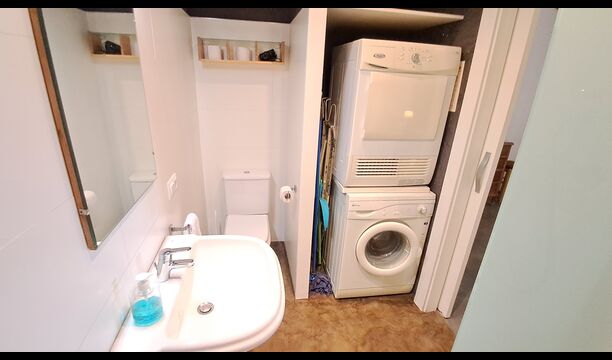 Piso Ballard is situated on the first floor in an independent building. The entrance is in level with the swimming pool, as the building is built on a slope. From the entrance, to the right you enter the 45m2 common room with kitchen corner, sofa corner, dining corner and not least panorama windows in the full length of the room. The kitchen is well-equipped with washing machine, dishwasher, ceramic hotplates, oven, microwave and toaster. To the left from the entrance you find the three large and beautifully decorated rooms, all with own bathrooms. Two of the rooms are double rooms; the third is a room with three beds.