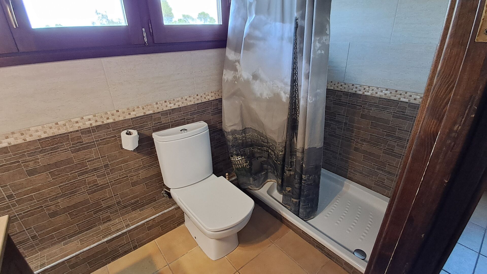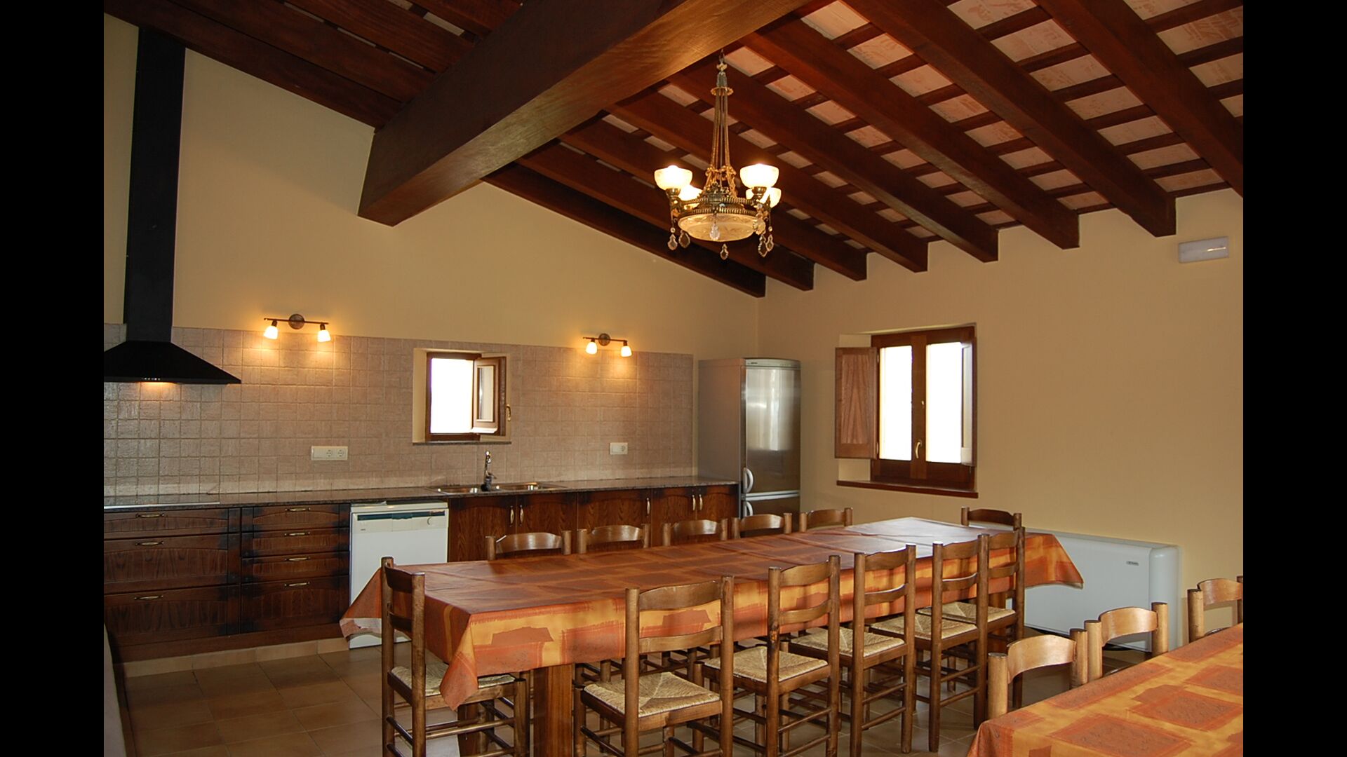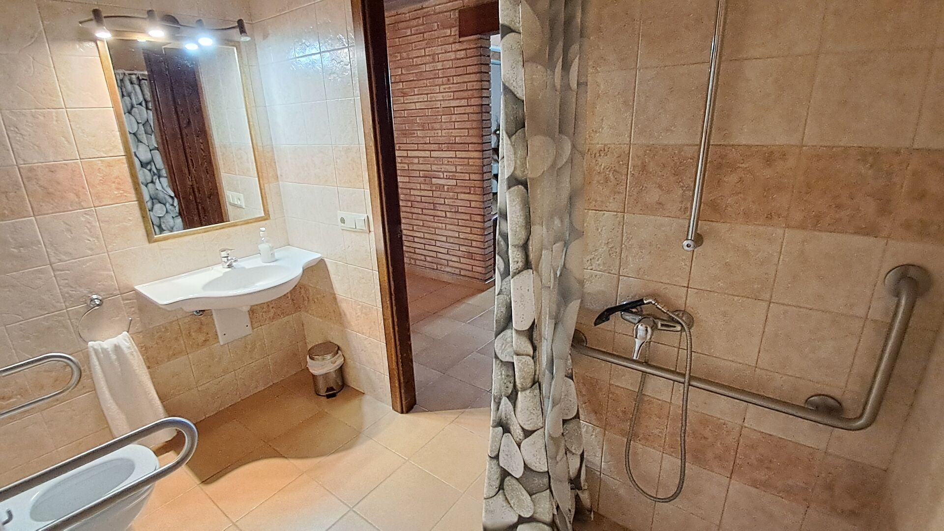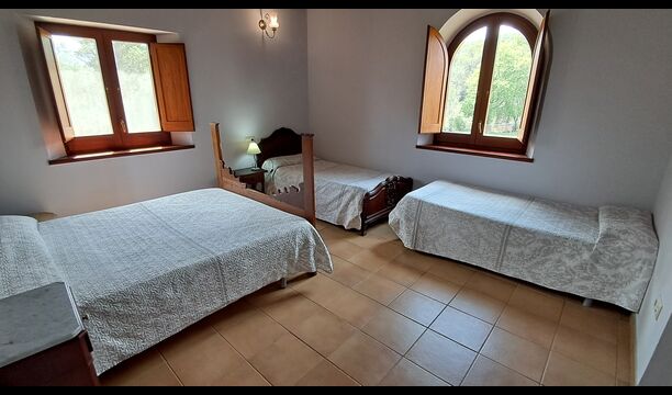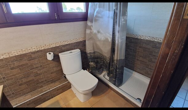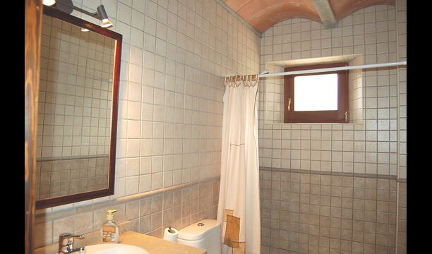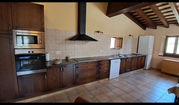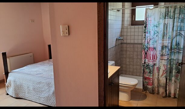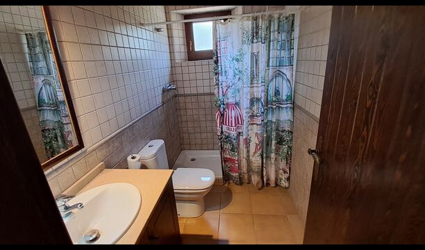 One half of the first floor functions as a large common room with an open kitchen and plenty of space, allowing the entire group to dine together. There is also a cozy sofa corner with a television and a DVD-player. The house also has WI-FI. From this area, an outdoor stairway gives you direct access to the covered terrace with the barbecue area. In the other part of the first floor, you will find 4 spacious bedrooms, 2 of them double rooms and 2 of them triple rooms. There are 4 bathrooms in total on this floor.