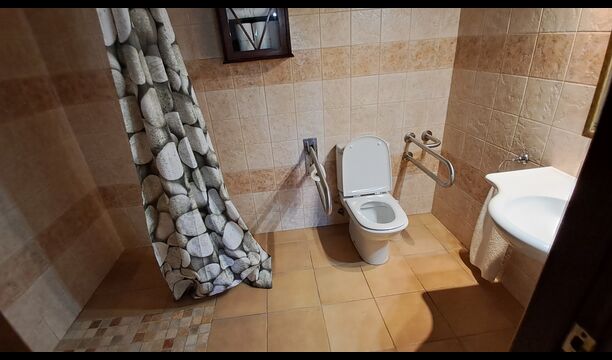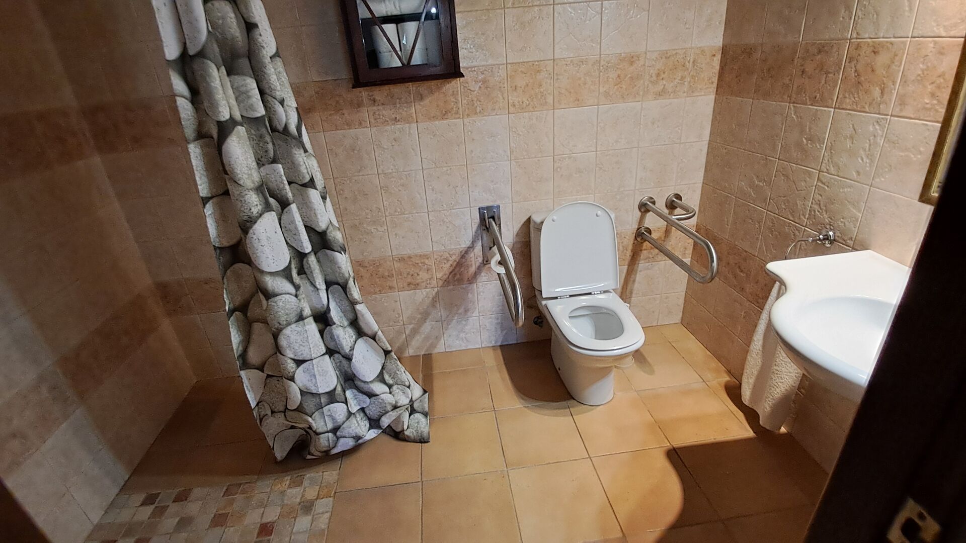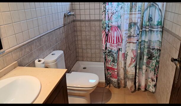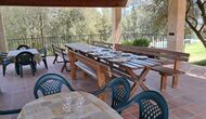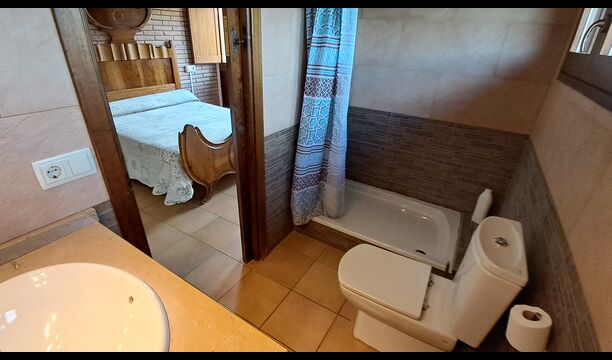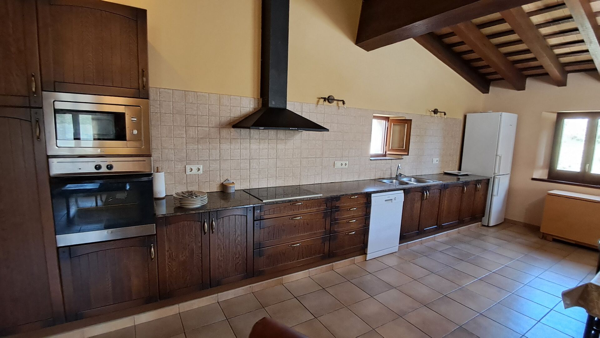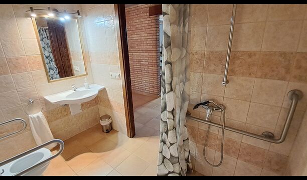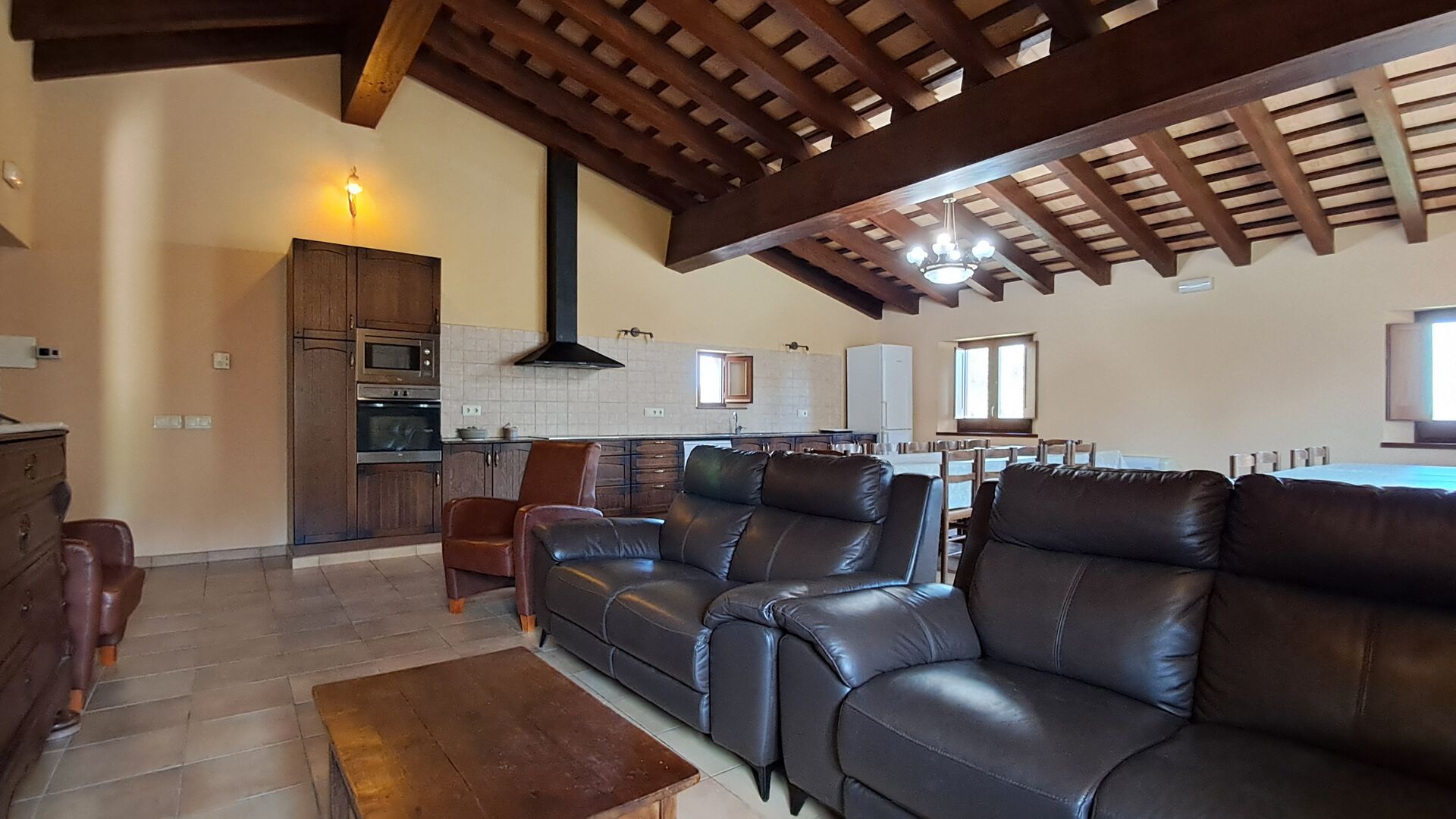 One half of the first floor functions as a large common room with an open kitchen and plenty of space, allowing the entire group to dine together. There is also a cozy sofa corner with a television and a DVD-player. The house also has WI-FI. From this area, an outdoor stairway gives you direct access to the covered terrace with the barbecue area. In the other part of the first floor, you will find 4 spacious bedrooms, 2 of them double rooms and 2 of them triple rooms. There are 4 bathrooms in total on this floor.