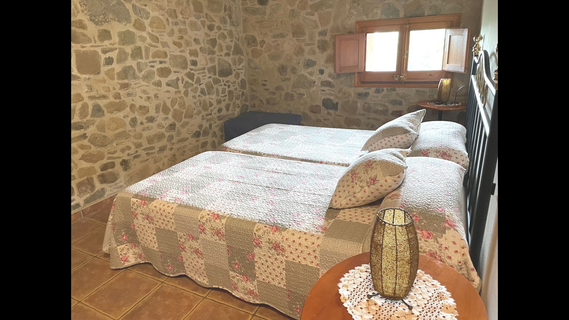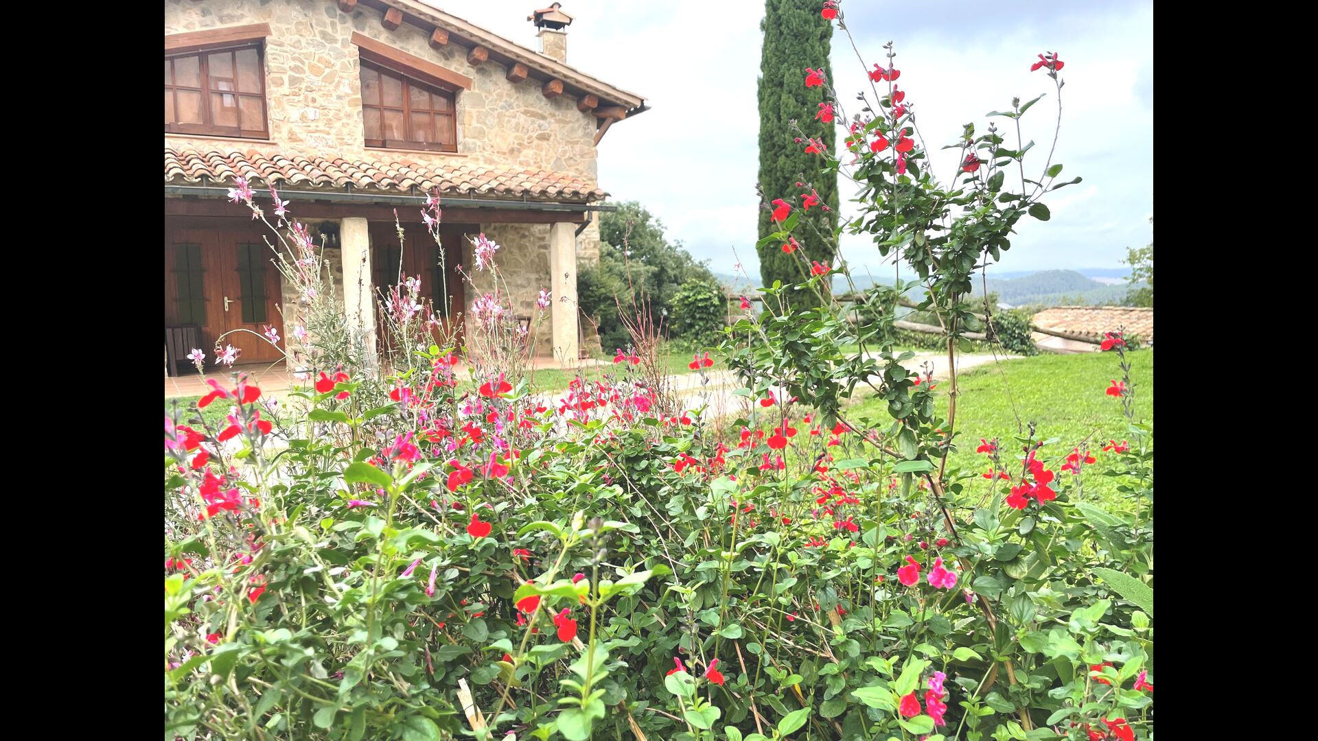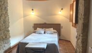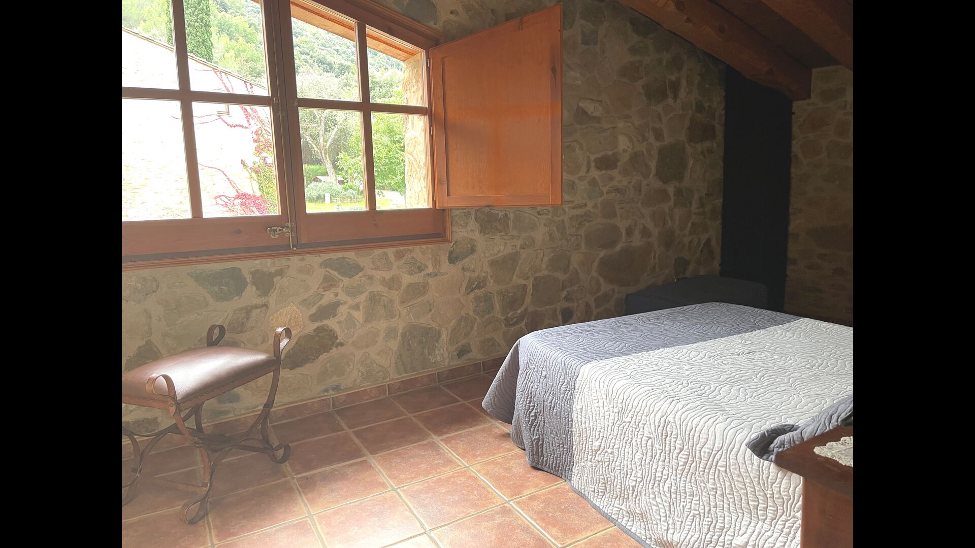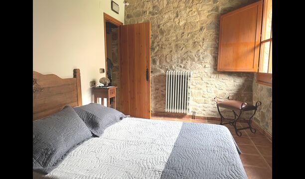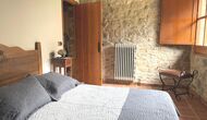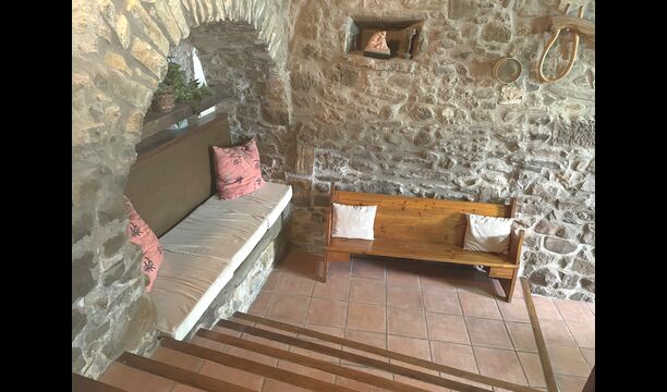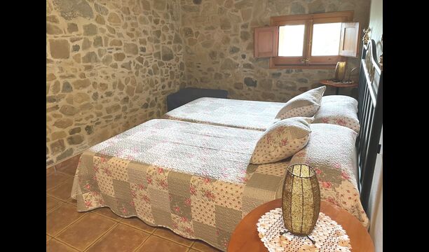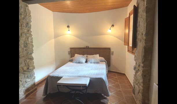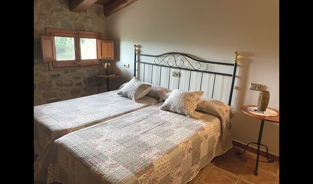 Are you looking for a completely secluded place but still not too far from a nice town with restaurants, Masia Sol de Marlant might be the place. Staying on a mountain of course requires arriving by a mountain road, but the road is fine and only the last part without pavement, so you can arrive without problems. The reward is stunning! What a natural place surrounded by nature and with views to the valley below. The energy source is sun cells, adding to the natural and sustainable feeling.