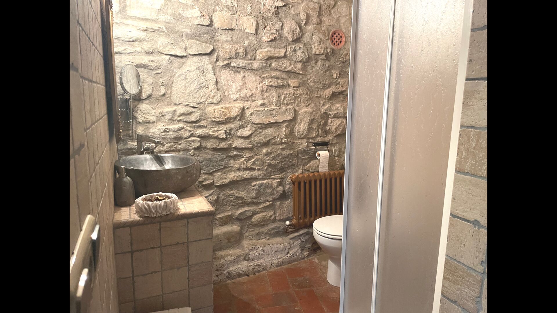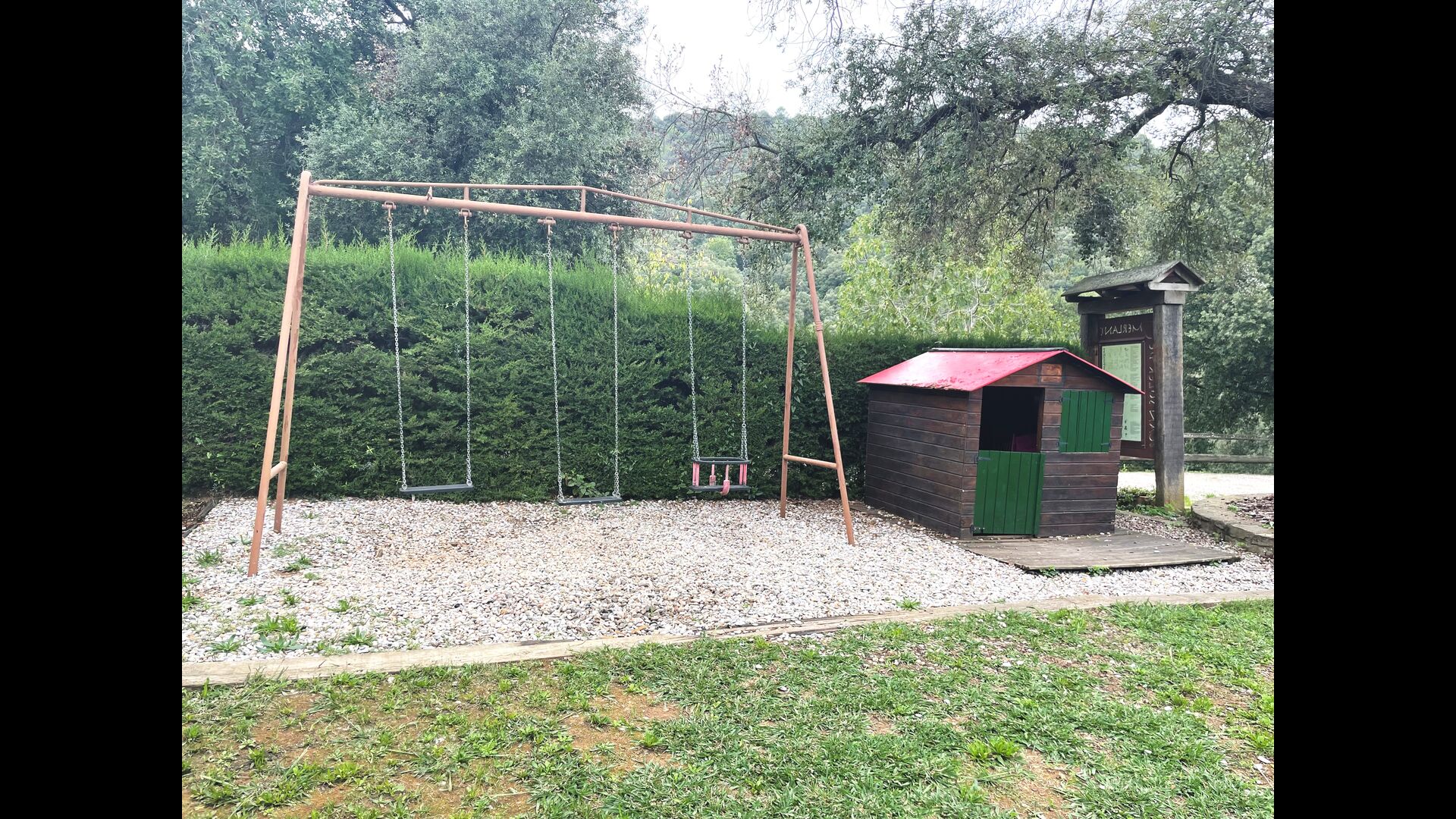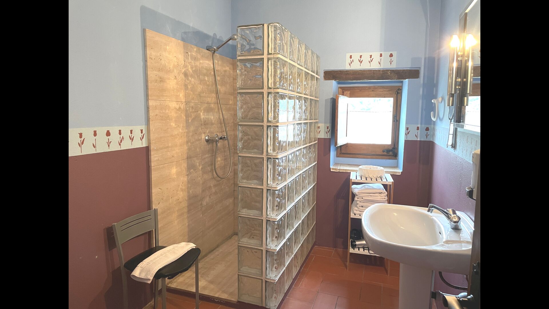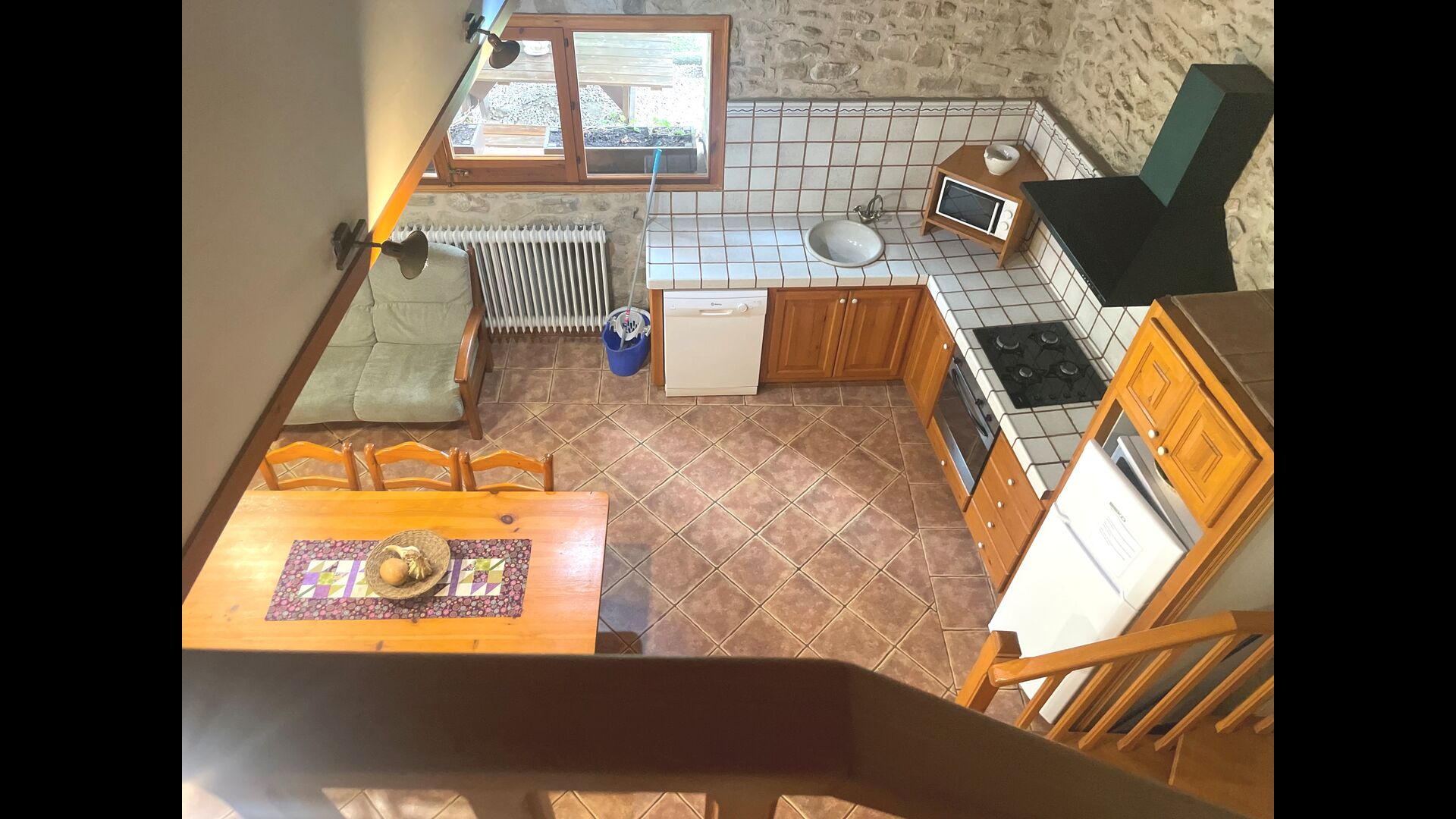 Are you looking for a completely secluded place but still not too far from a nice town with restaurants, Masia Sol de Marlant might be the place. Staying on a mountain of course requires arriving by a mountain road, but the road is fine and only the last part without pavement, so you can arrive without problems. The reward is stunning! What a natural place surrounded by nature and with views to the valley below. The energy source is sun cells, adding to the natural and sustainable feeling.