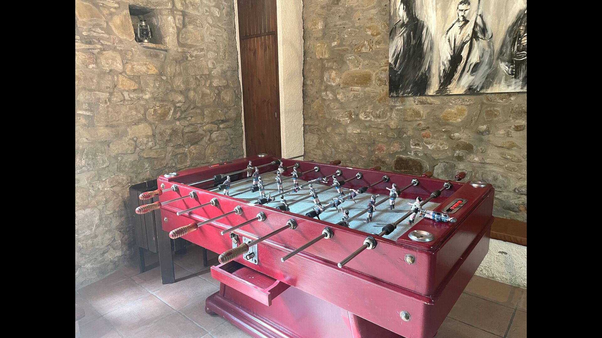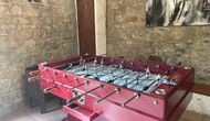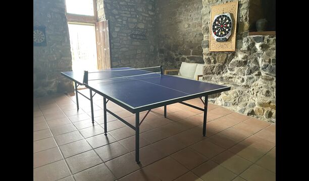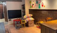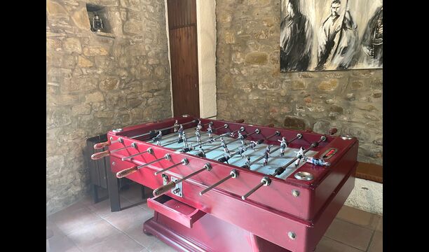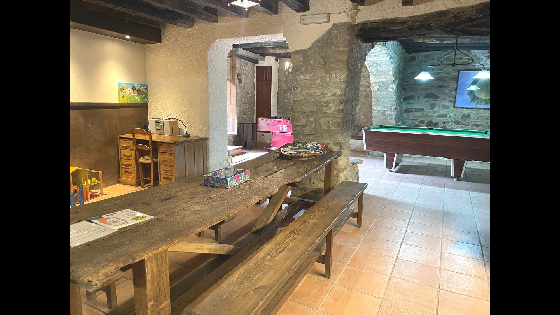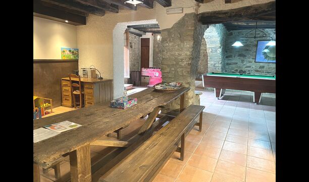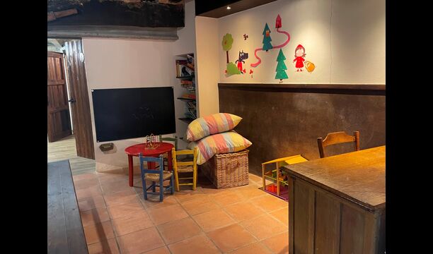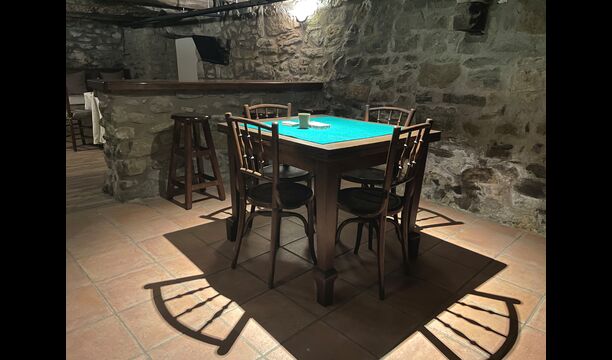 The building next to the swimming pool consist of the two apartments Soler I and Soler II,, which are also interiorly connected. On the lowest floor, you will find the big activity area, which is great. There is corner with toys for smaller children, billiard, table tennis, table football, and even an original card game table as taken out of a mafia movie from New York. Here, you also find two extra toilets.