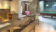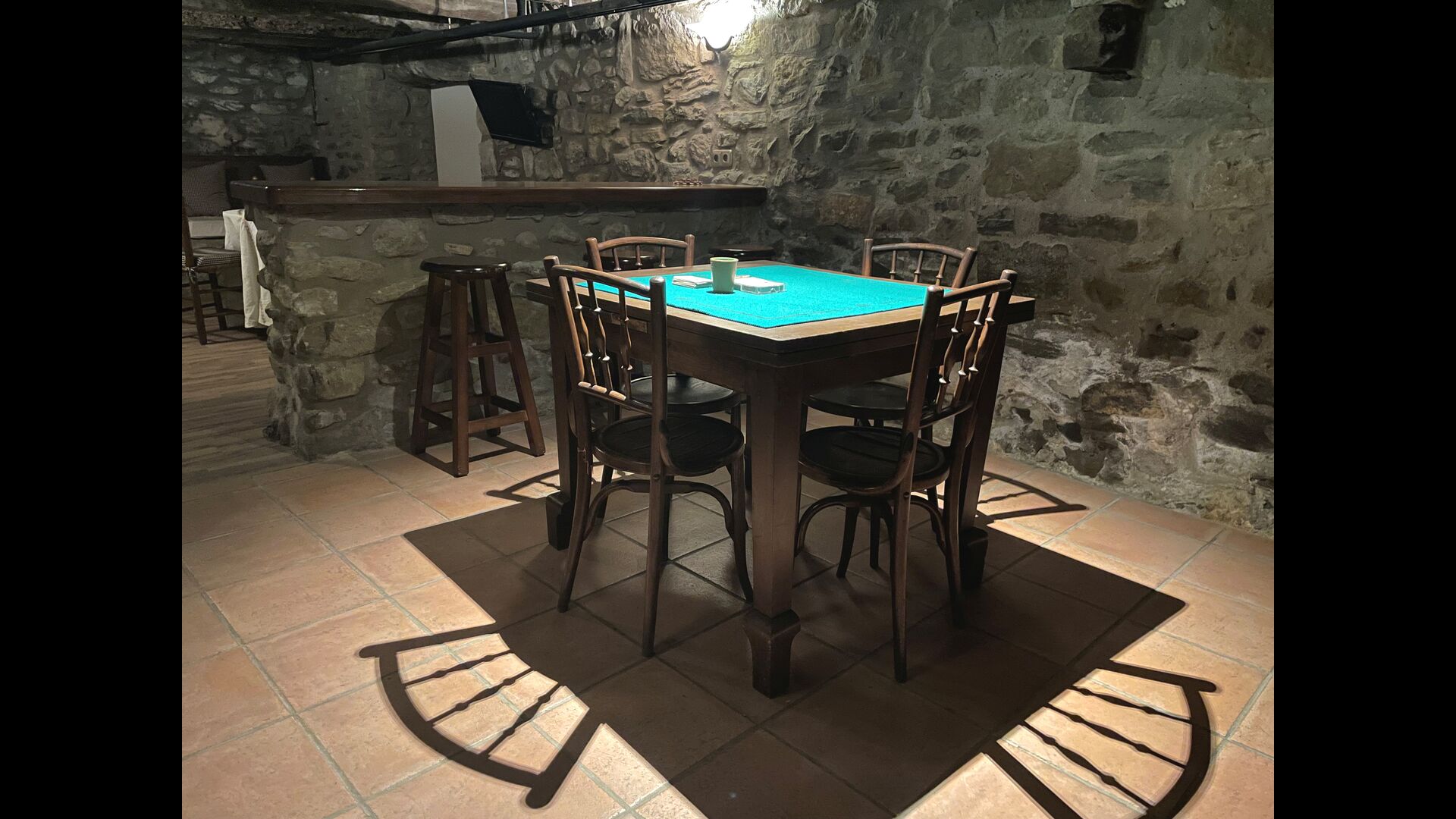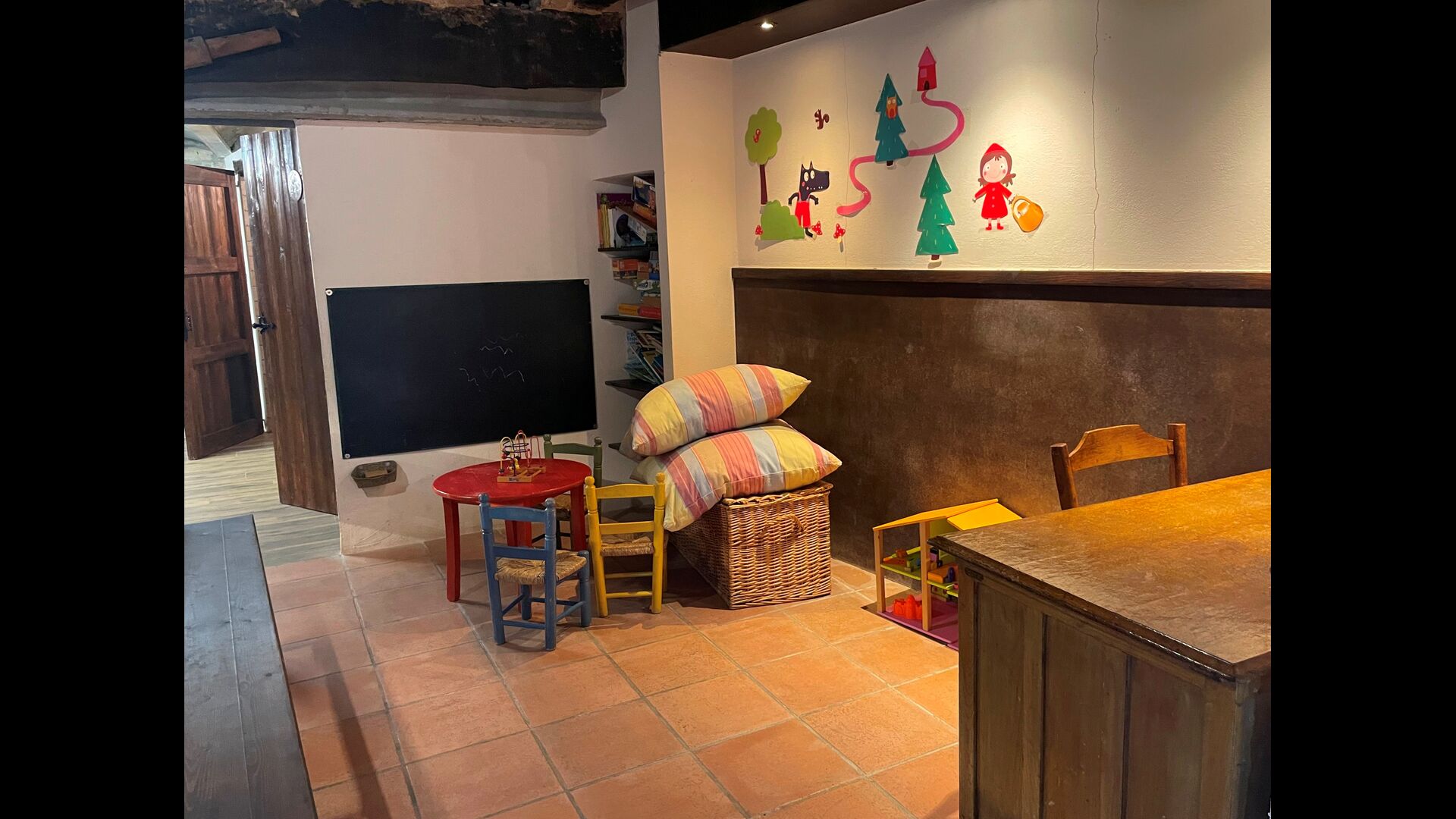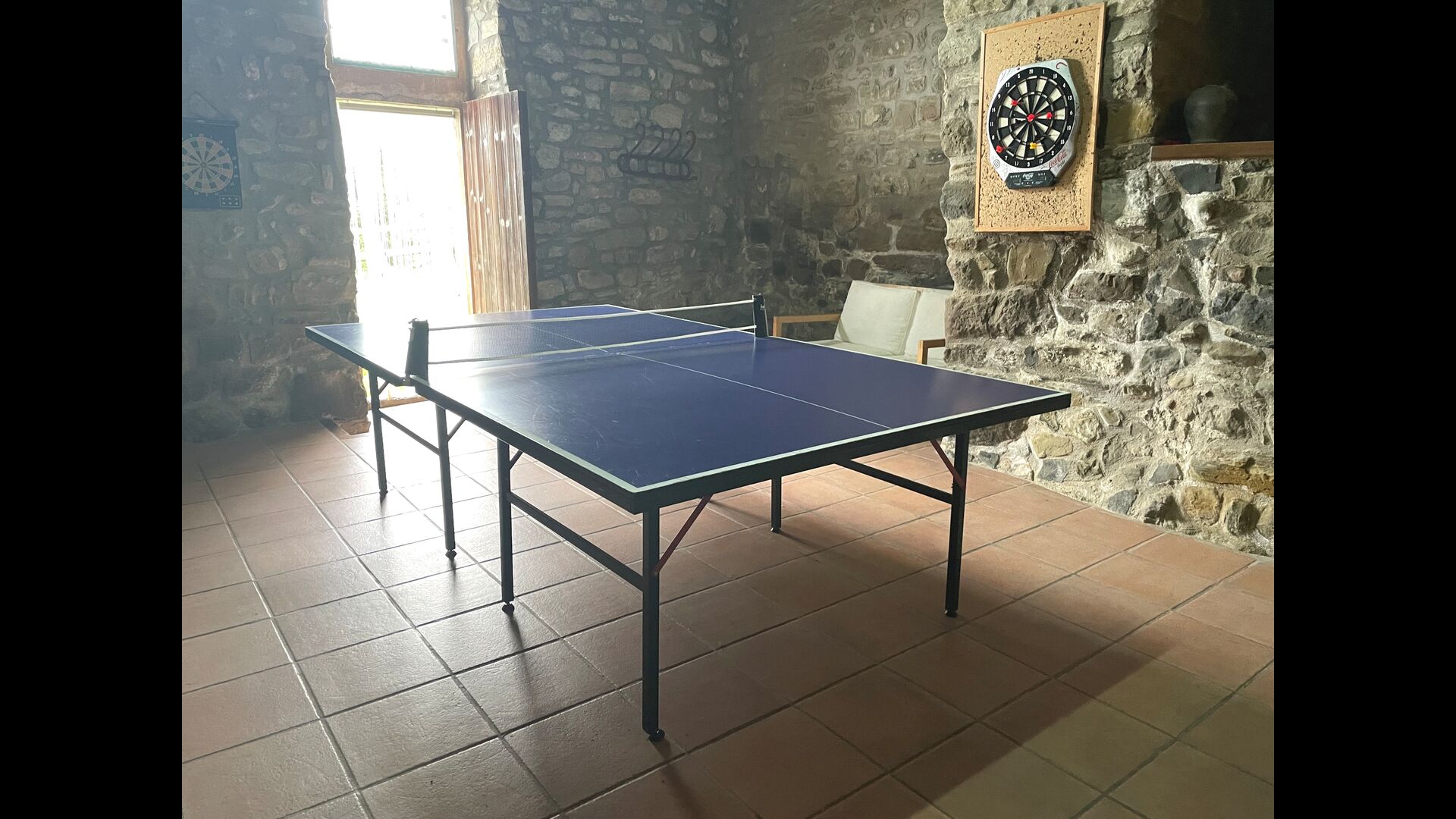 The building next to the swimming pool consist of the two apartments Soler I and Soler II,, which are also interiorly connected. On the lowest floor, you will find the big activity area, which is great. There is corner with toys for smaller children, billiard, table tennis, table football, and even an original card game table as taken out of a mafia movie from New York. Here, you also find two extra toilets.