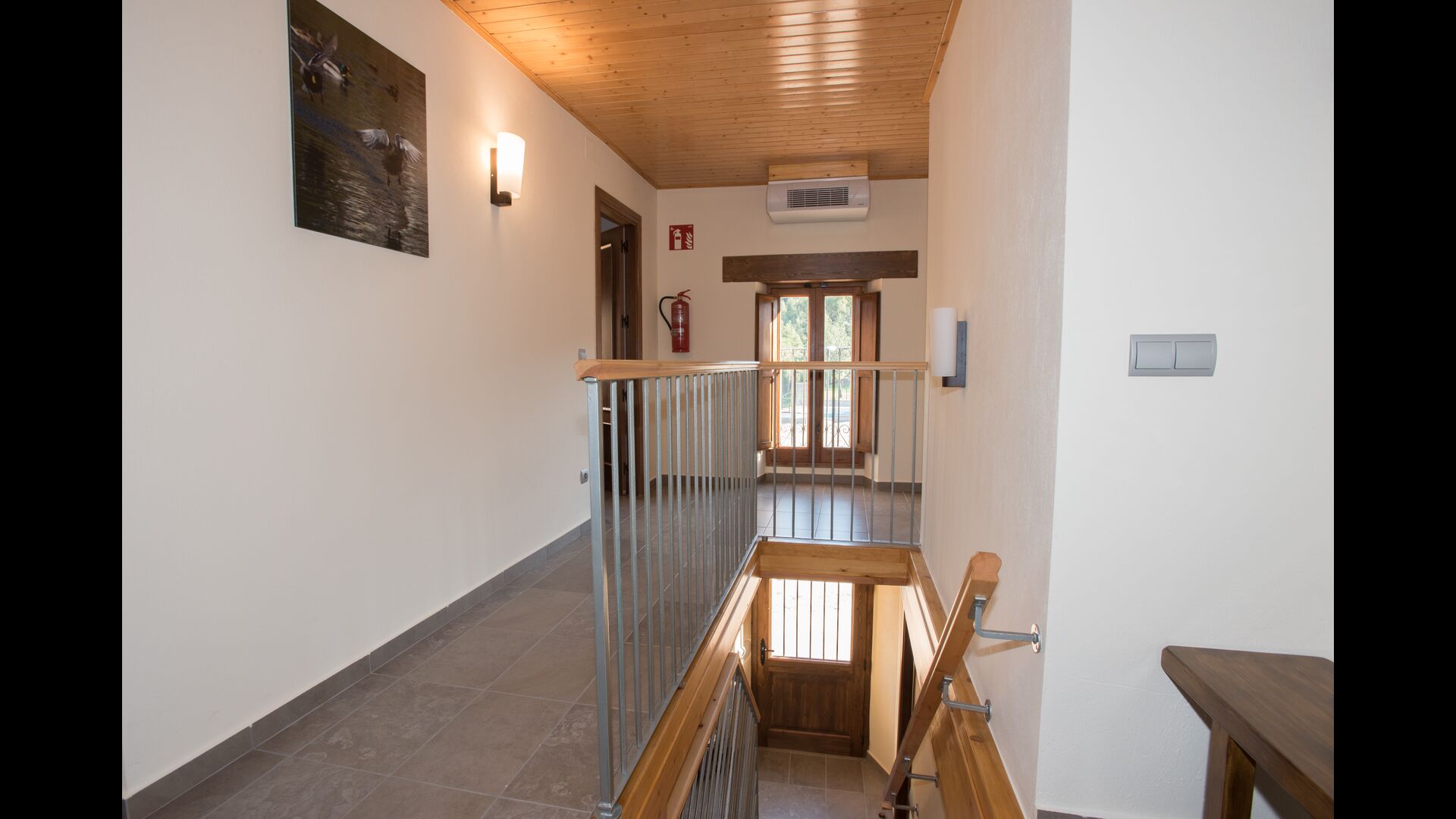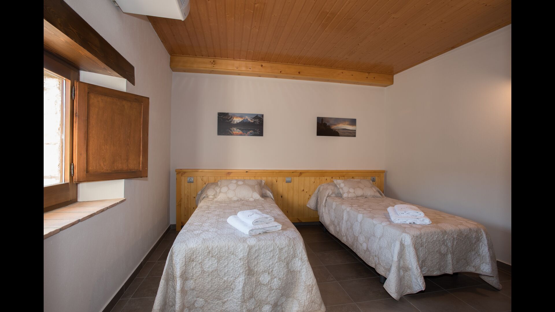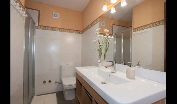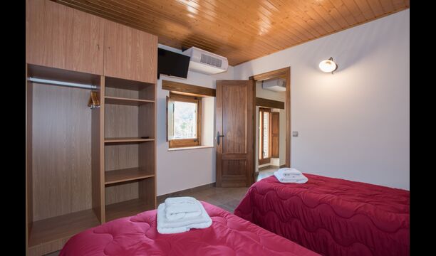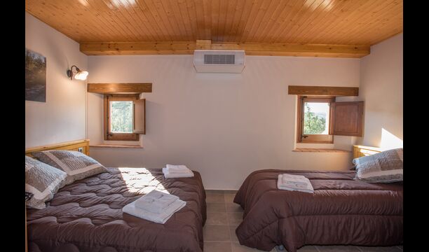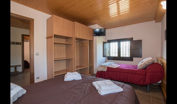 Upstairs, you find the additional 4 bedrooms, which are equipped to be able to host 3 families as there are 2 triple rooms and 1 double room and finally, the fourth bedroom has been converted into a children’s room with two bunk beds. There are two bathrooms on this floor also, making it three in total. As one tend to be a bit hot, there is air conditioning in that room.
