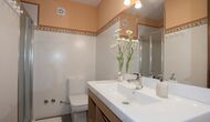 The house has very nice layout with the common areas in the ground floor. This includes a well-equipped kitchen, a common room with dining table and sofas and TV. In addition, there is a double bedroom and an adapted bathroom downstairs.