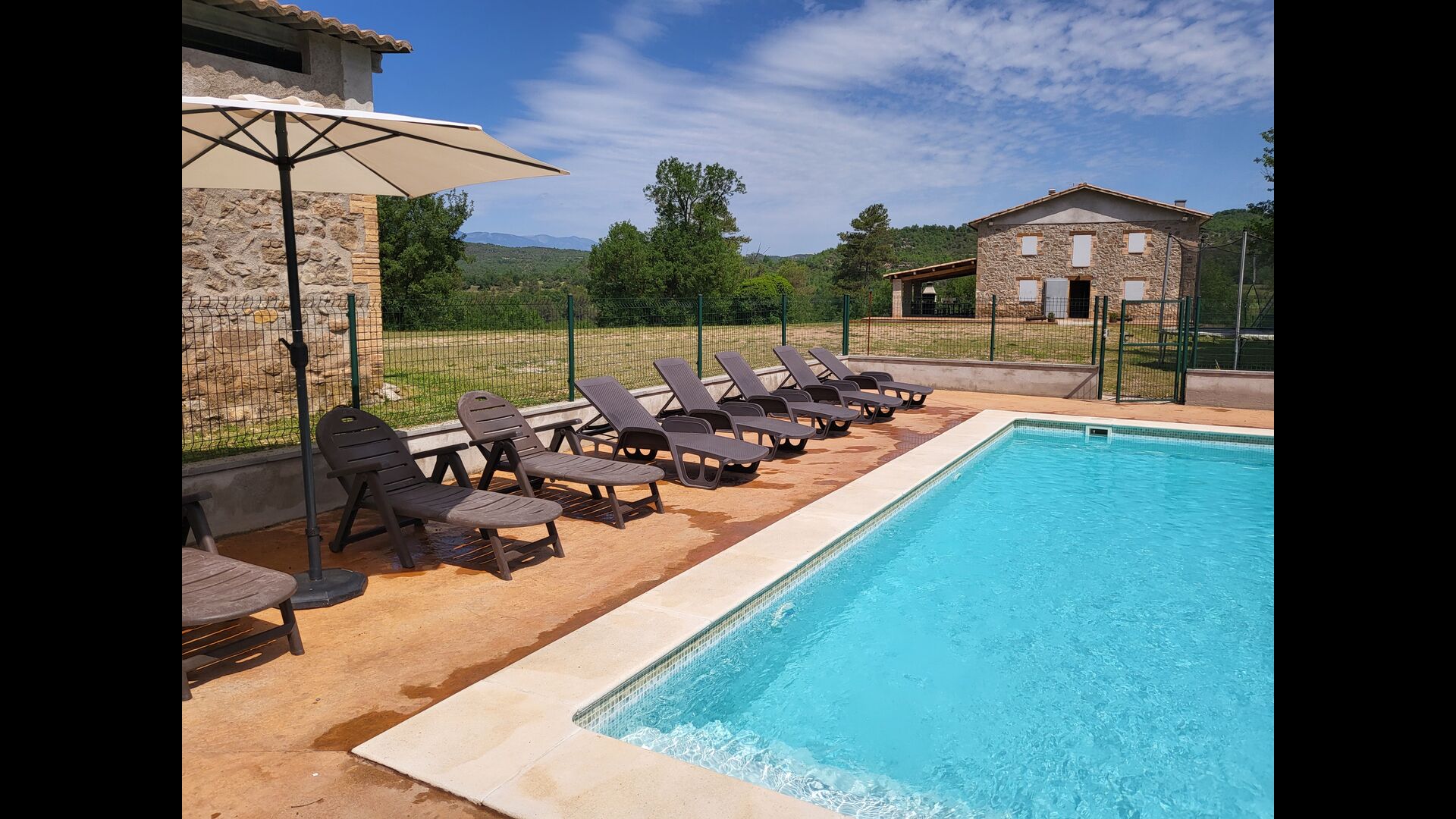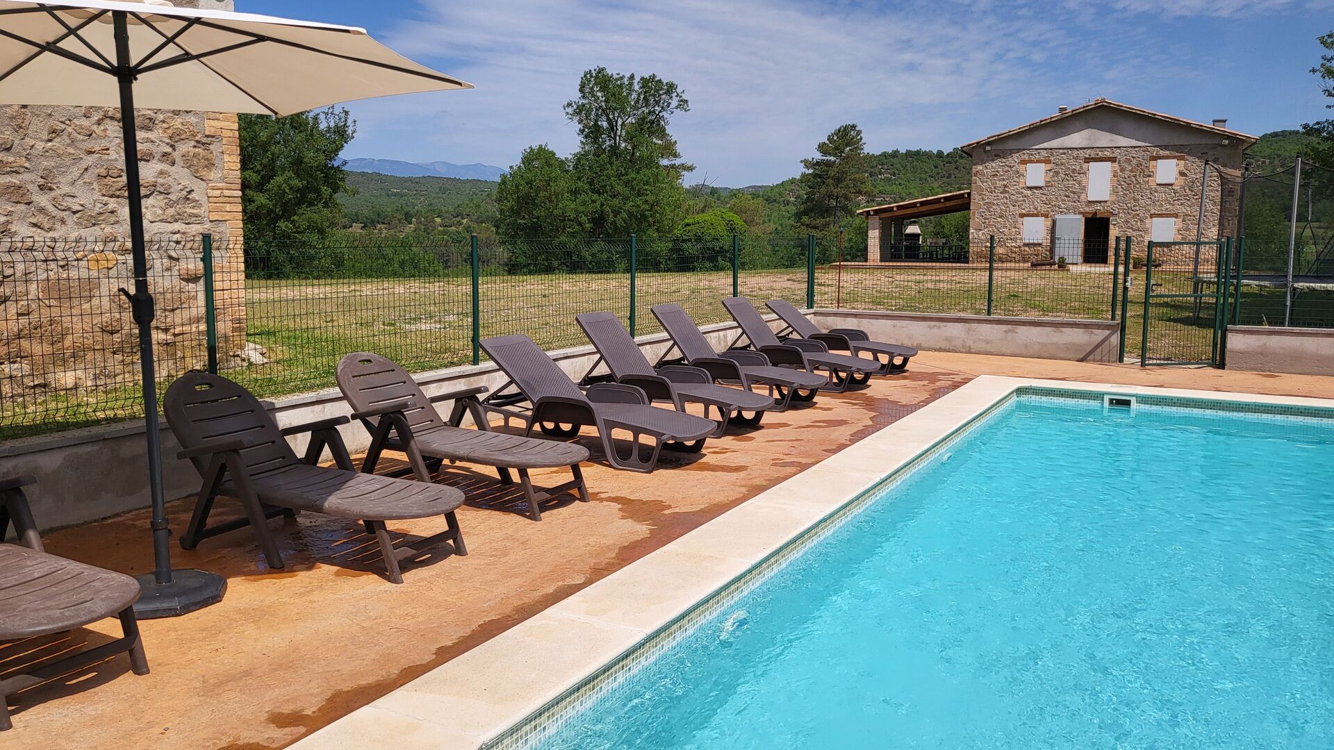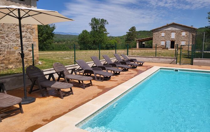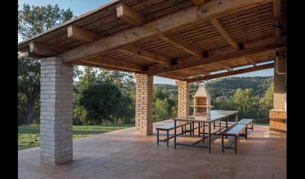 Stay in beautiful surrounding with no neighbors in the classic Catalan limestone house for 12+2 persons. Enjoy the view of the wooded mountains, or take the short walk down to the riera - the tiny river making its way through the landscape just below the house, and depending on the weather even give you lovely small pools to swim in and also a tiny waterfall.