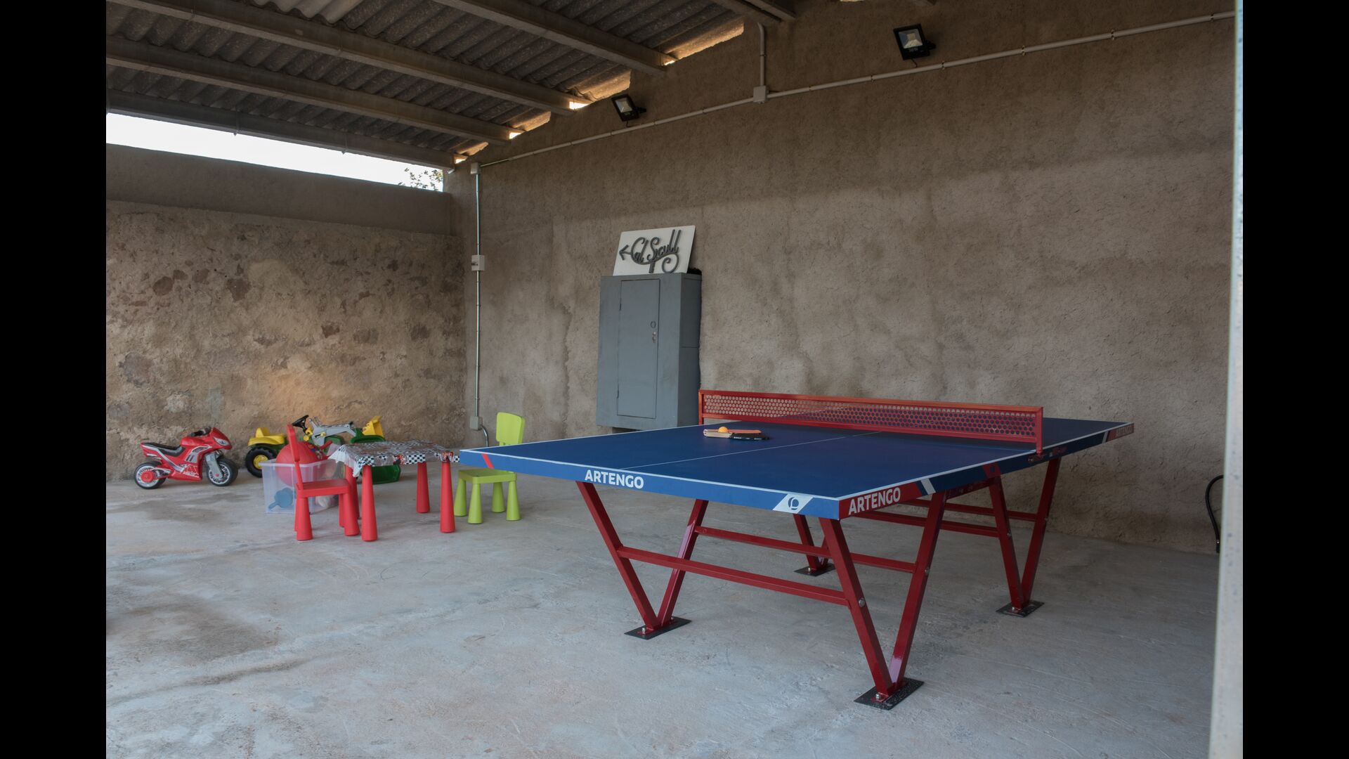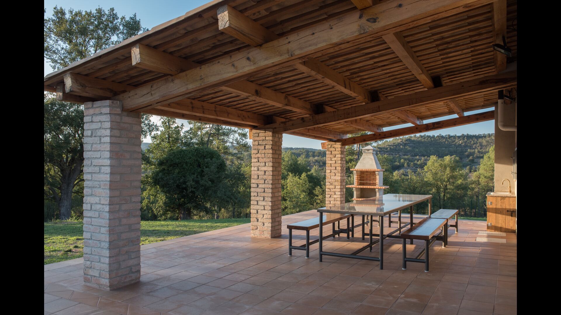 However, in the Summer, you will probably mostly stay outside, and here you can enjoy life in the very nice covered terrace with barbecue, and from where you can easily keep an eye on the swimming pool (which is also fenced for additional safety).