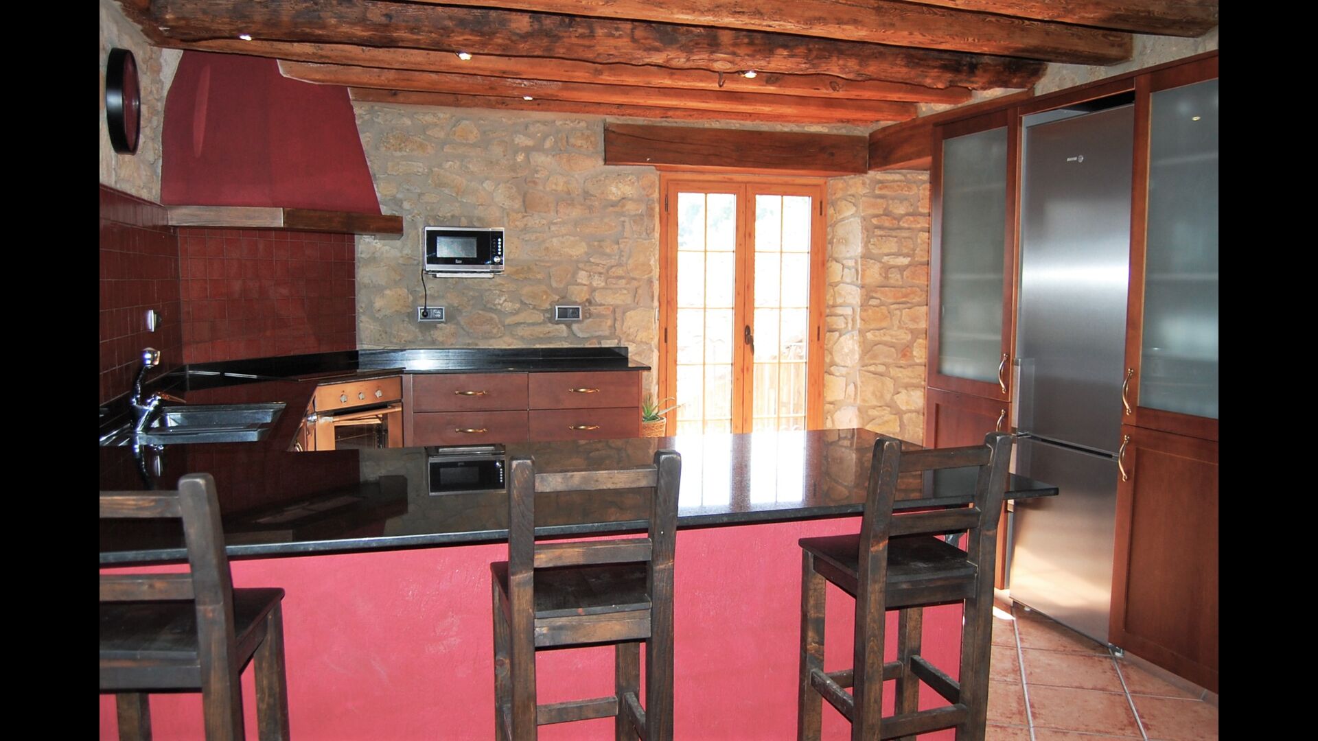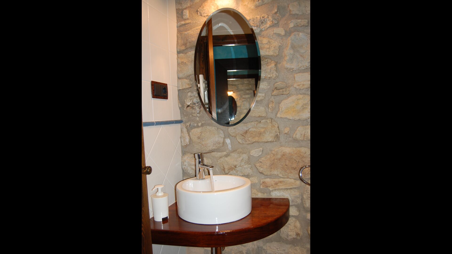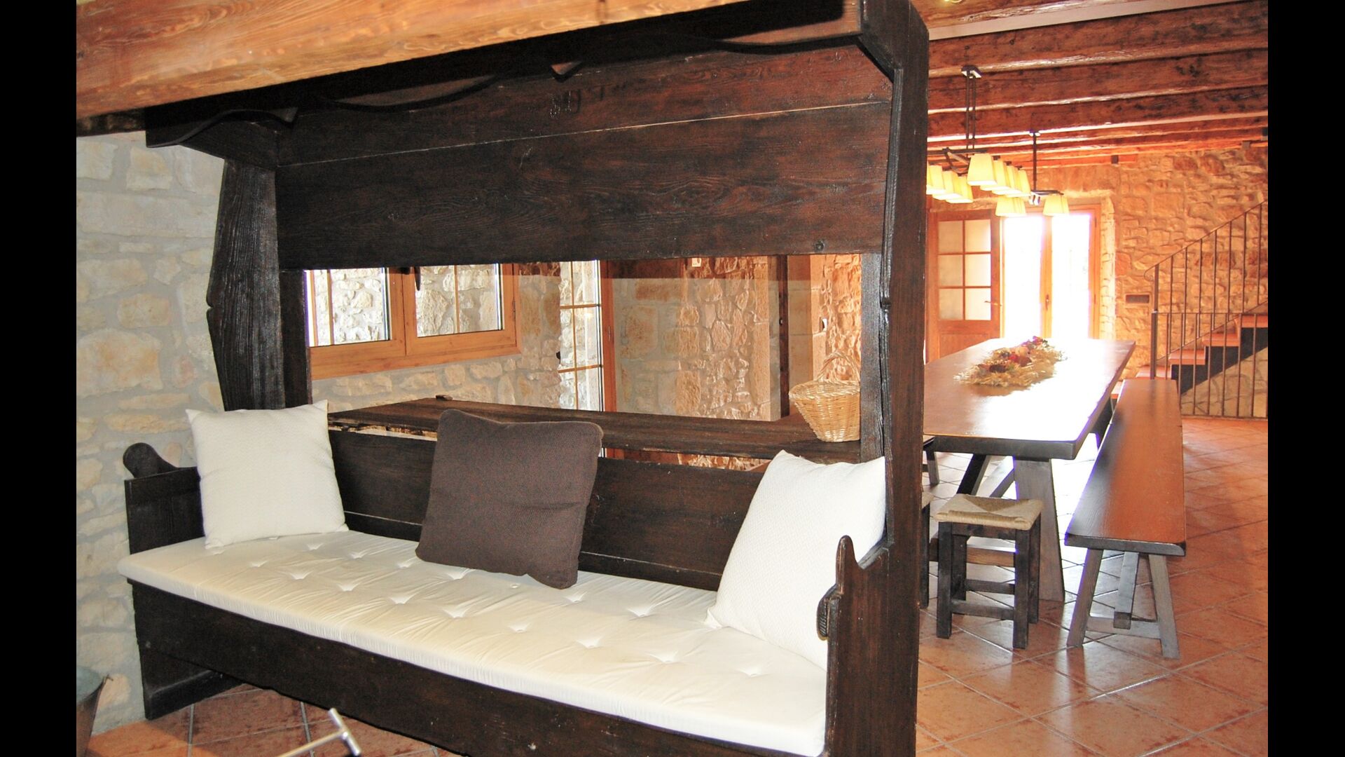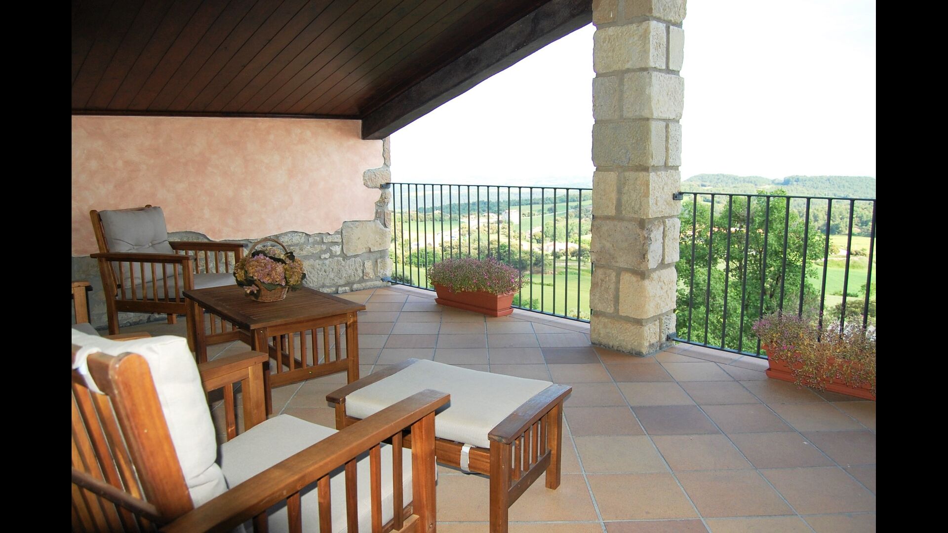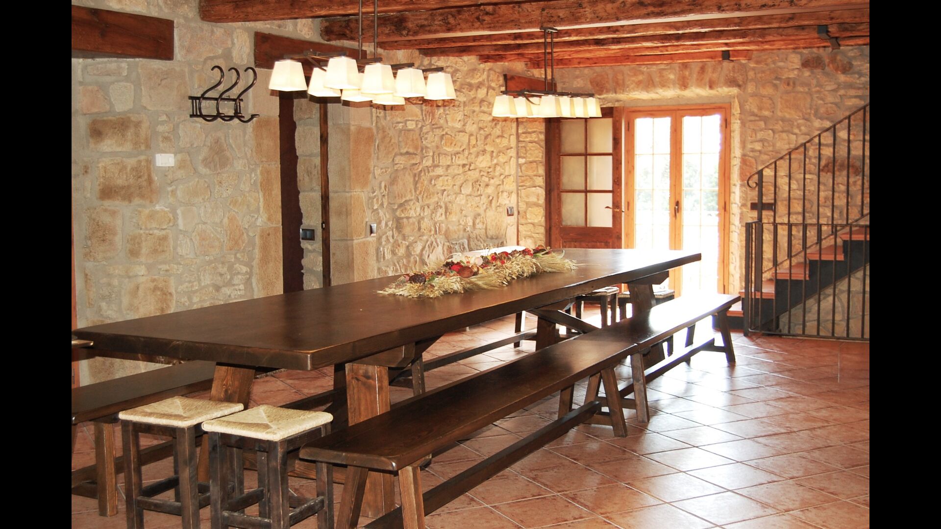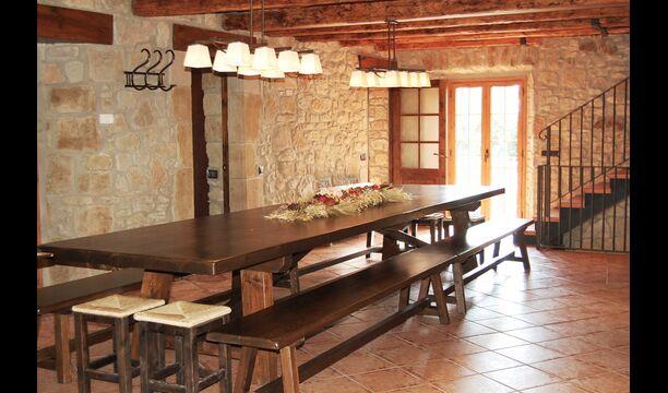 Can Maxia have 8 double bedrooms all with en-suit bathrooms and all are spacious and lovely decorated. On the ground floor is a hall way, a lounge area, a dining area, one of two kitchens and two double room with bathroom en-suit. On the huge first floor is a striking common area with a huge kitchen, a long traditional Spanish dining table and a really pretty and cozy fireplace area restored with great respect for the history of the house. Here is also a terrace with a table and an absolutely stunning view over the Catalan country site. On the first floor is also 2 bedrooms all with private bathrooms.
