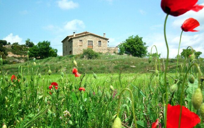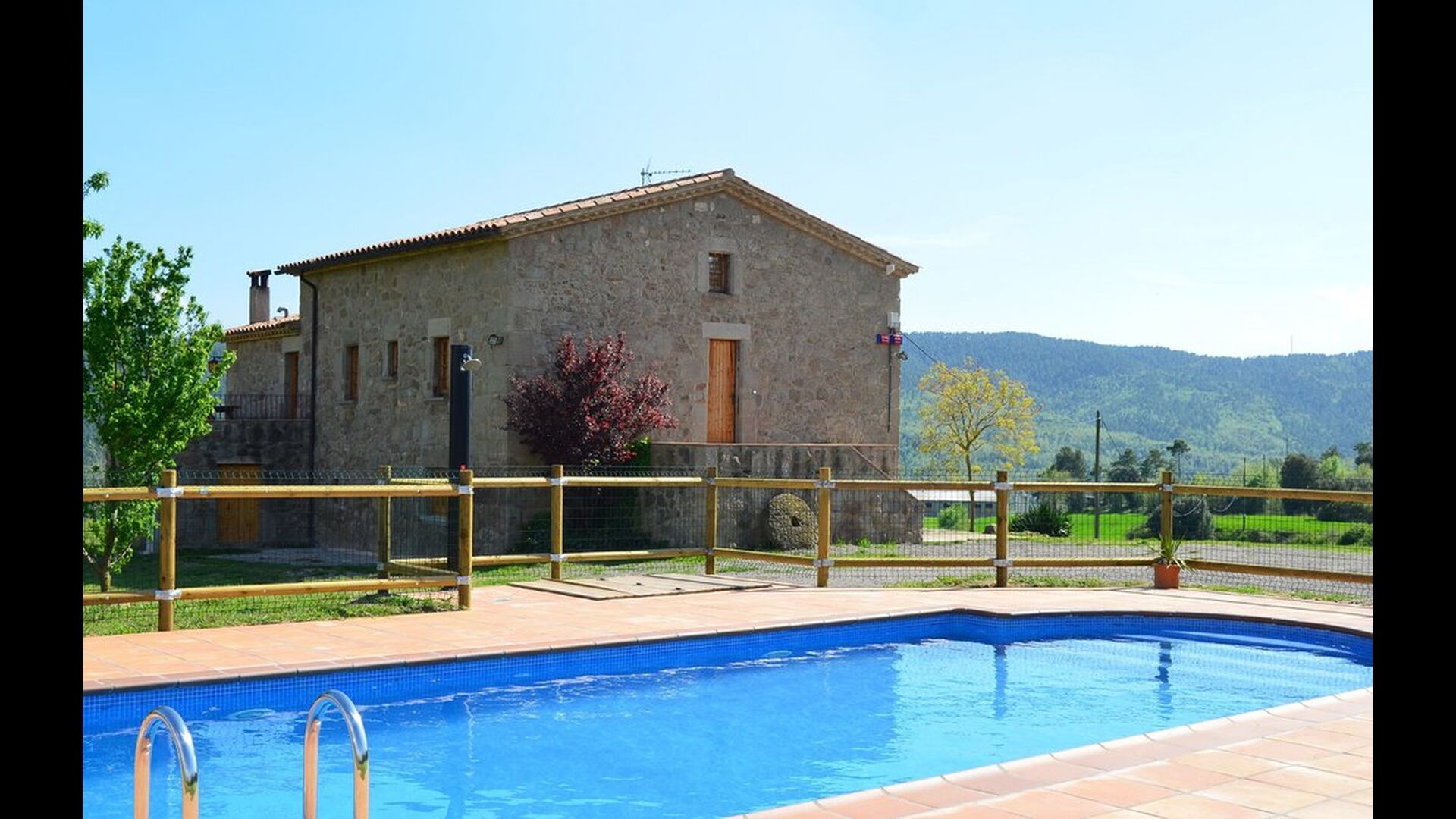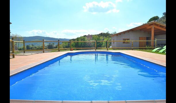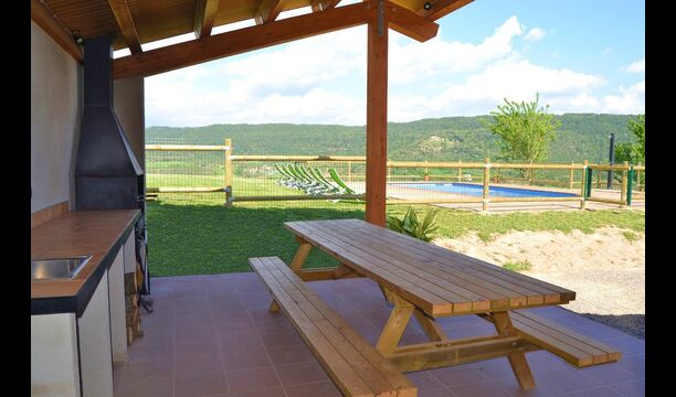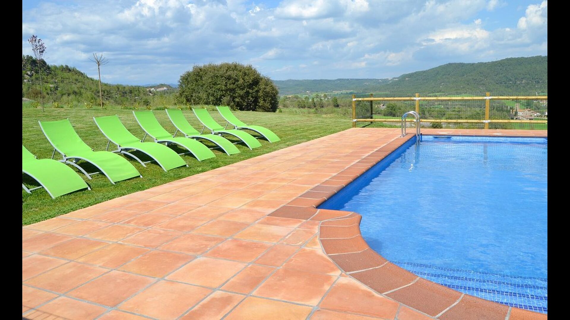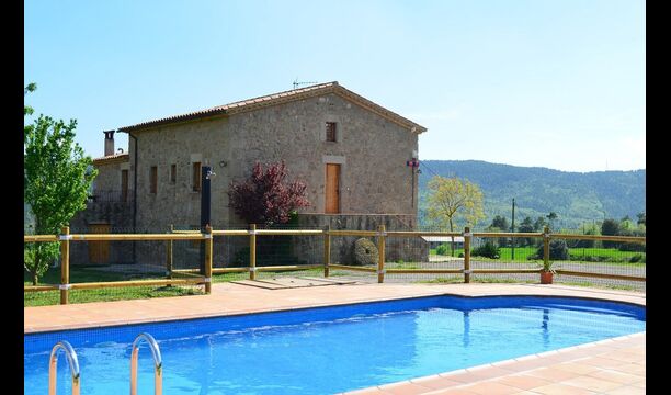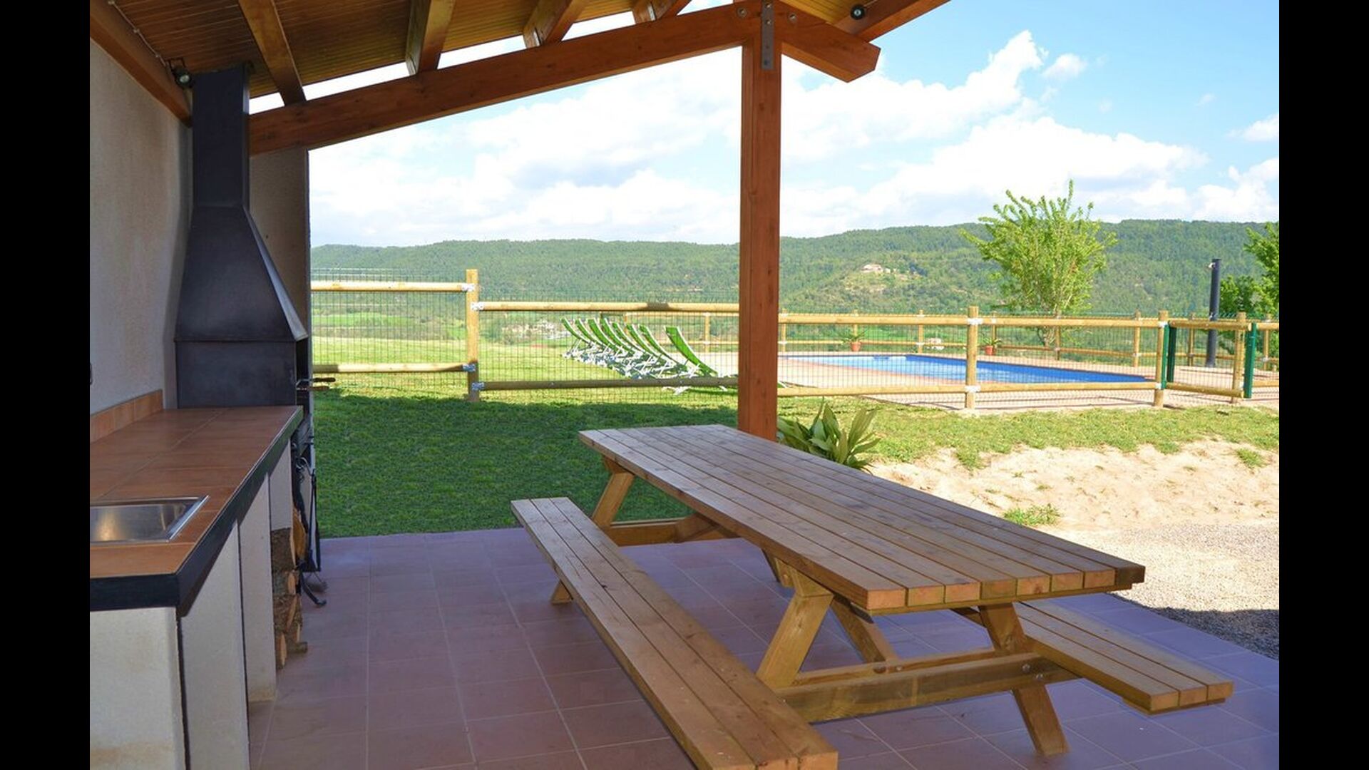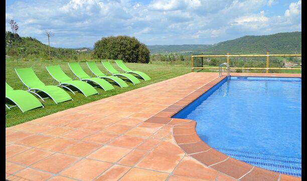 Can Pont Salta is a 450m2 really lovely holiday home with a unique location on a hilltop with a gorgeous view over the beautiful Merles Valley. From the garden you will have a wonderful view of the tiny village of Santa Maria de Merles, located 1.5 km. from the holiday home and the house has small and pretty path to the village. The house is fully renovated and is today quite outstanding. The outdoor area is really large and fully private and the swimming pool area is perfectly positioned overlooking the valley. In connection with the swimming pool area, is a covered terrace with BBQ and outdoor kitchen. From here there is also access to a games room with table tennis and table football. The swimming pool and the covered terrace is situated near, which is usually a great idea for a holiday home, because you we can pull back to the shade on the terrace and still be a part of the children playing in the swimming pool . If you prefer to enjoy the sun there are beach chairs for everyone in Can Pont Salta. In the garden there is also a small playground for the little ones in the group.