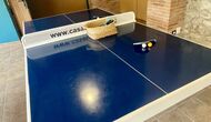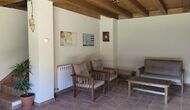 There is a kitchen-pantry with all necessary appliances, a beautiful dining room with a fireplace, a cozy living room with a TV, and 1 shared bathroom. Finally, a large porch, sporting a BBQ grill, table with benches, ping-pong table, football table, and a fridge completes the house’s splendour, offering you the option to spend your mornings, afternoons or evenings there – by yourself or with others.