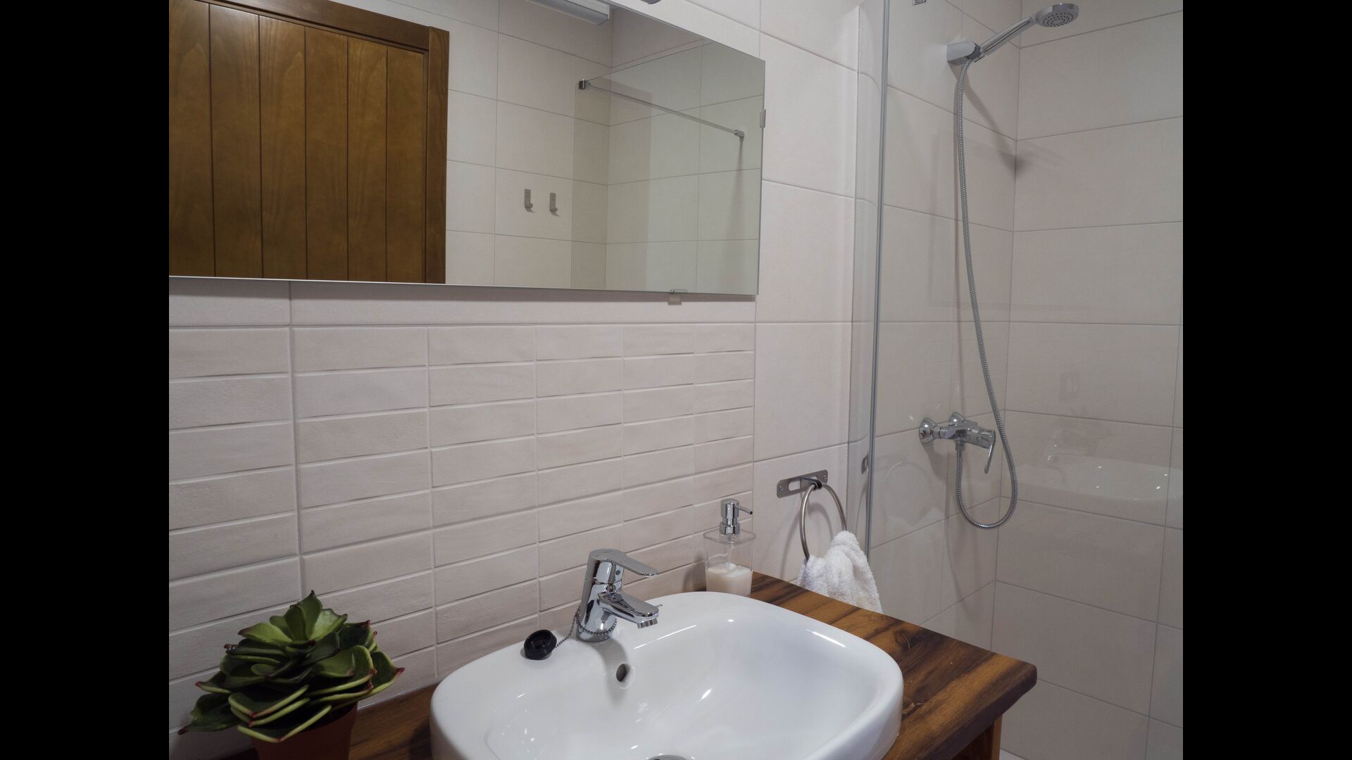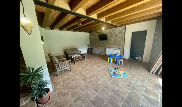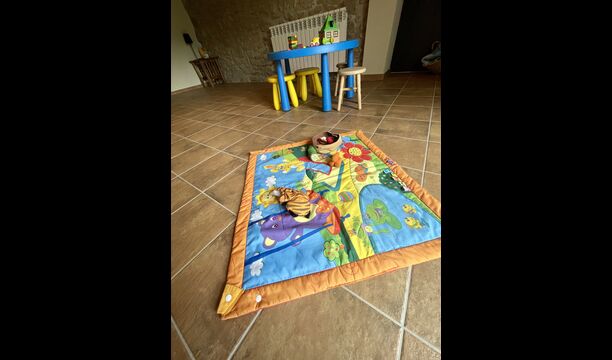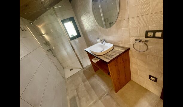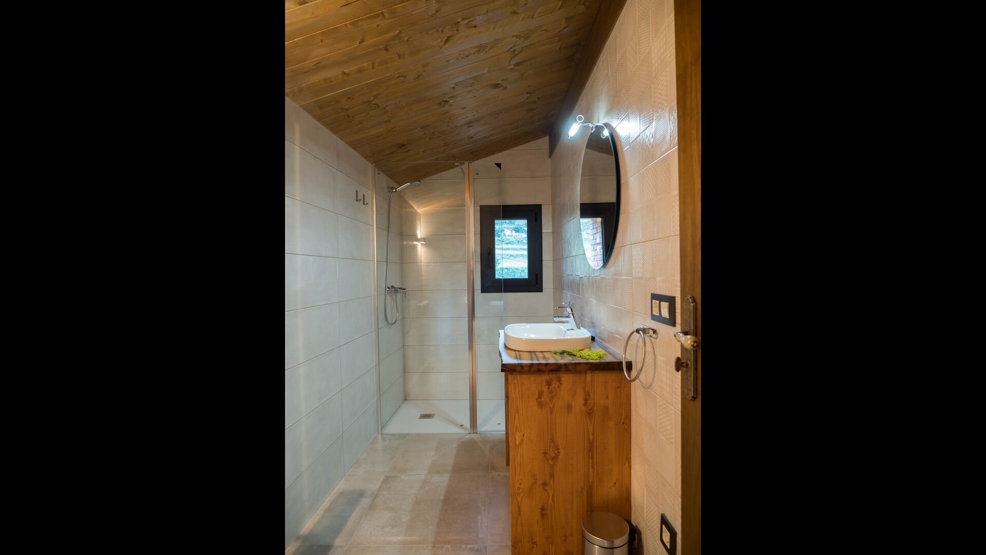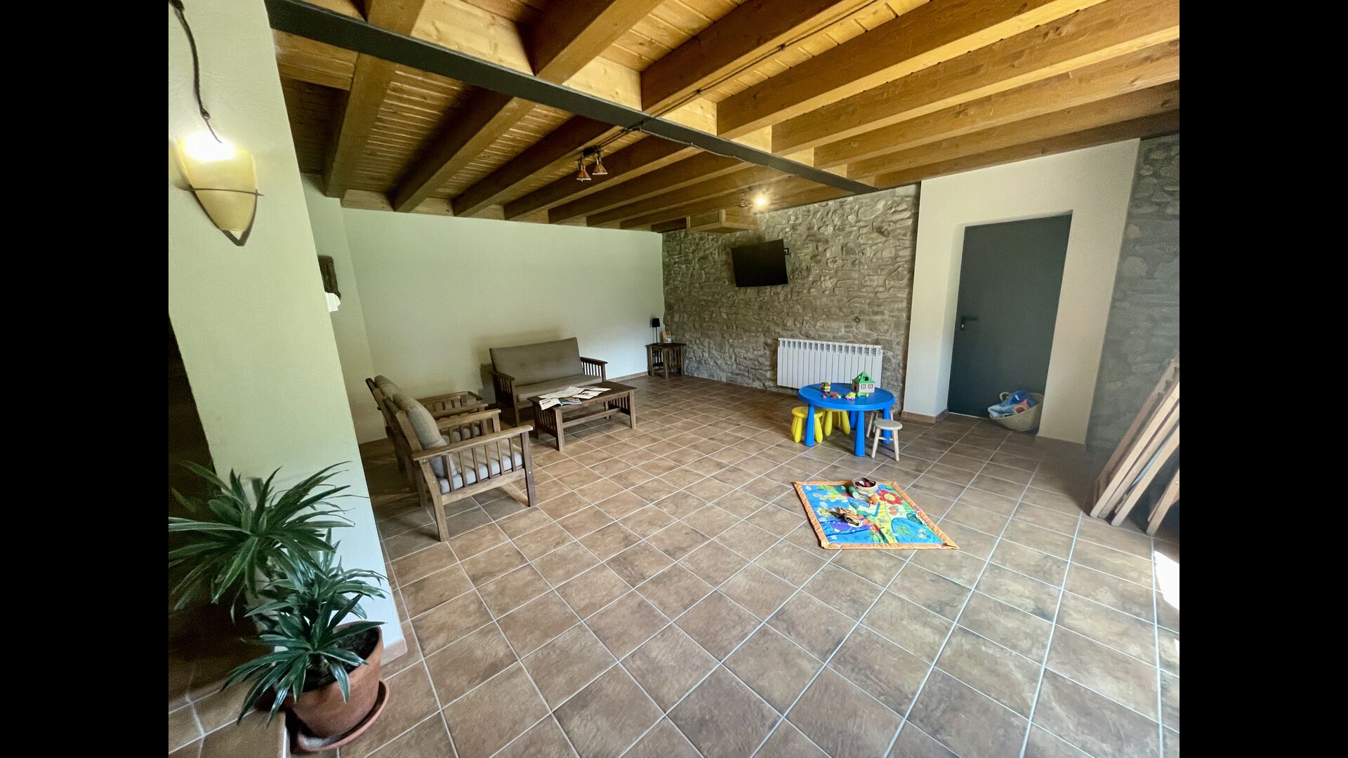 On the ground floor you will find the main entrance, the TV living room, children’s furniture, and 1 double room with a bathroom.