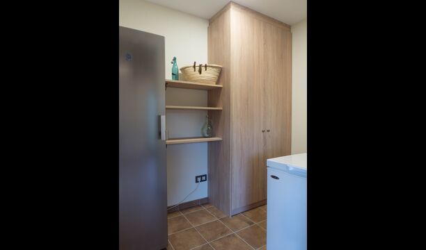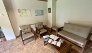 Outside the house you’ll find a outdoor table with four chairs, a wooden bench, 6 sunbeds and a swing. In addition, there is a swimming pool under construction, slated to be completed around May.