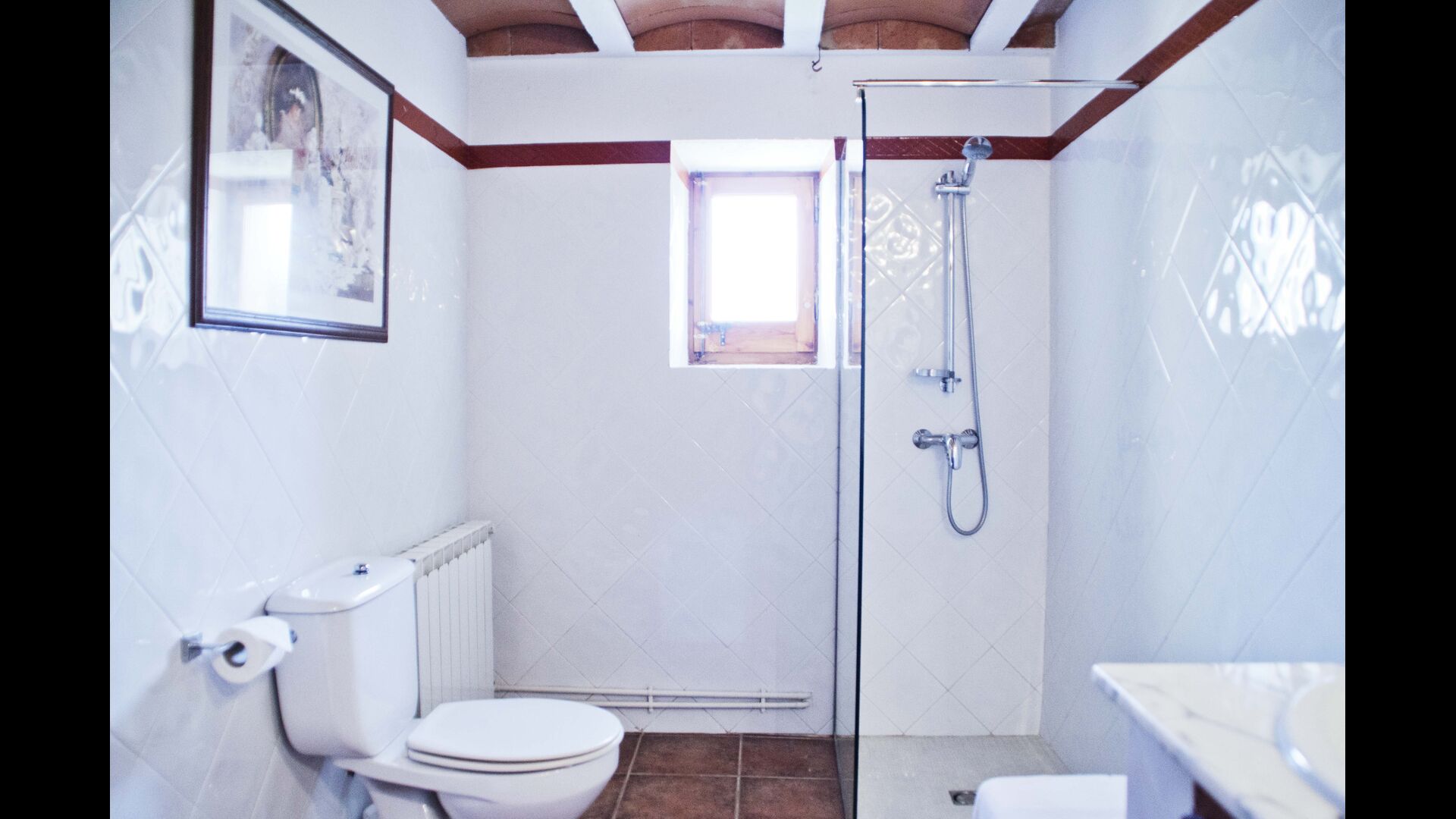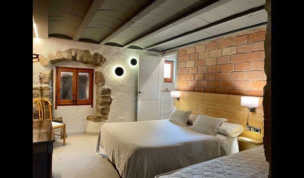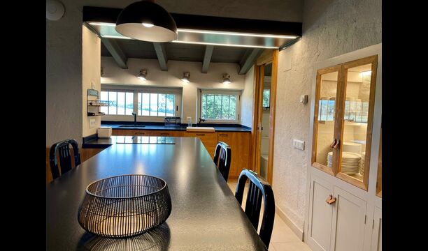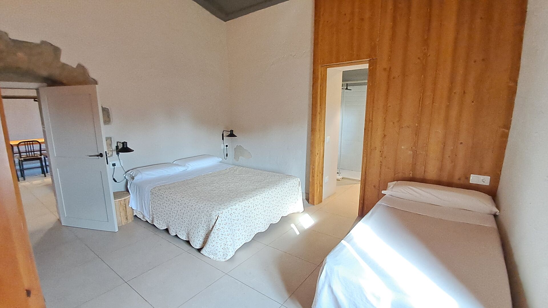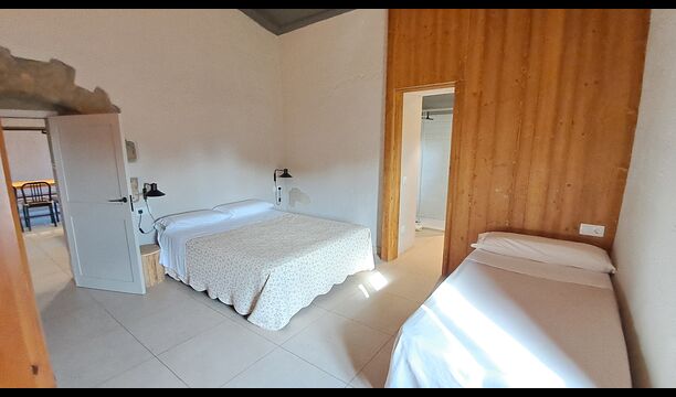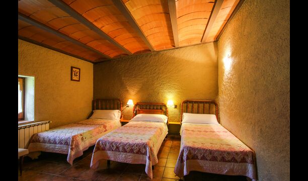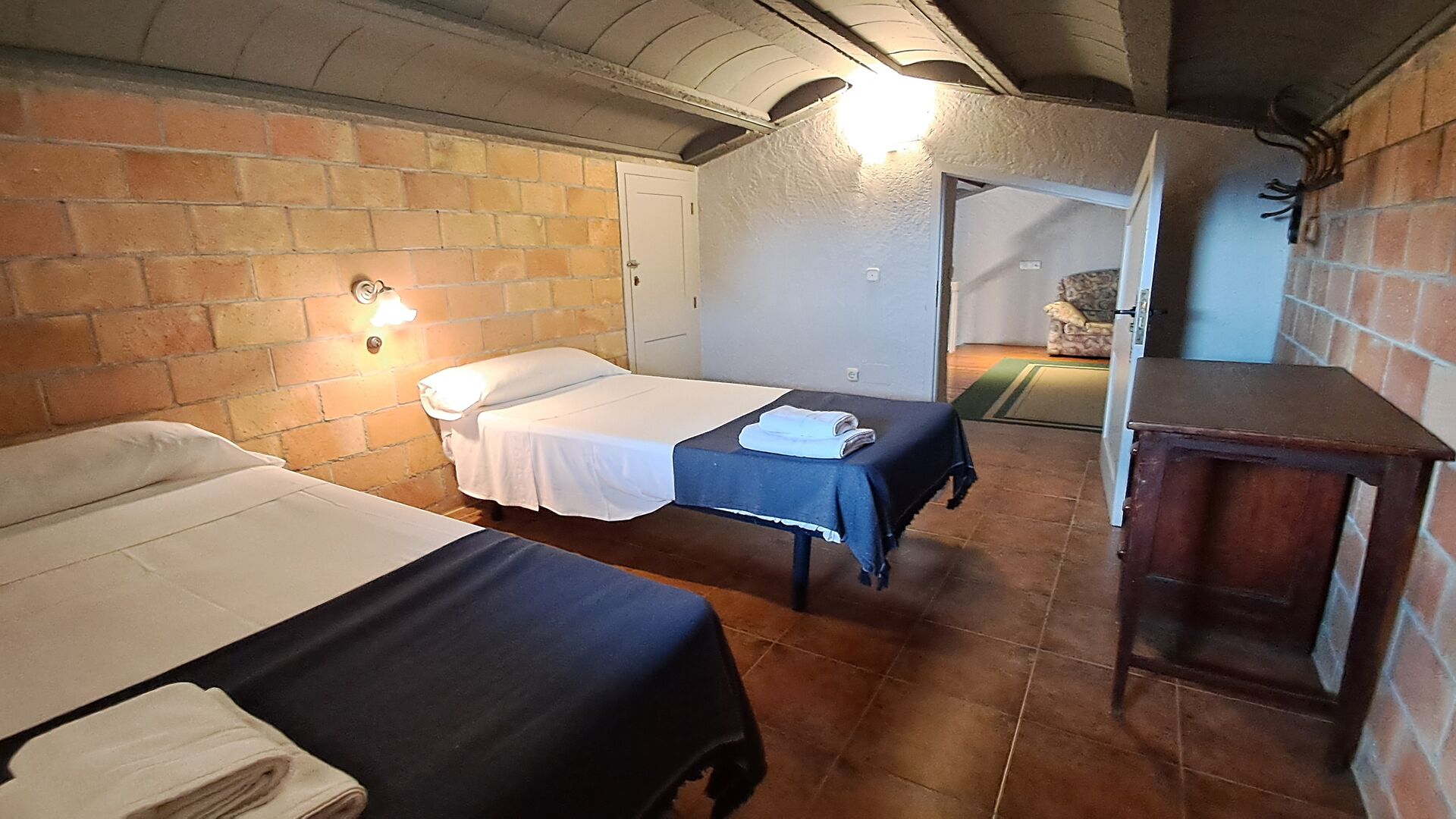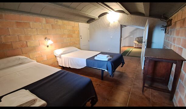 The 17 beds are placed in 4 double rooms, 1. single and 2 triple bedrooms. The entire house has been restored with great respect for it´s history. The house is an excellent summer house, as the traditional Catalan building style with thick walls and tiled floors keep the temperature pleasant inside. The rooms are nice and large and the dining area and lounge is open, light and really pretty decorated.