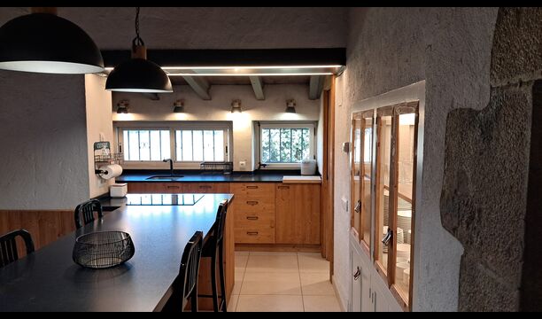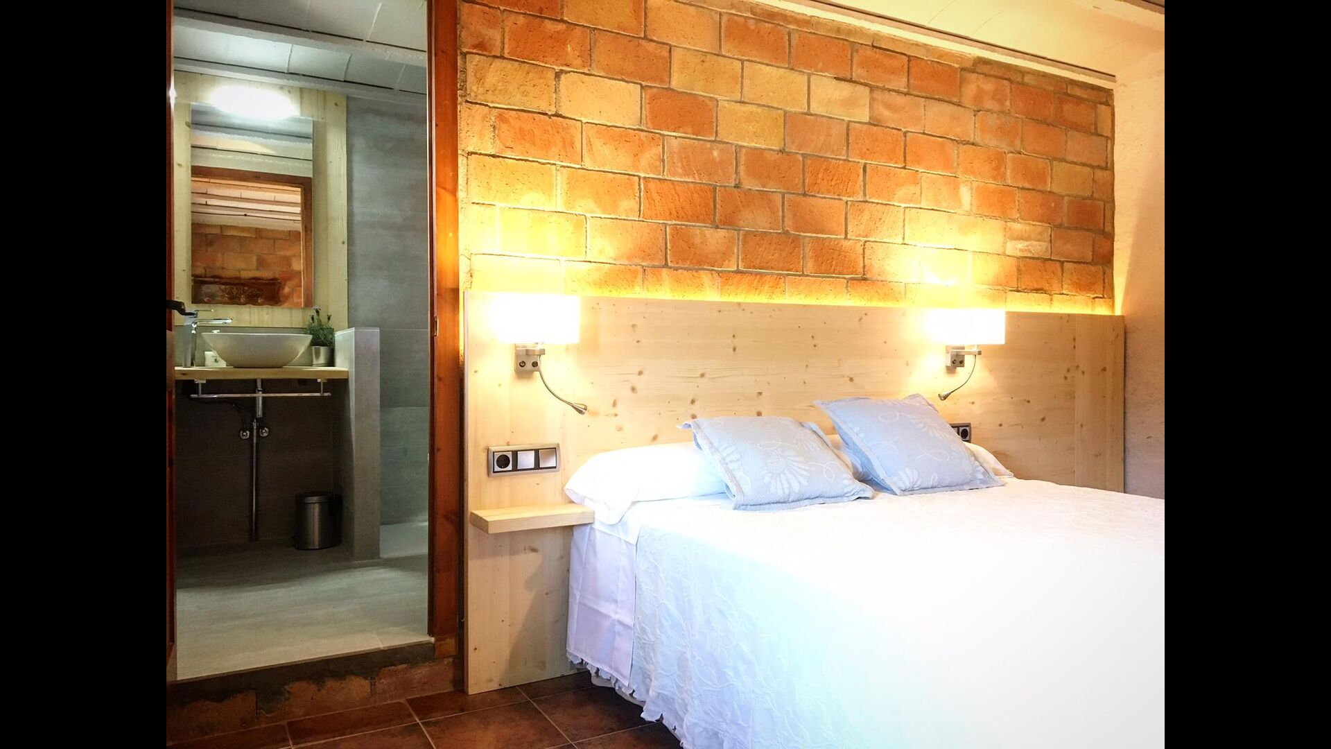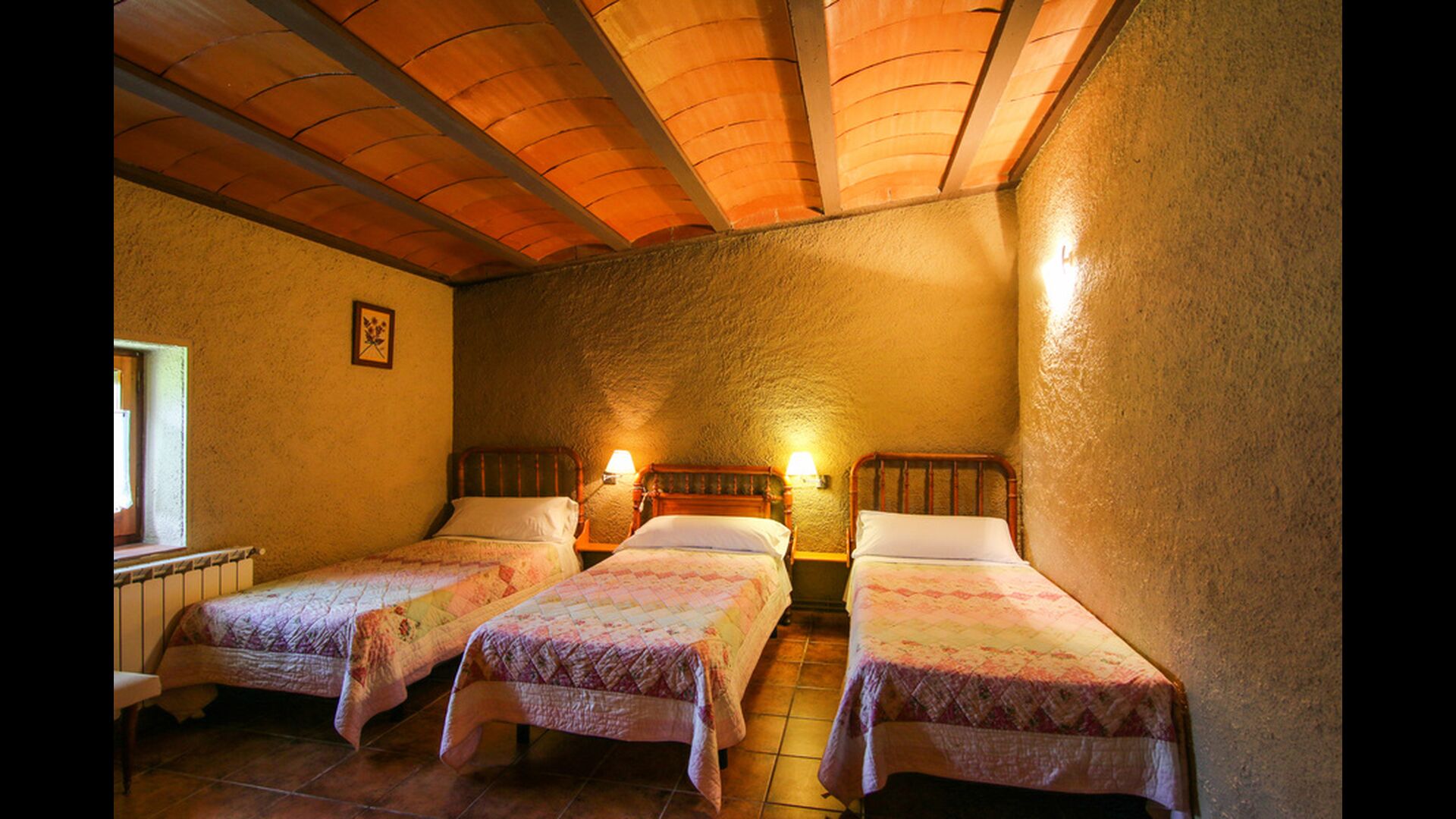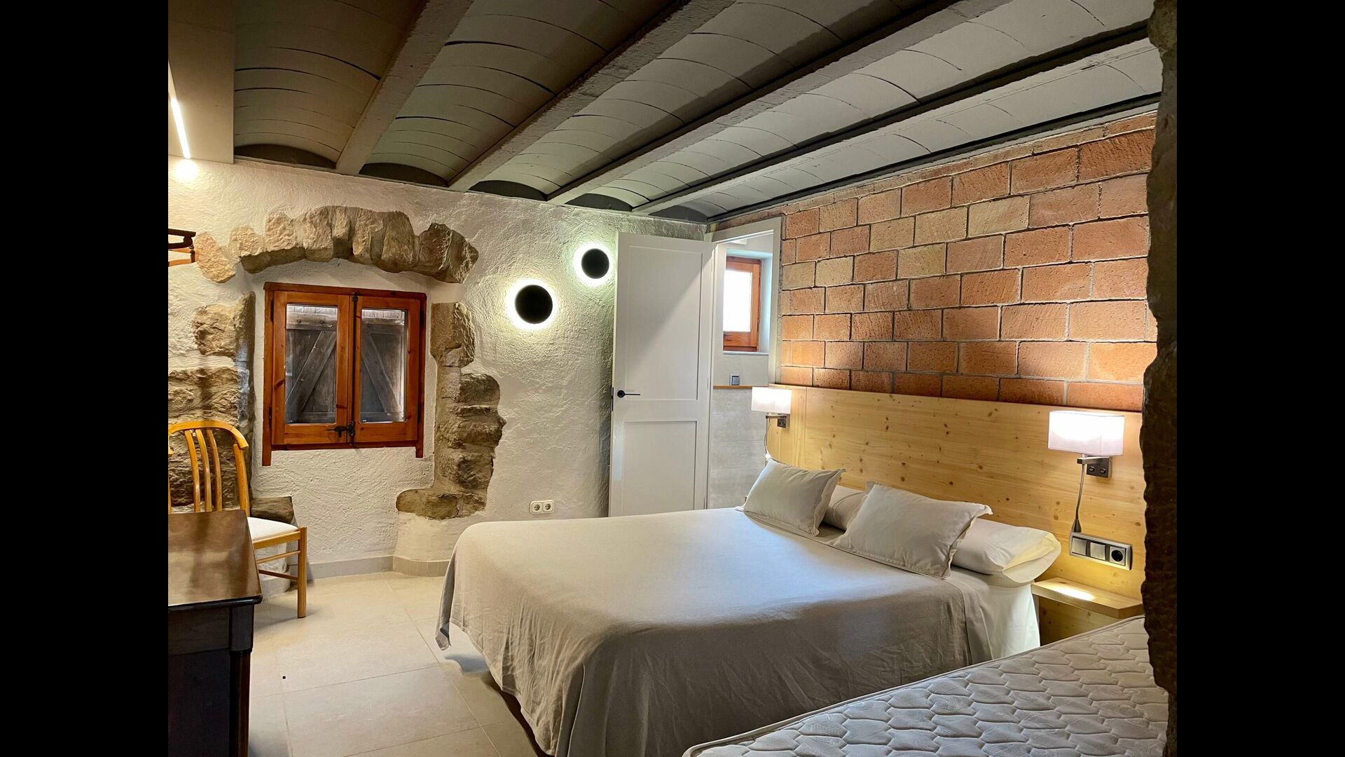 The 17 beds are placed in 4 double rooms, 1. single and 2 triple bedrooms. The entire house has been restored with great respect for it´s history. The house is an excellent summer house, as the traditional Catalan building style with thick walls and tiled floors keep the temperature pleasant inside. The rooms are nice and large and the dining area and lounge is open, light and really pretty decorated.