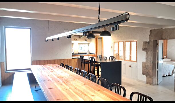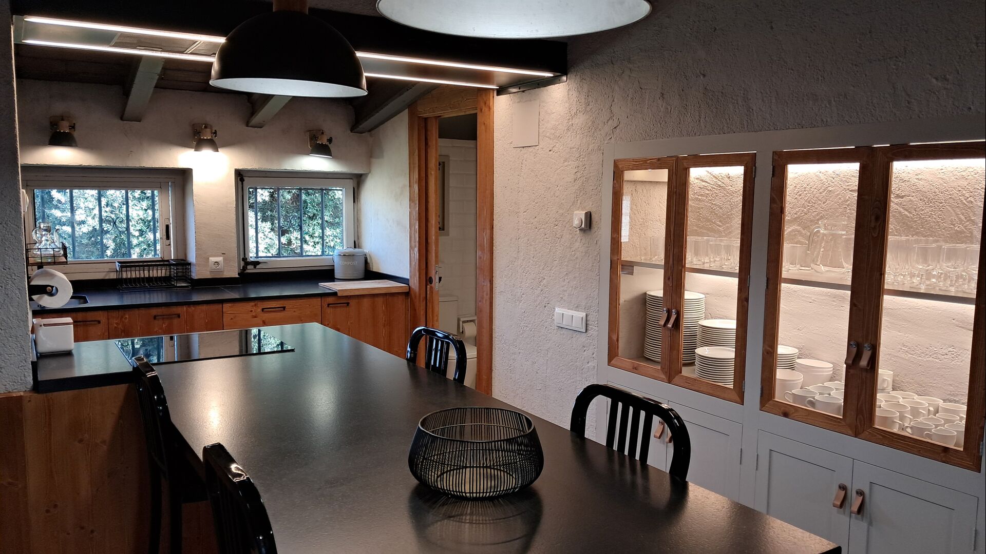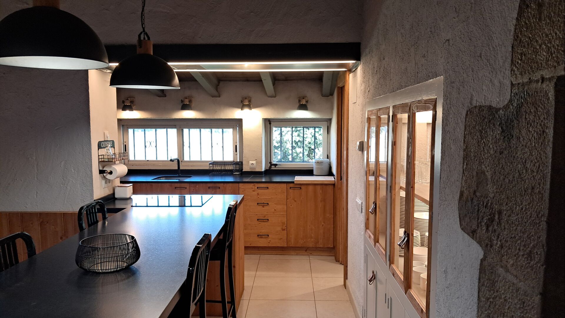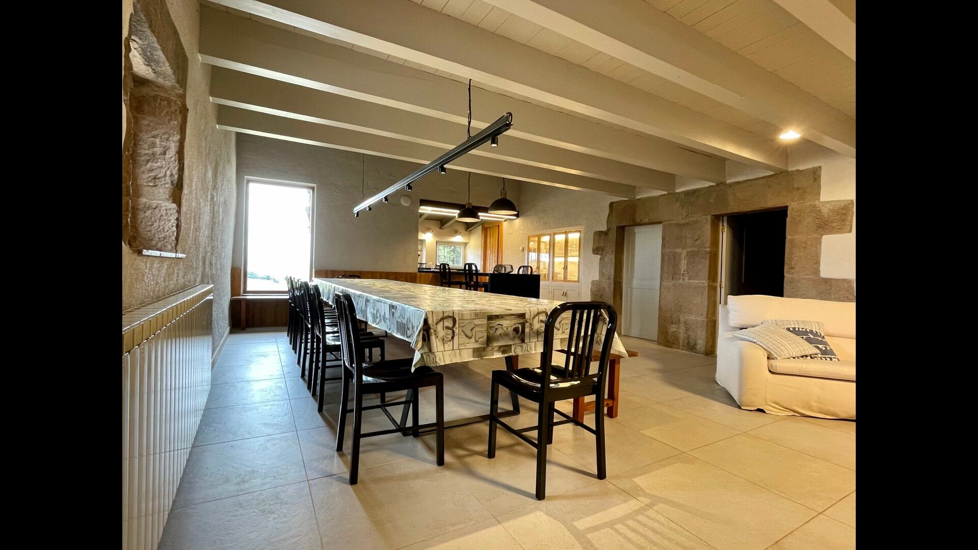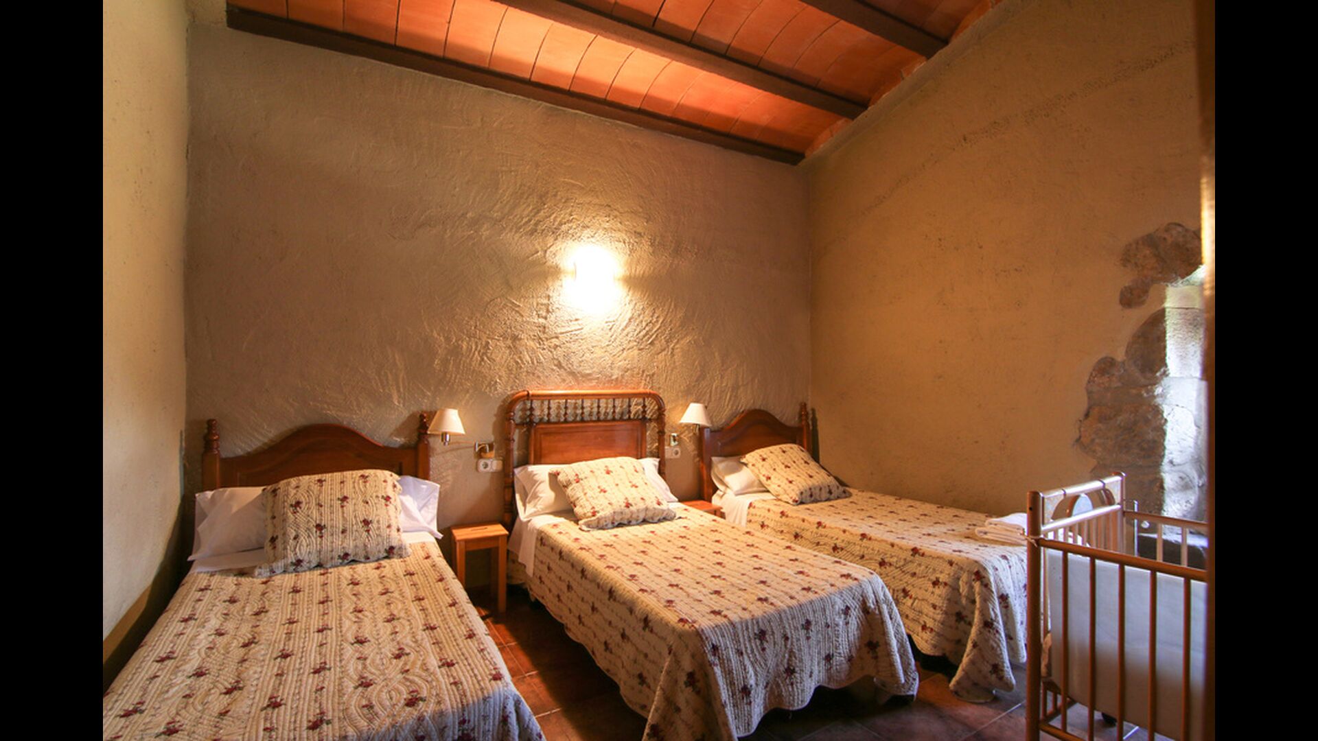 The 17 beds are placed in 4 double rooms, 1. single and 2 triple bedrooms. The entire house has been restored with great respect for it´s history. The house is an excellent summer house, as the traditional Catalan building style with thick walls and tiled floors keep the temperature pleasant inside. The rooms are nice and large and the dining area and lounge is open, light and really pretty decorated.