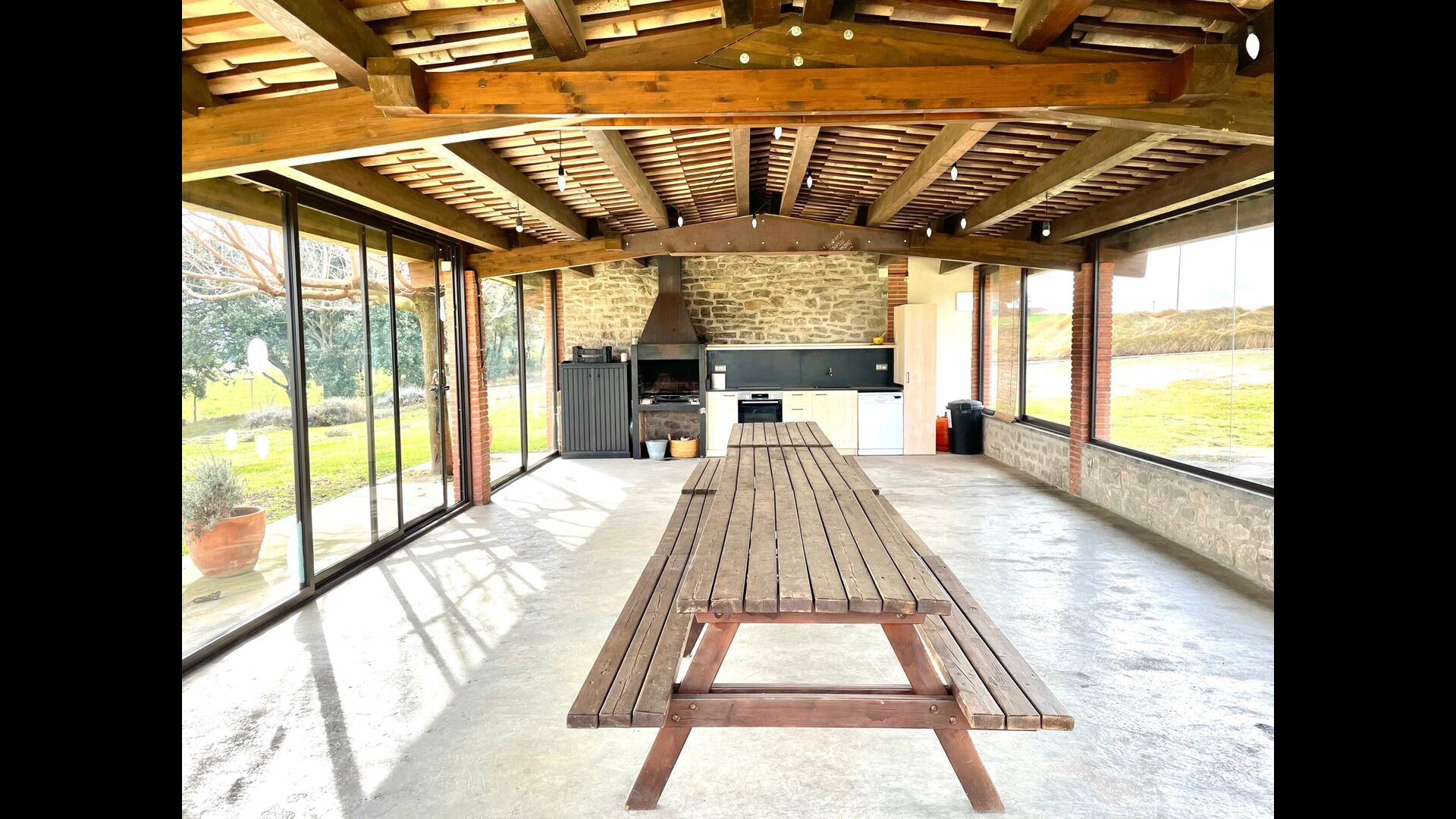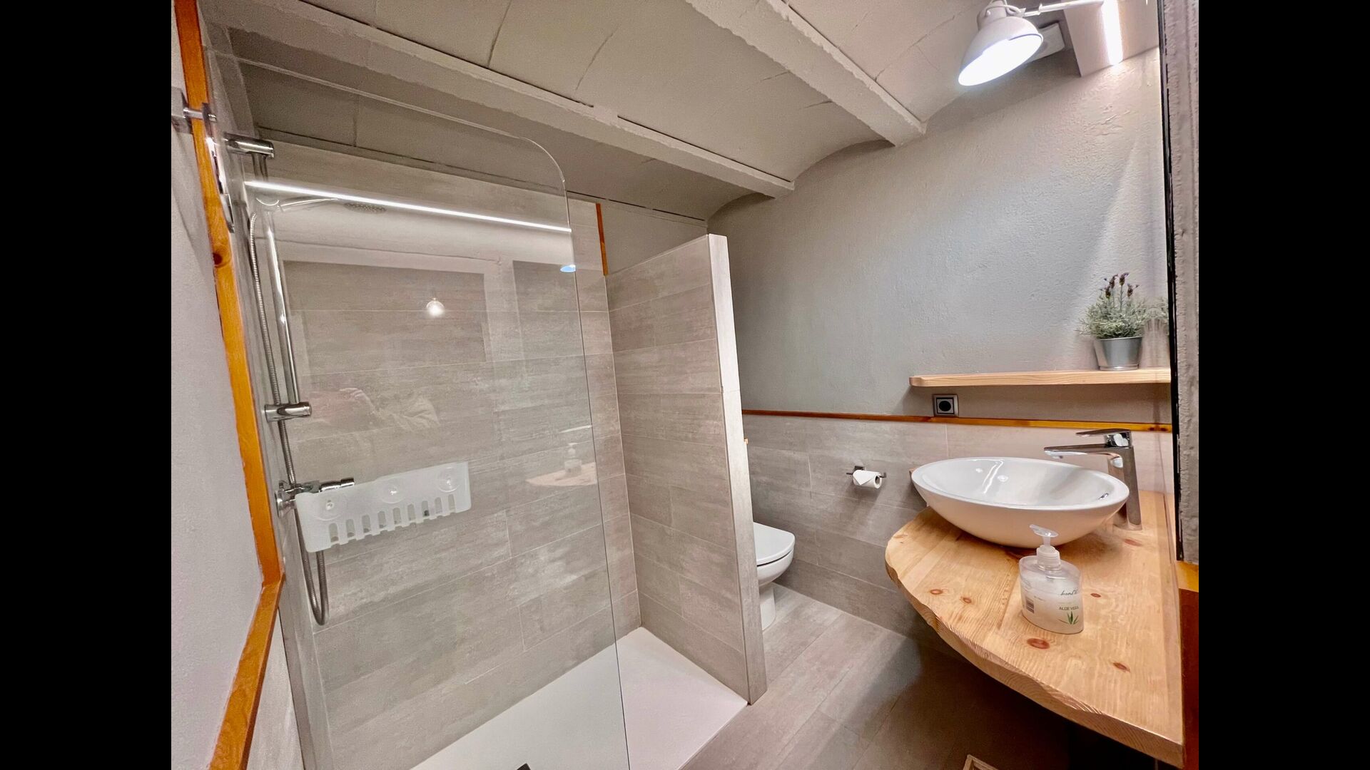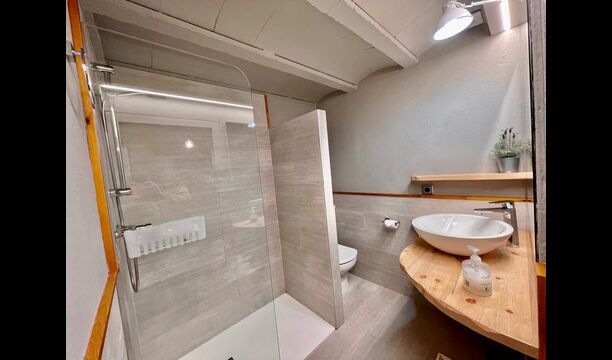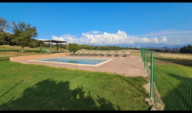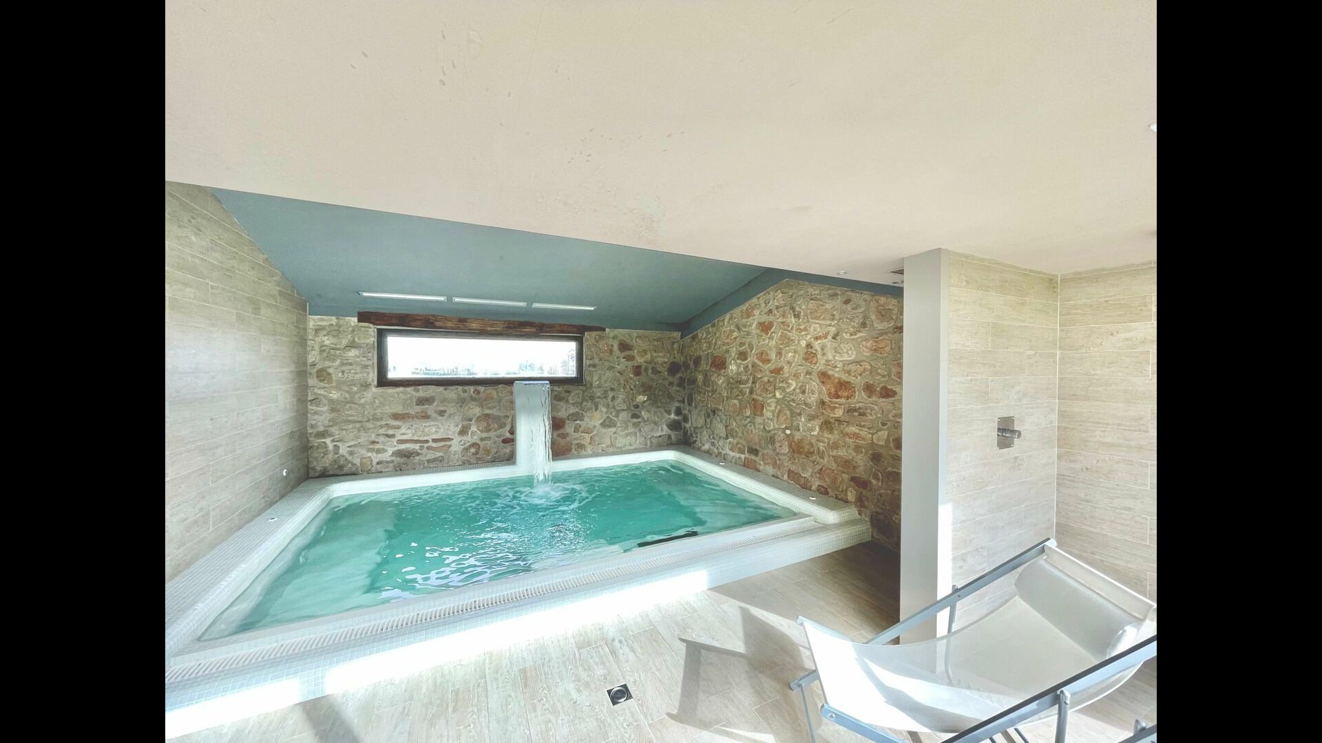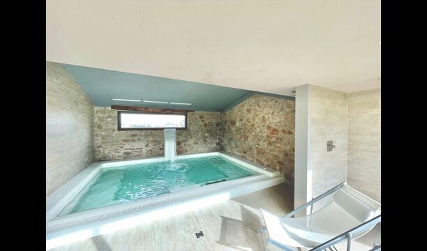 Next to the terrace you have the swimming pool of 8 x 4 meters, which is fenced for the protection of smaller children. From the swimming pool you have a scenic view towards the village and with the Pyrenees in the background. In a building attached to the house, there is now a very big indoor Spa, which is included in the price and can also be used by children accompanied by adults.