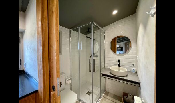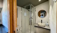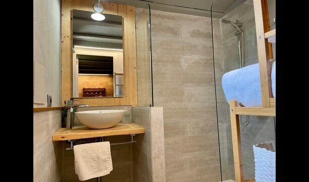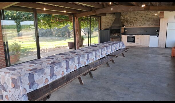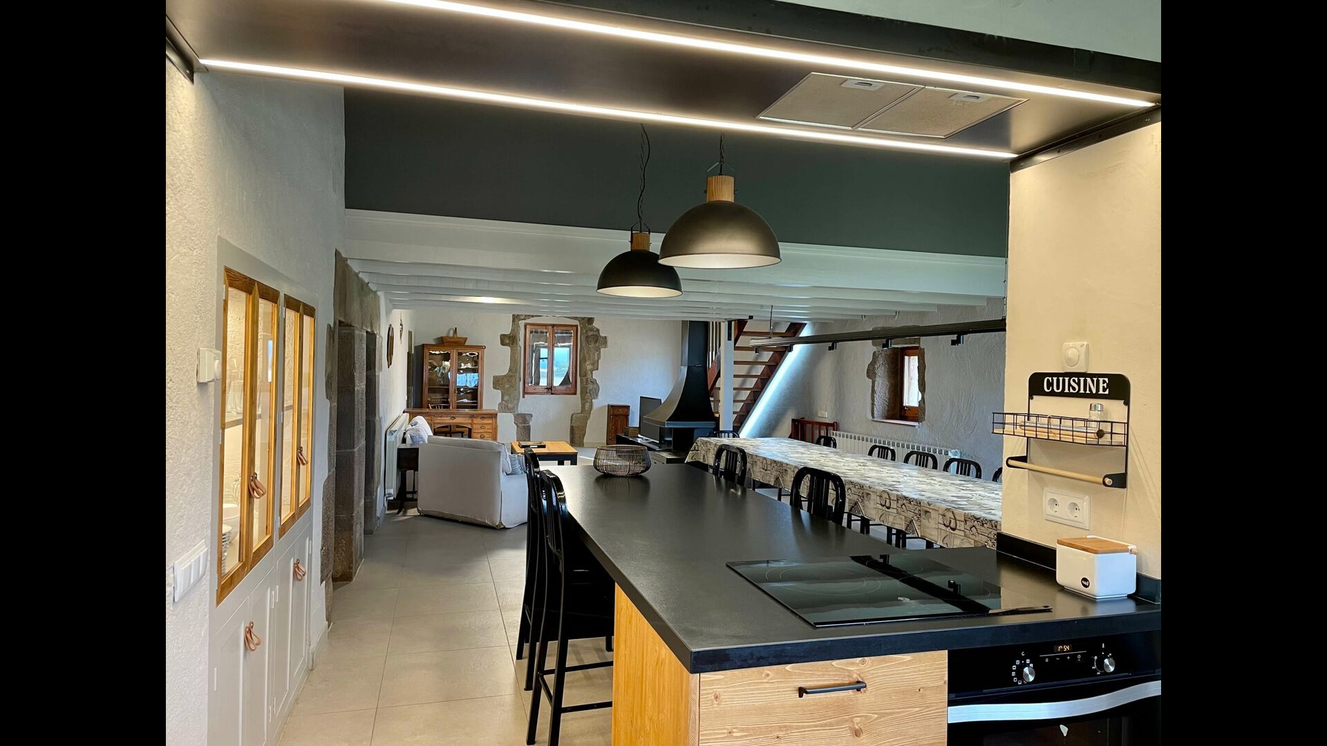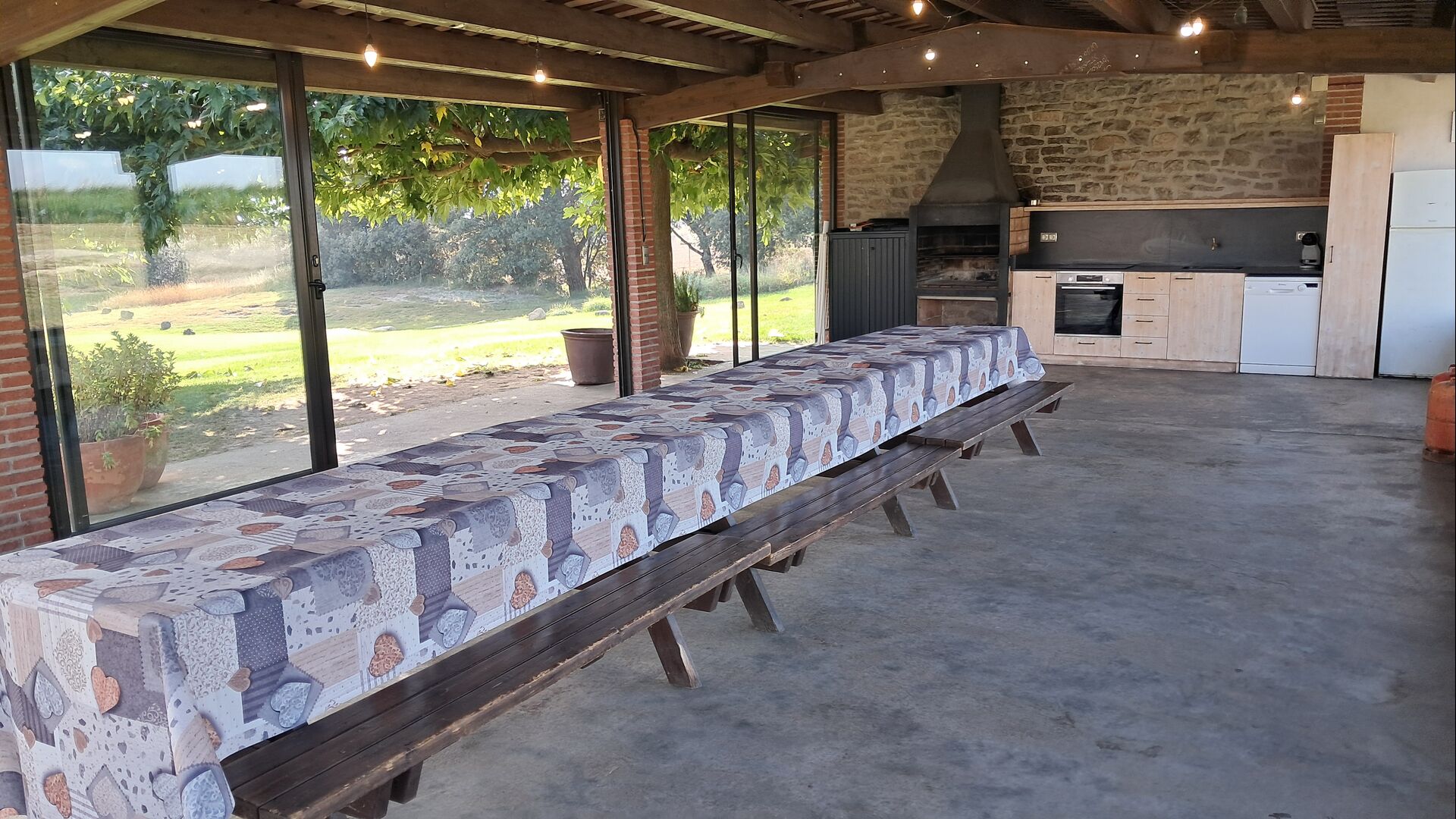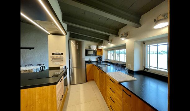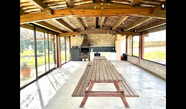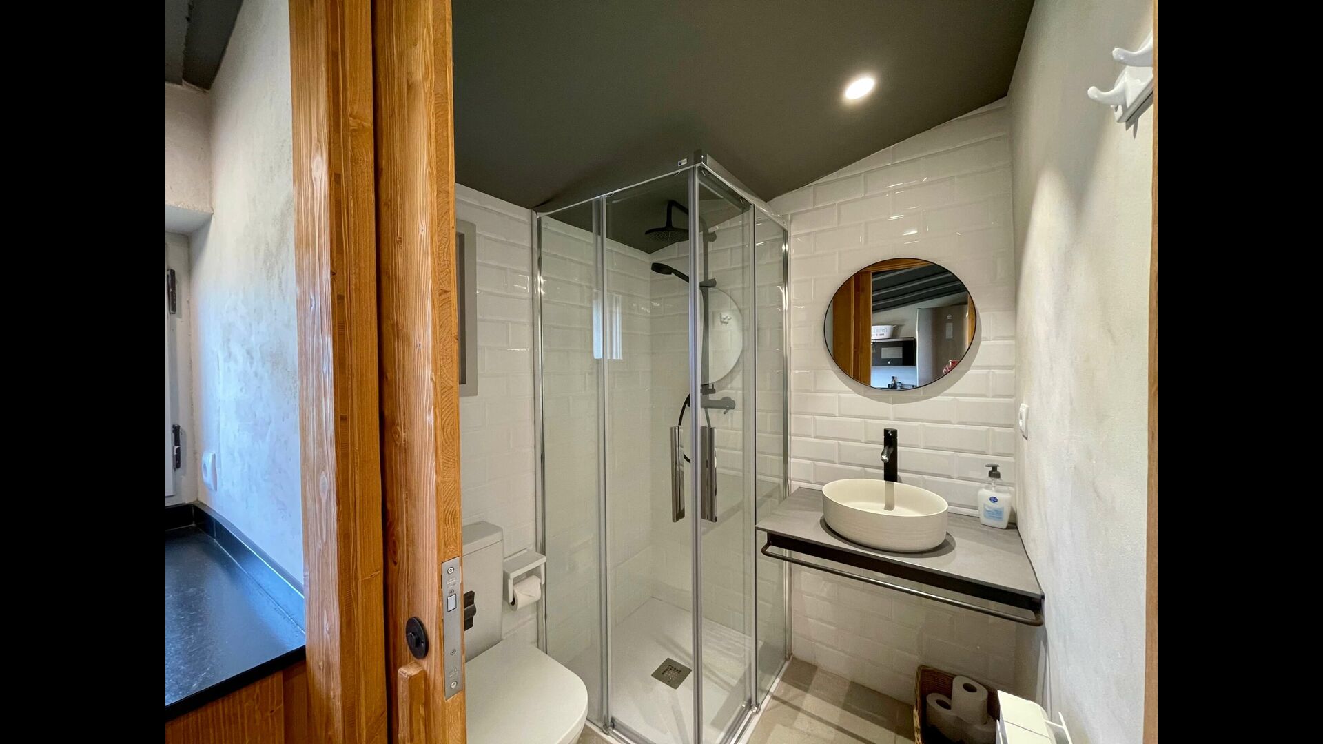 Next to the terrace you have the swimming pool of 8 x 4 meters, which is fenced for the protection of smaller children. From the swimming pool you have a scenic view towards the village and with the Pyrenees in the background. In a building attached to the house, there is now a very big indoor Spa, which is included in the price and can also be used by children accompanied by adults.
