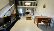The house has a beautiful interior, with nicely decorated rooms and two kitchens. The cosy livingroom provides a pleasant retreat if it gets too hot outside in the summer, or around the fireplace in the winter.