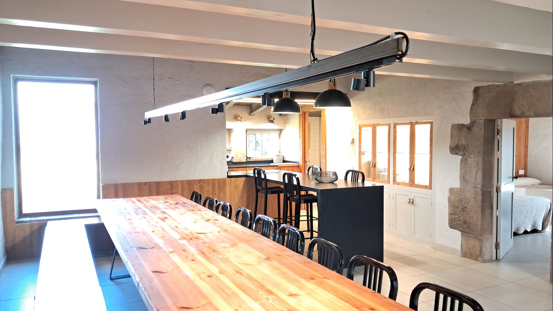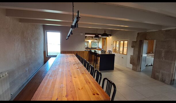 The house has 3 floors. The ground floor has a welcoming hall with lounge 2 double room with double bed, 1 triple room with three single beds and 1 double room with two single beds. Here is also 2 bathrooms (1 with bath tub and 1 with shower) a kitchen and a large common room with fire place. On the first floor is - 1 double room with double bed, 1 individual room, 1 triple room and 2 bathrooms (one with bath tub and one shower). Here you will also find another Kitchen and another common room with fire place. On the Second and last floor is a Plateau and an Attic with a double bed.