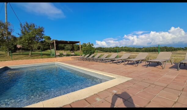 Enjoy your vacation in beautiful and peaceful surroundings with your own swimmingpool, large open garden, covered terrace and within walking distance of a cosy Catalan village, where the early riser can get the croissants in the bakery and the teenager can use the Internet in the bar at the square. At the weekly market one can buy the delicious local food, fruit and vegetables.