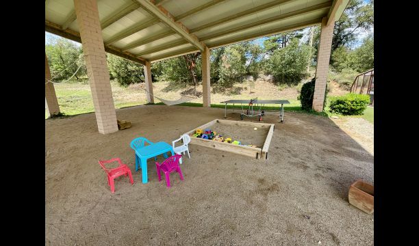 Apart from this terrace there is another patio area and hammocks on the back of the house where you can really enjoy the view. The garden also has a covered basketball court. The pool house is a real relaxation area where you can relax in the Jacuzzi and the kids will love the large fountain in the pool, which creates a little "waterfall" in the pool. For your convenience, there is now also showers and toilet next to the pool area.